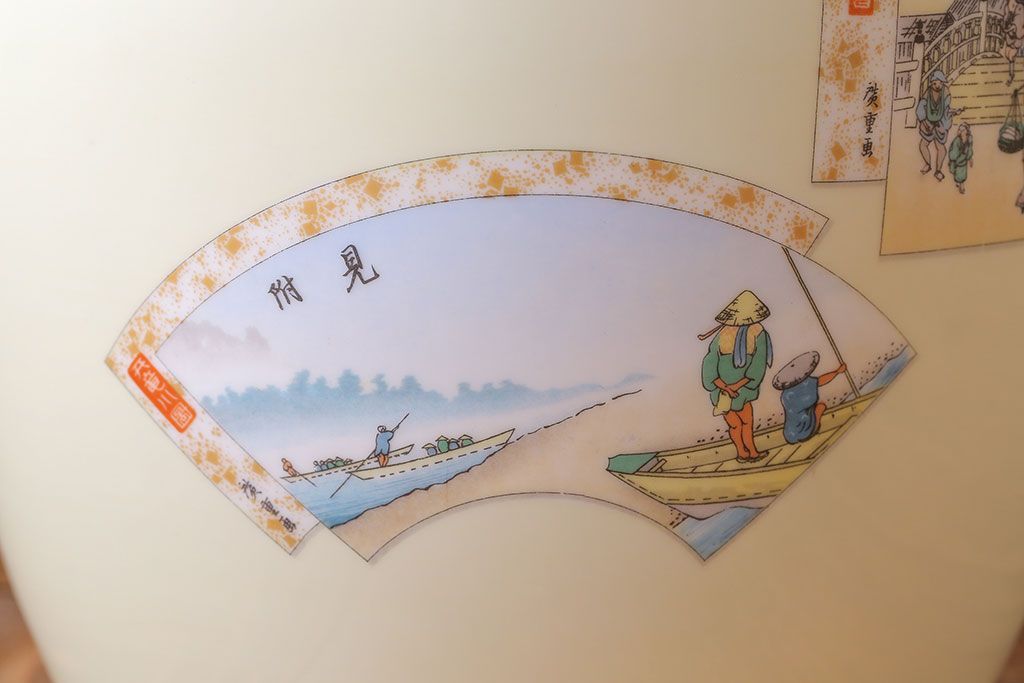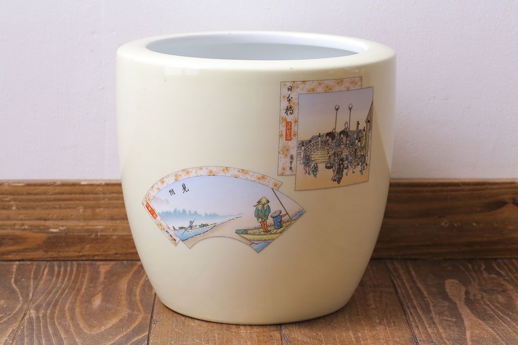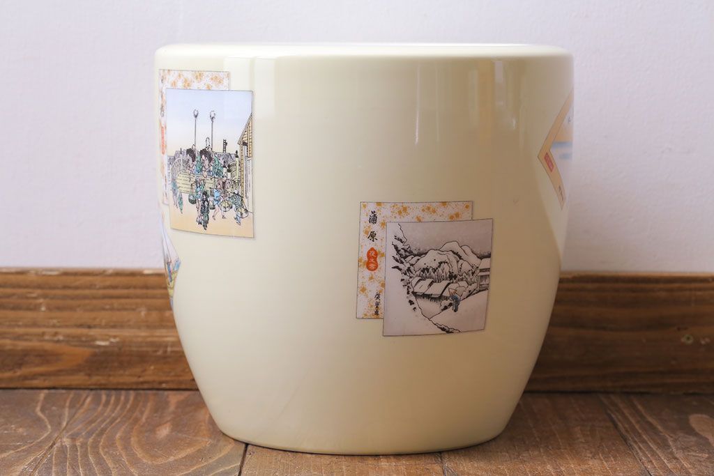 火鉢> 瀬戸火鉢 > 和製アンティーク オールドノリタケ 日陶(則武) 東海道五十三次 江戸の風景が楽しめる火鉢(瀬戸火鉢、Noritake、noritake、NORITAKE、鉢カバー、傘立て、ディスプレイ)(1)(R-028179)