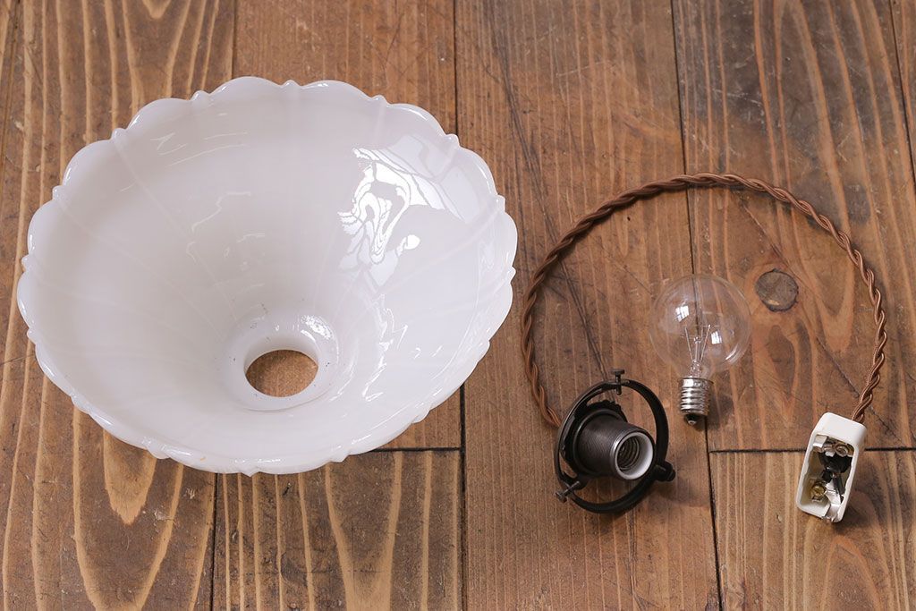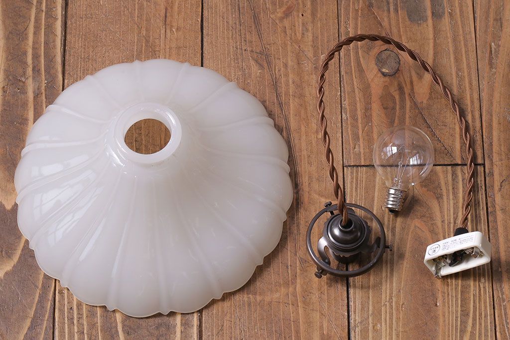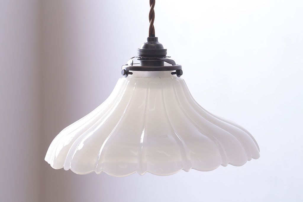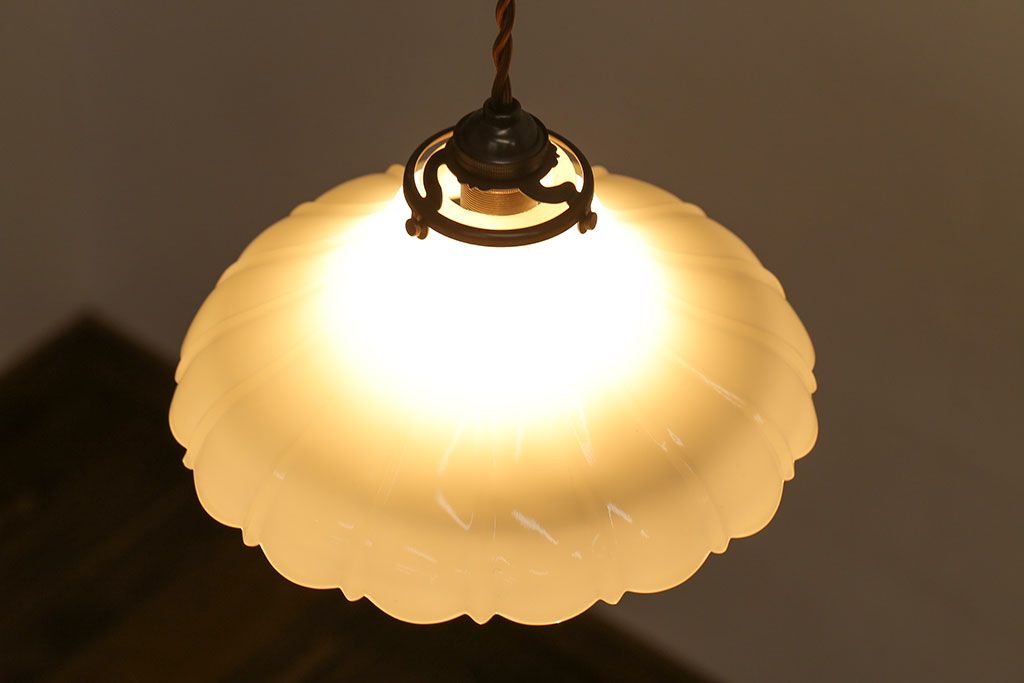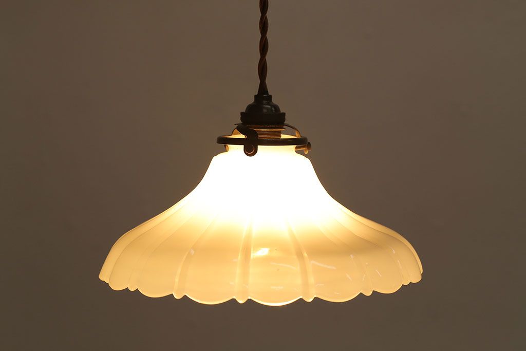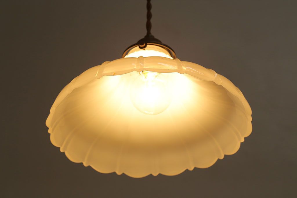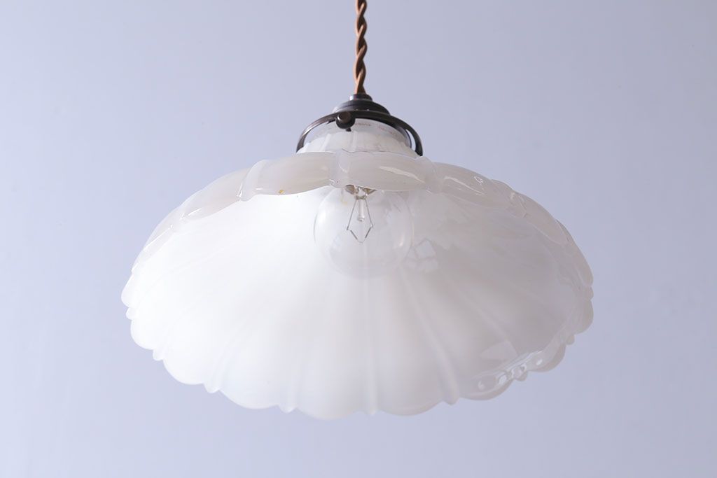 大正ロマン 流れるような曲線が優美なミルクガラスシェードのペンダントライト(天井照明、吊り下げ照明)