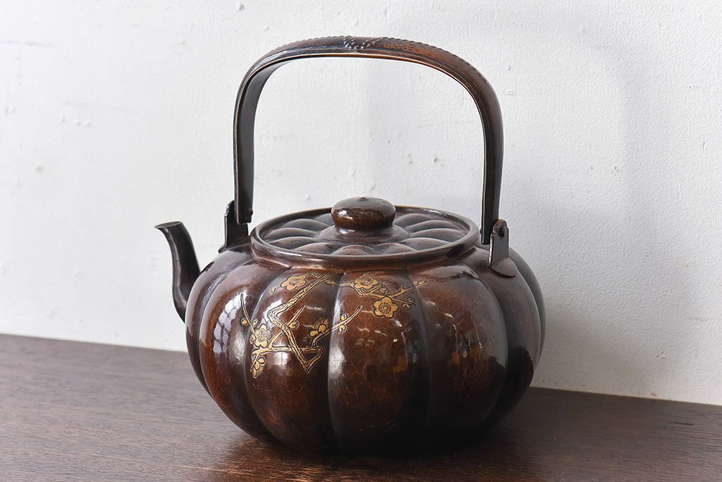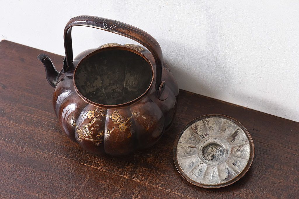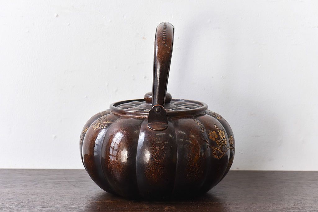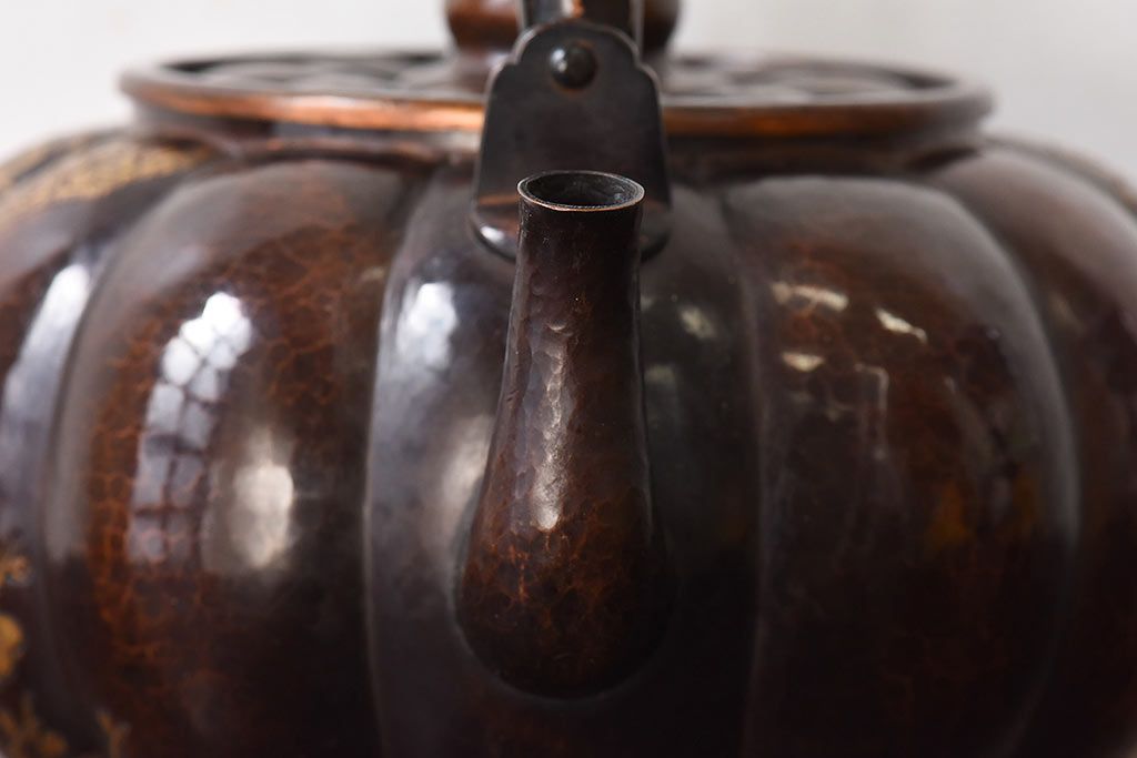 ラフジュ工房> 骨董・美術品 > アンティーク雑貨 大正期 鎚起銅器 南瓜型薬缶(水注、鉄瓶)
