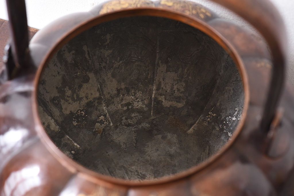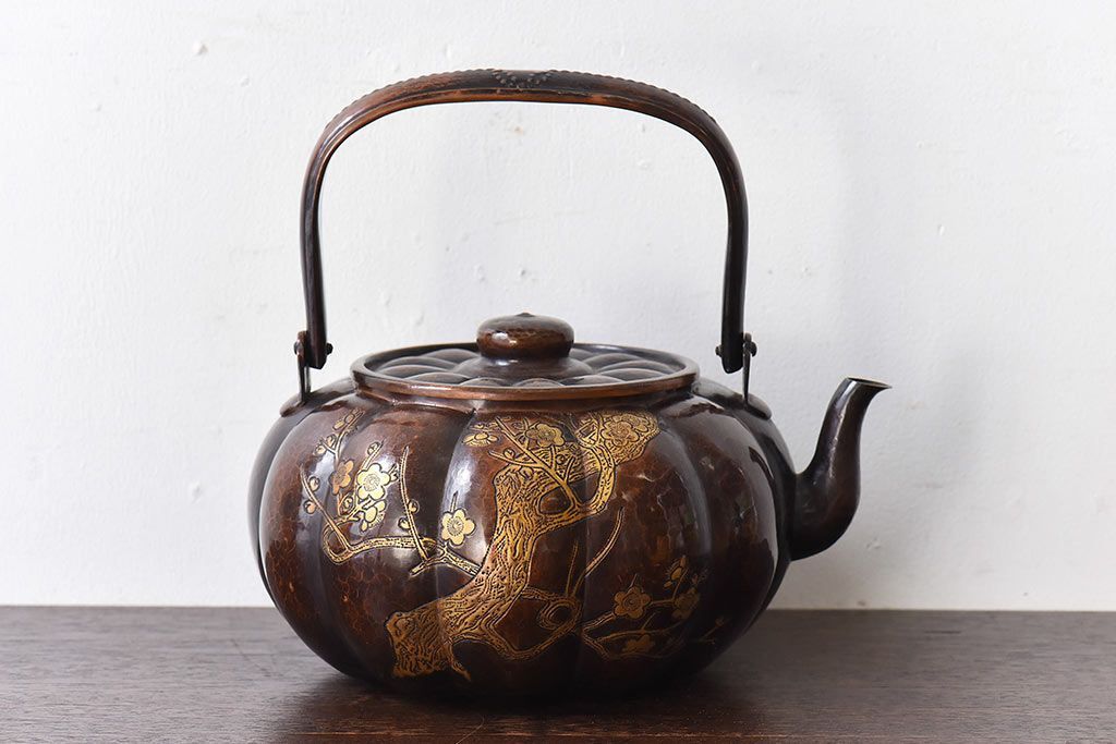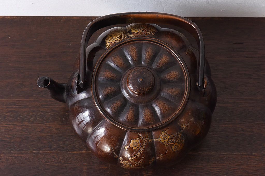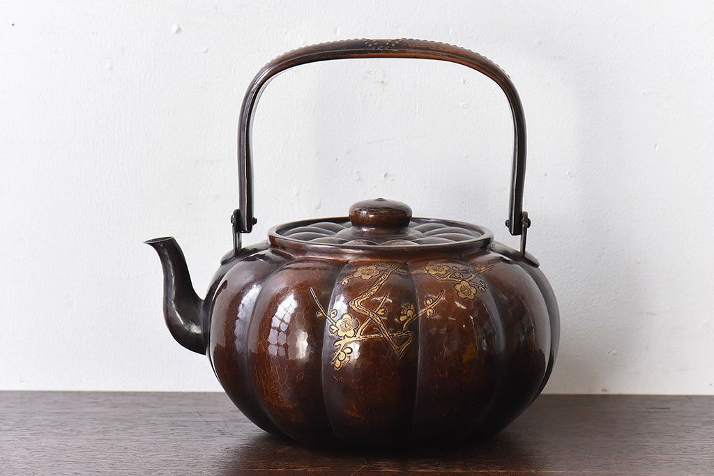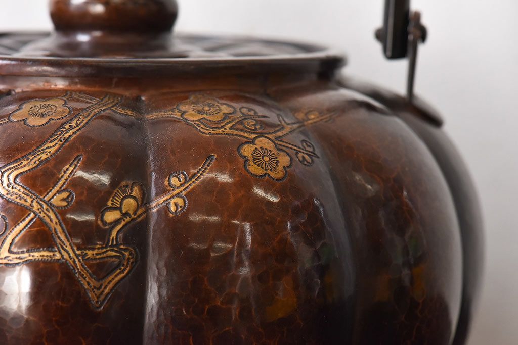 ラフジュ工房> 骨董・美術品 > アンティーク雑貨 大正期 鎚起銅器 南瓜型薬缶(水注、鉄瓶)