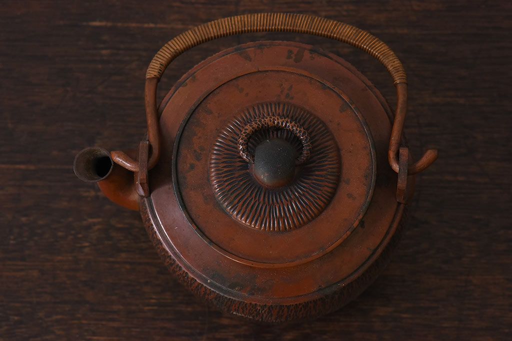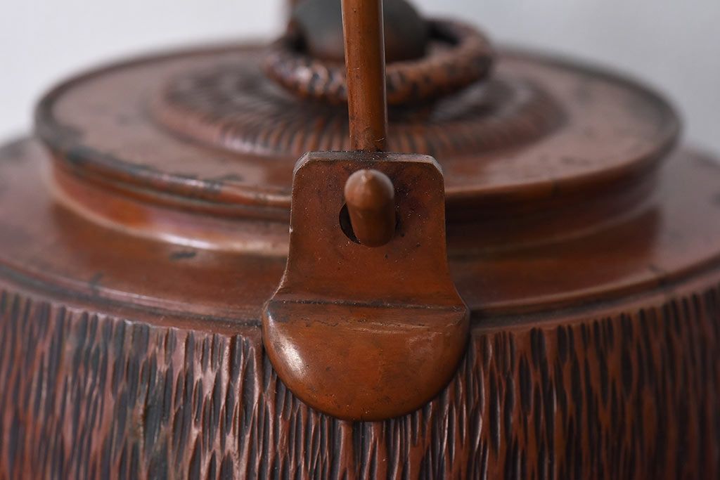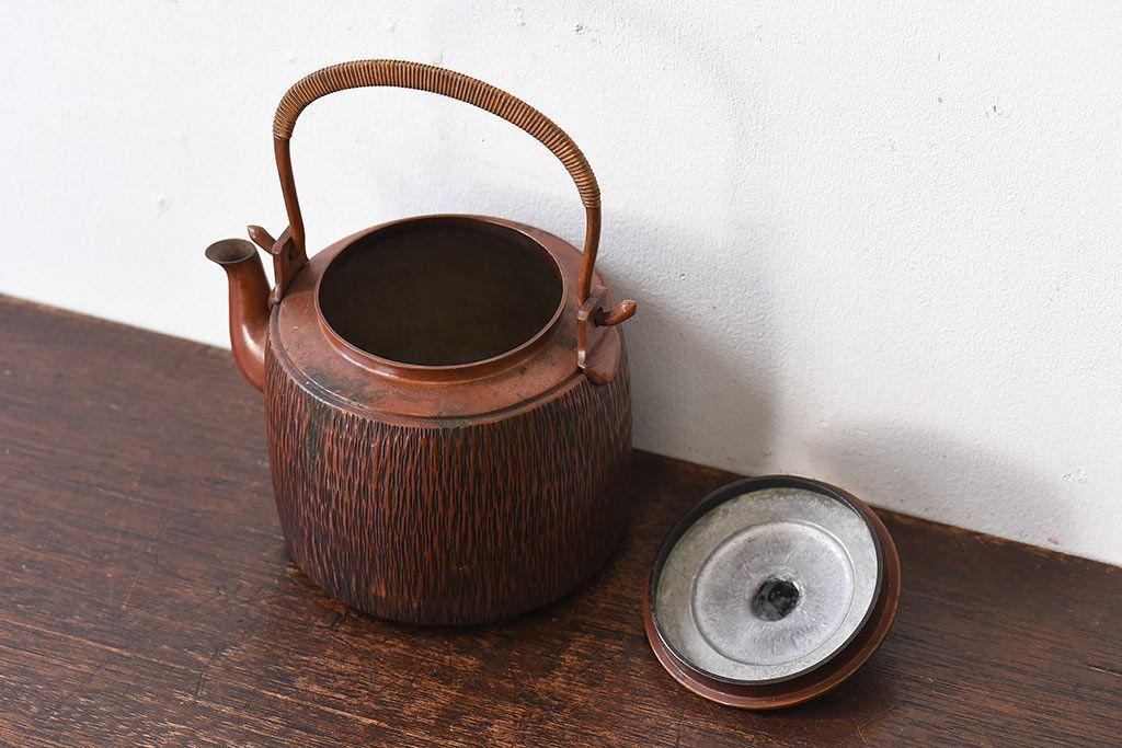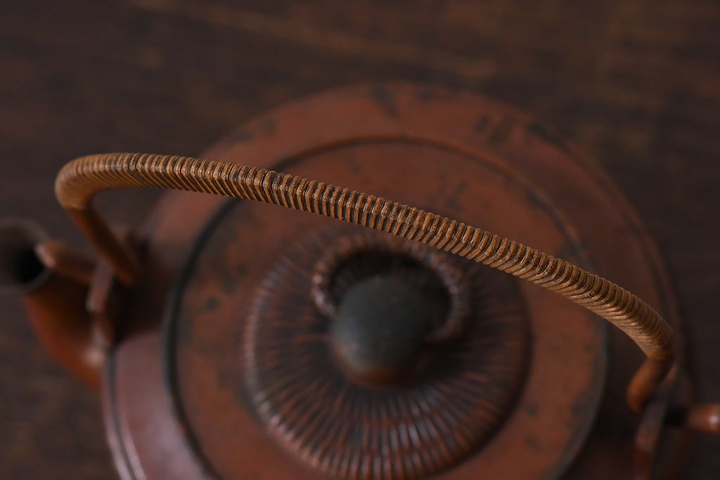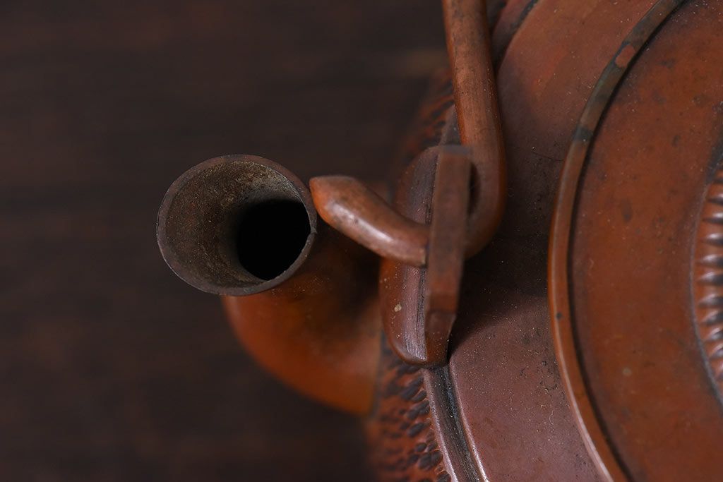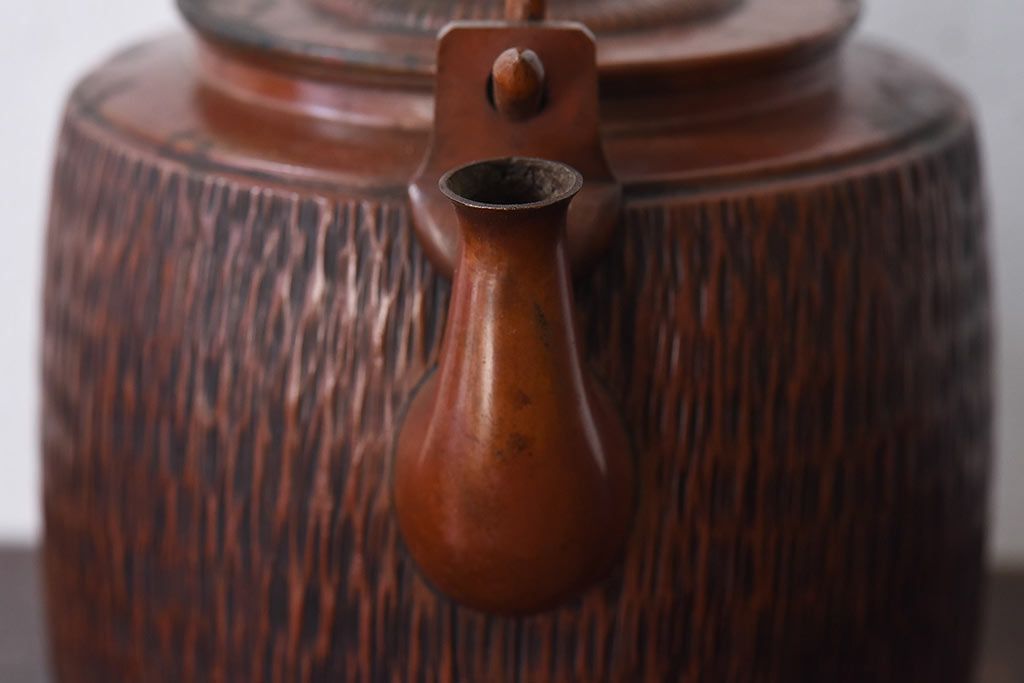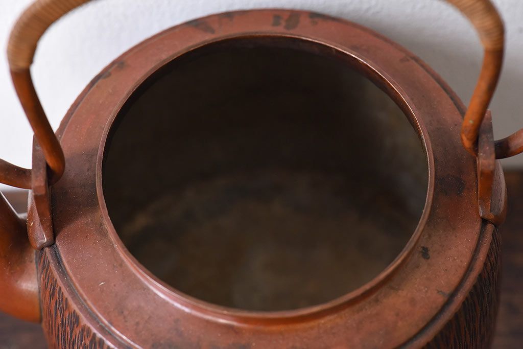 アンティーク雑貨 明治大正期 環摘み麦藁紋銅製薬缶(水注、鉄瓶)