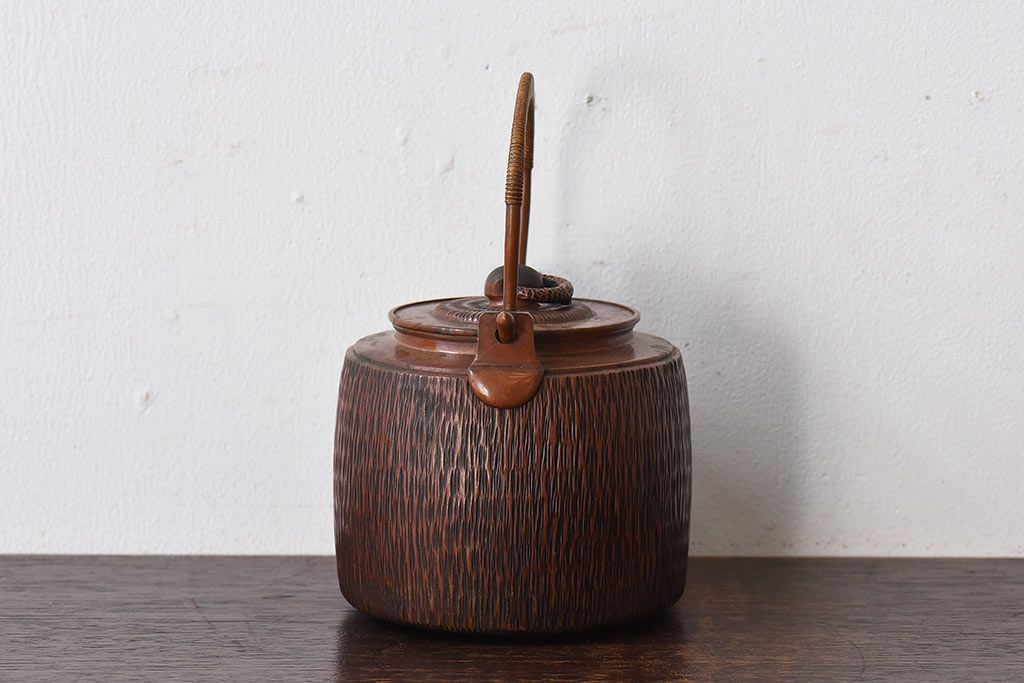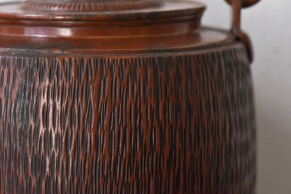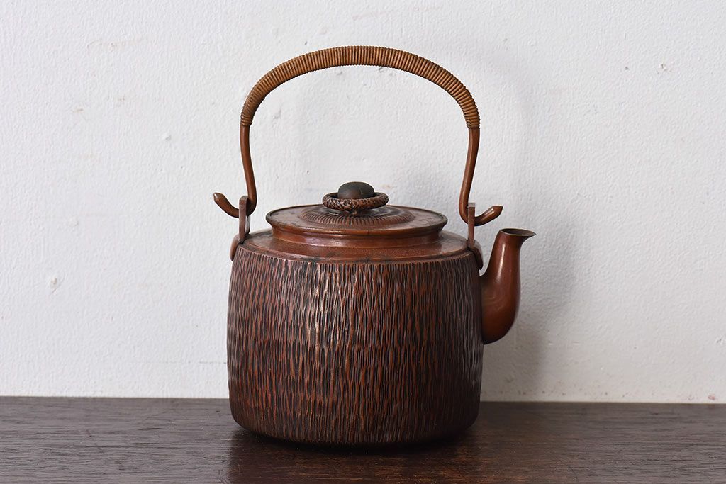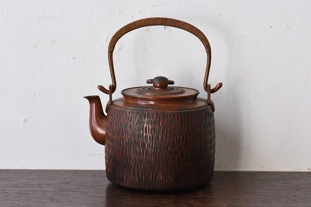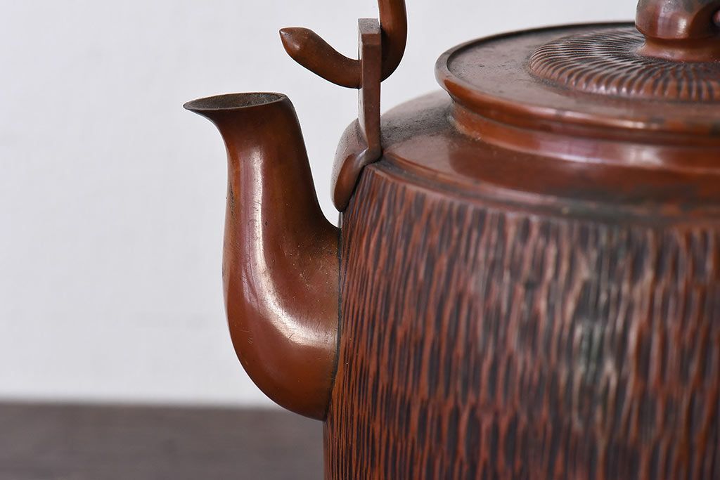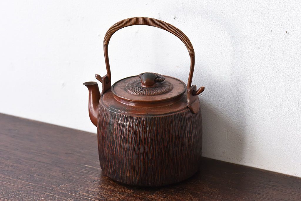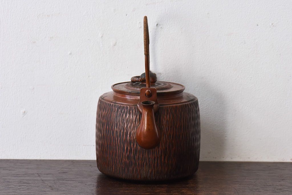 アンティーク雑貨 明治大正期 環摘み麦藁紋銅製薬缶(水注、鉄瓶)