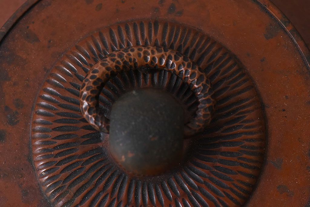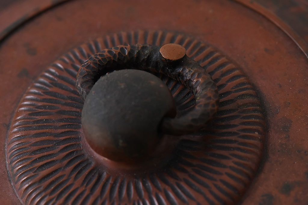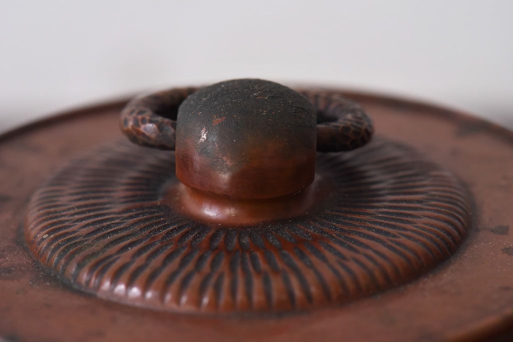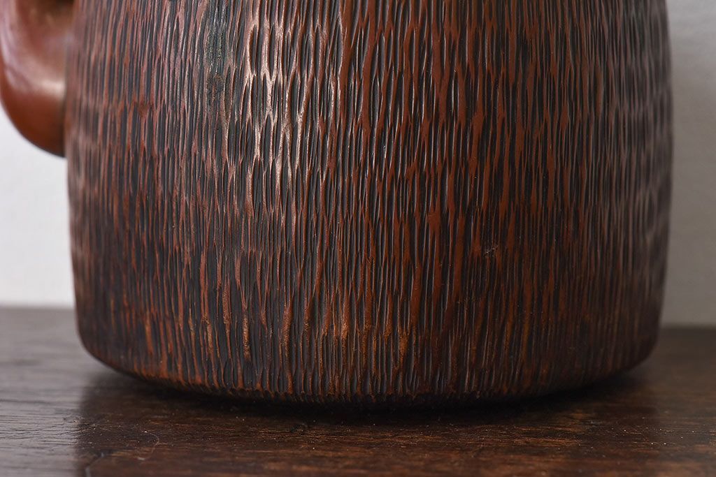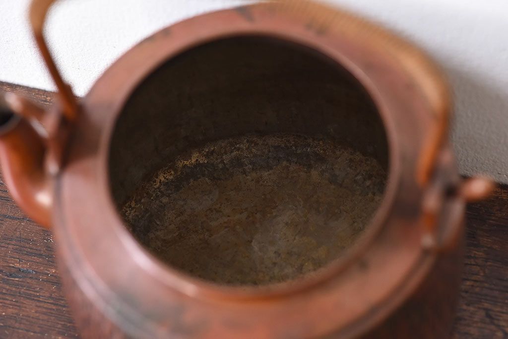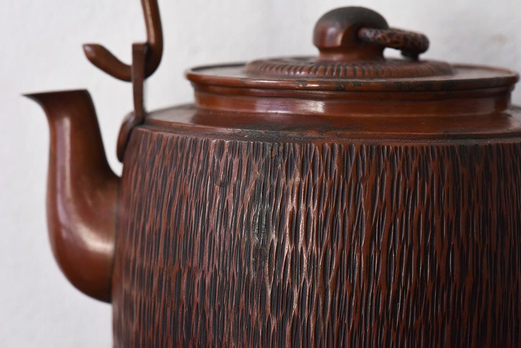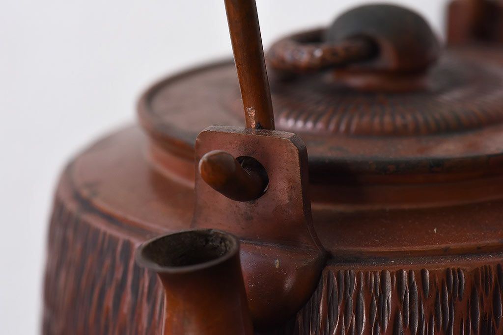アンティーク雑貨 明治大正期 環摘み麦藁紋銅製薬缶(水注、鉄瓶)