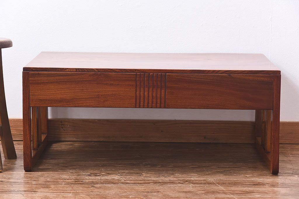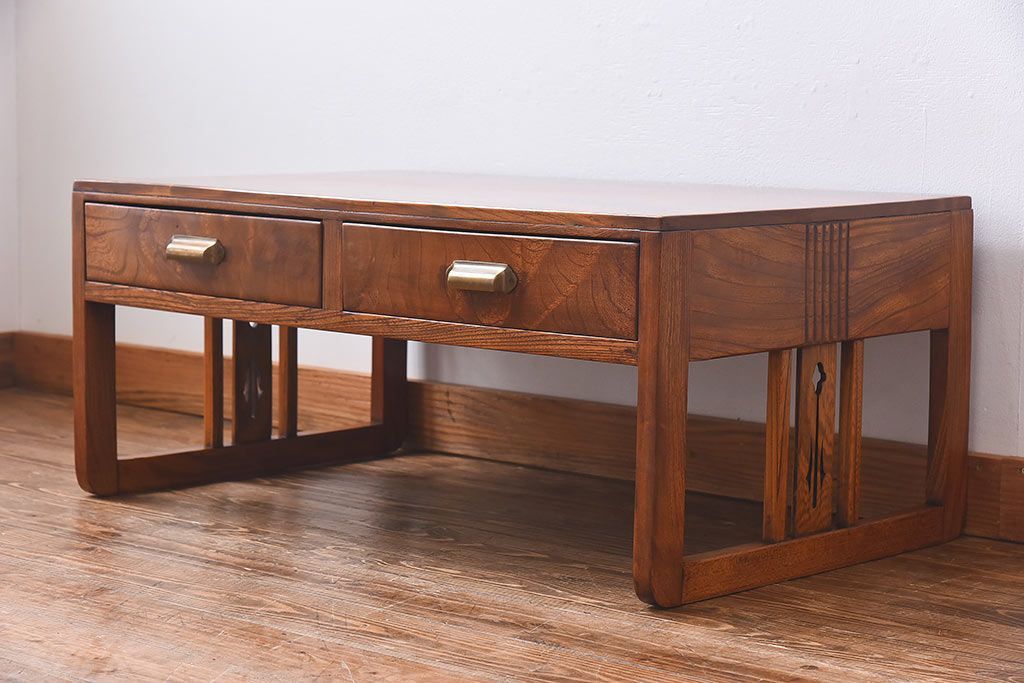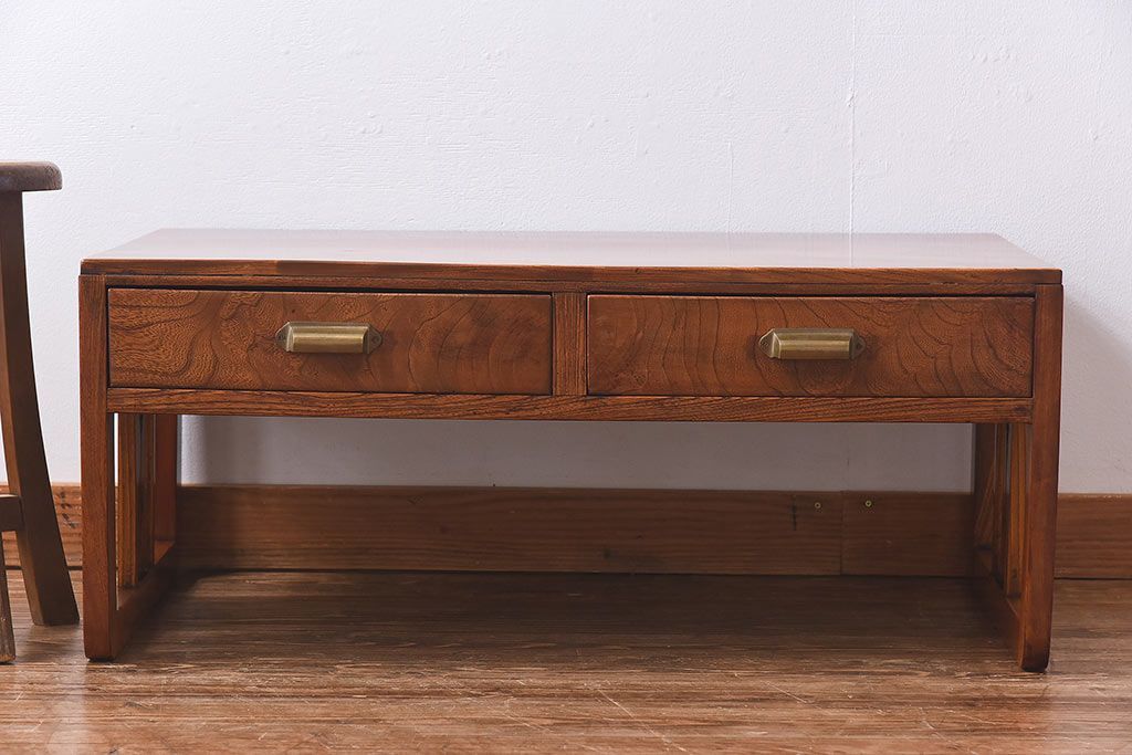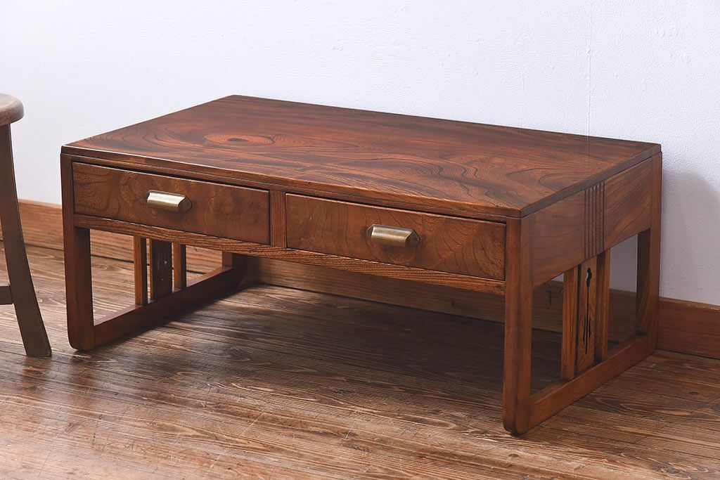 ラフジュ工房> テーブル> 座卓 > アンティーク家具 大正昭和期 総ケヤキ材の上質な雰囲気漂う文机(ローテーブル、座卓)