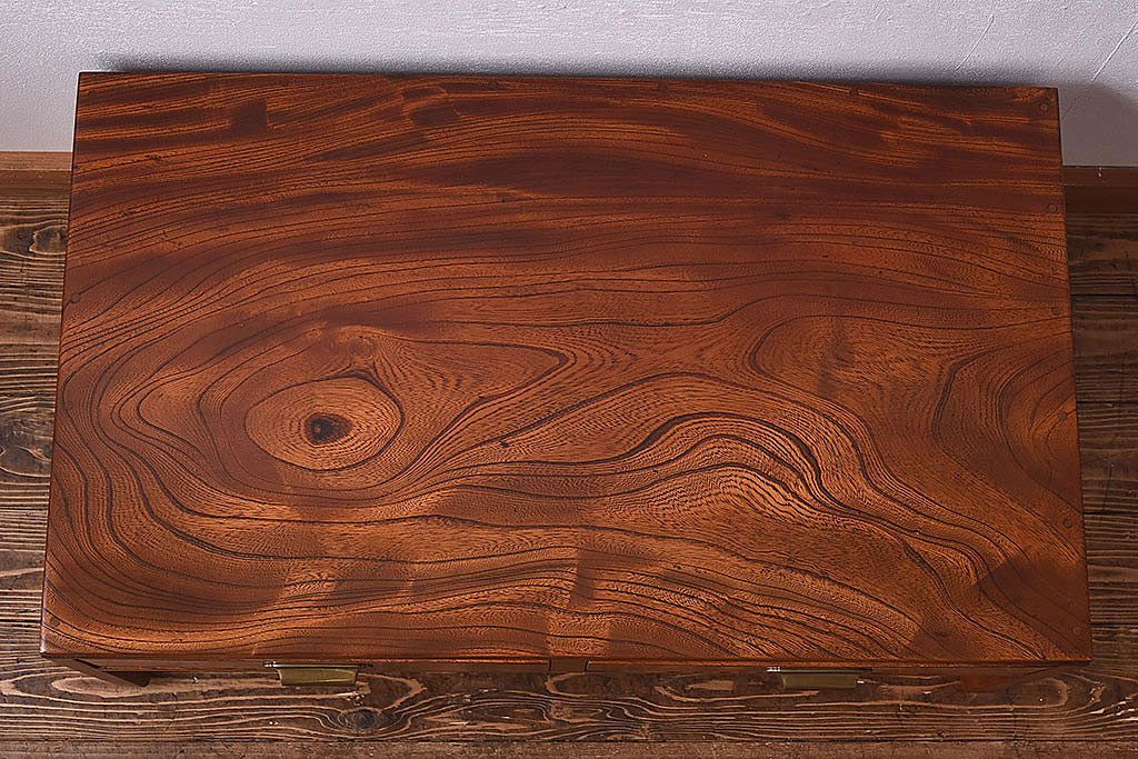 アンティーク家具 大正昭和期 総ケヤキ材の上質な雰囲気漂う文机(ローテーブル、座卓)