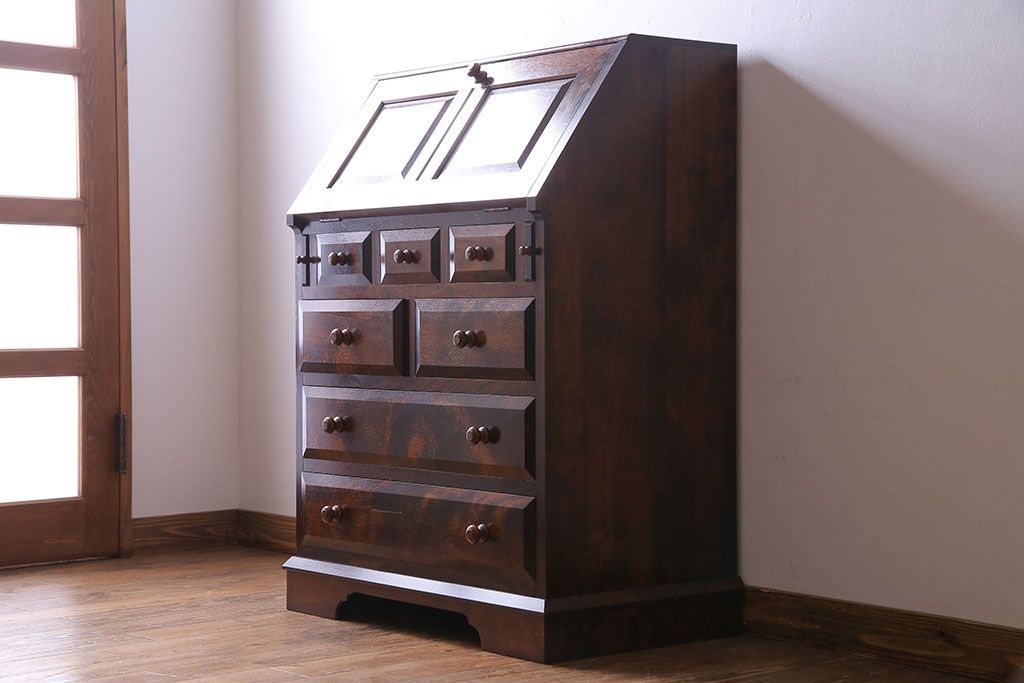 民芸家具				> 中古 松本民芸家具 シックな雰囲気漂うT型ライティングビューロー(ワークデスク、在宅ワーク、在宅用)(定価約31万円)