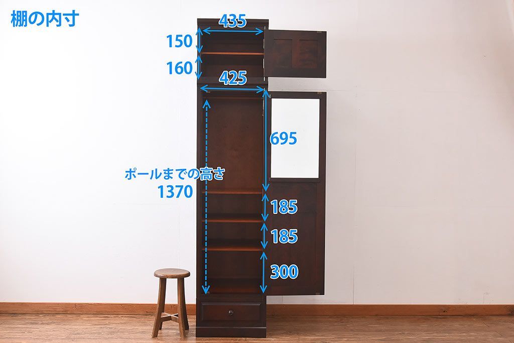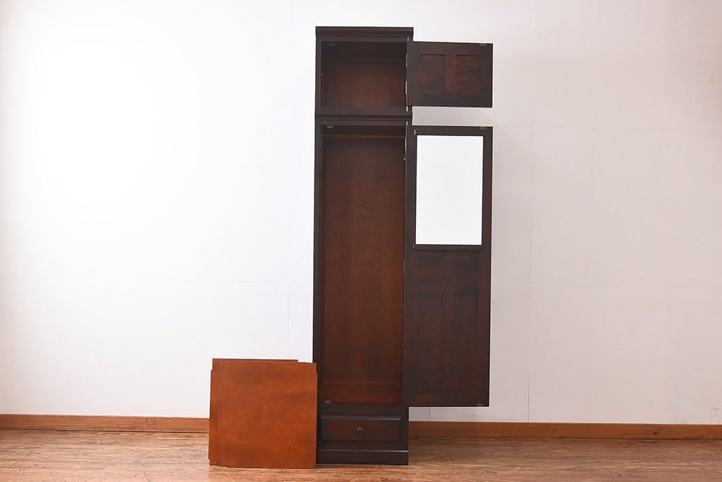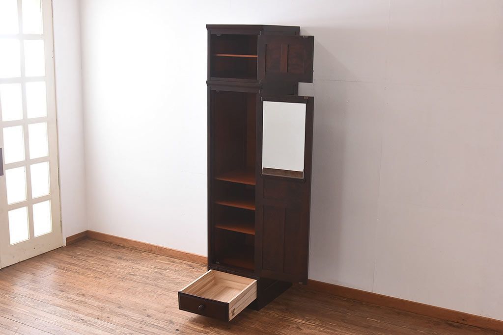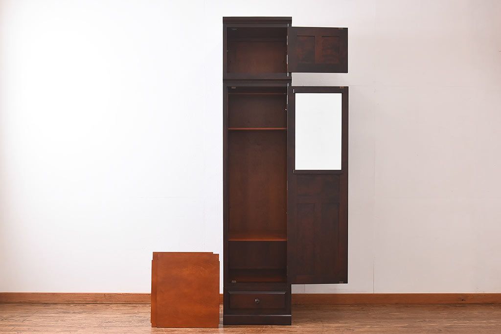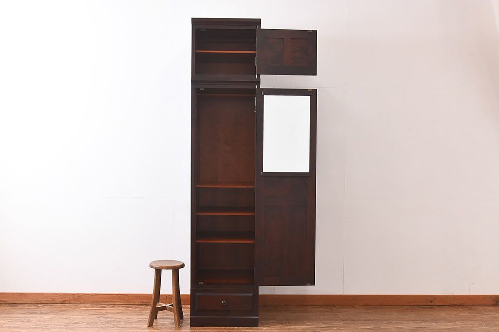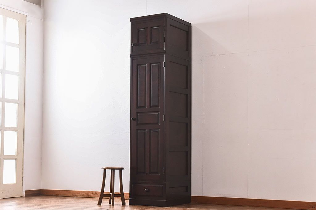 中古 北海道民芸家具 細身のサイズが珍しいワードローブ(収納棚、キャビネット)