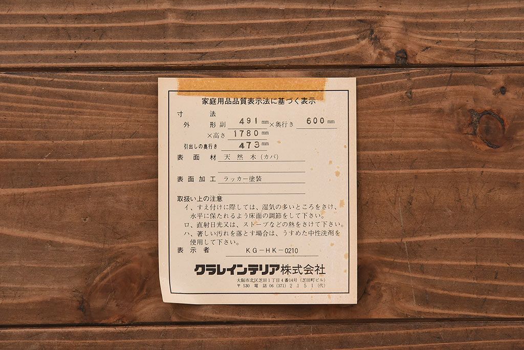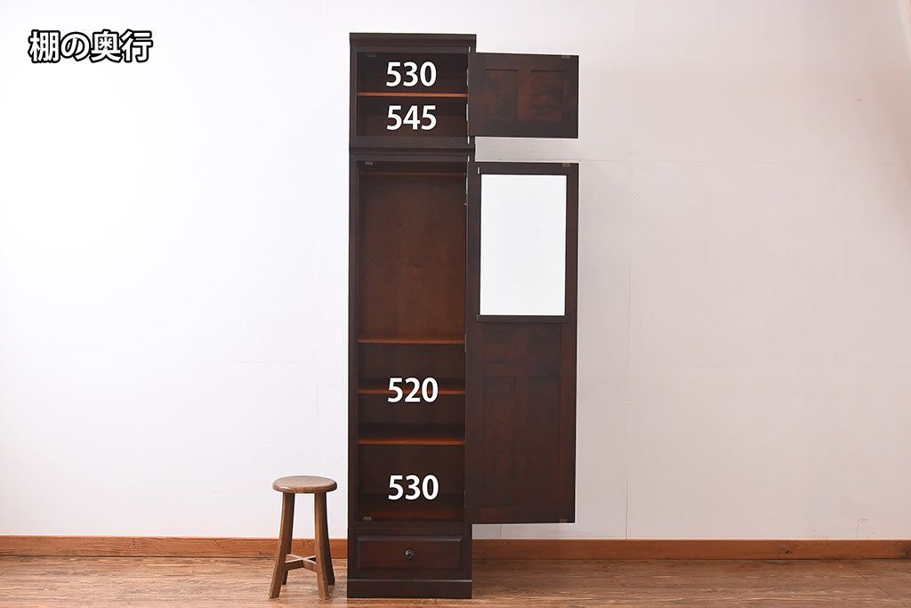 ラフジュ工房> ワードローブ・ロッカー> ワードローブ > 中古 北海道民芸家具 細身のサイズが珍しいワードローブ(収納棚、キャビネット)