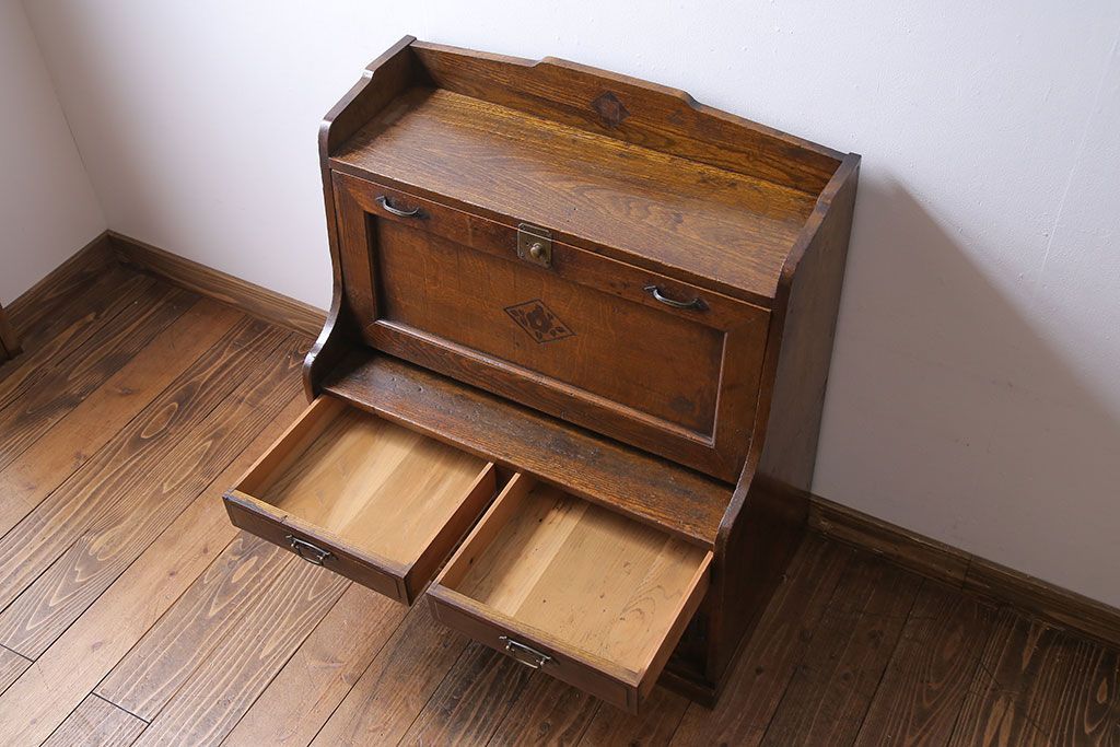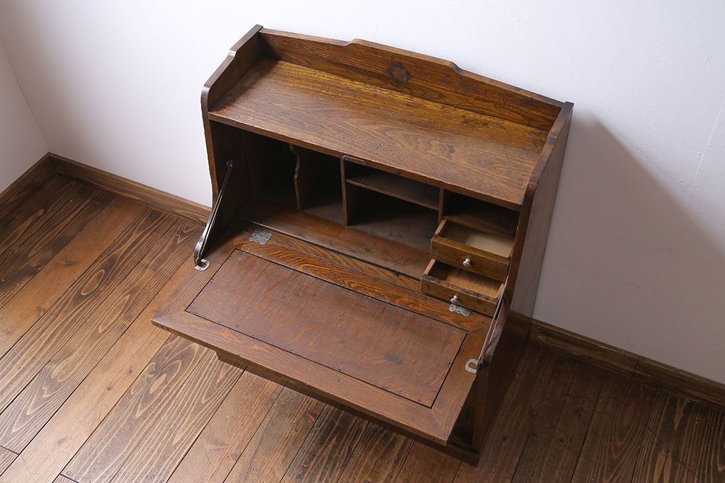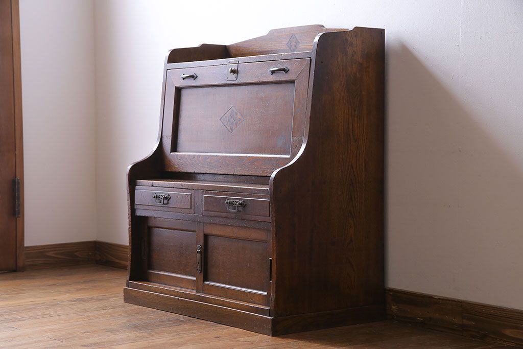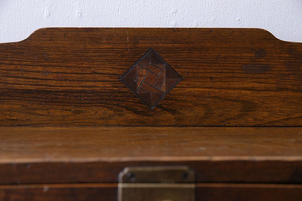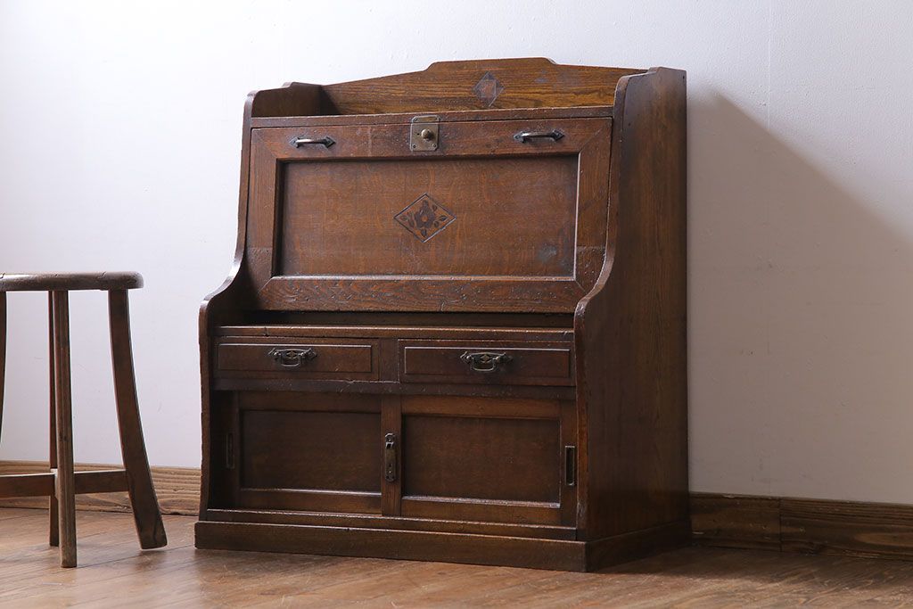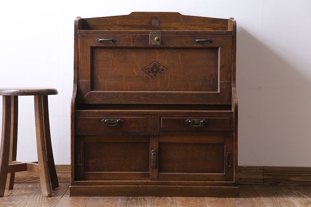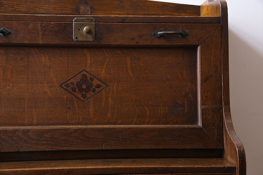 ラフジュ工房> デスク> 子供机 > アンティーク家具 大正ロマン 象嵌入り ナラ材のライティングビューロー(ワークデスク、在宅ワーク、在宅用、学習机)