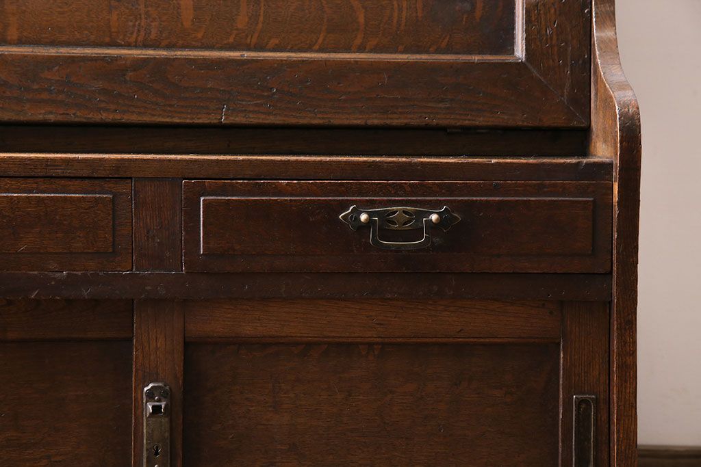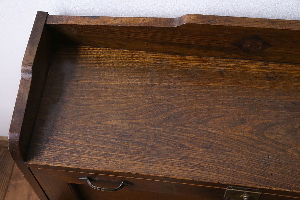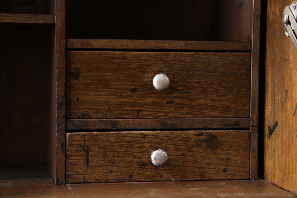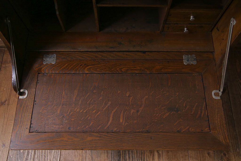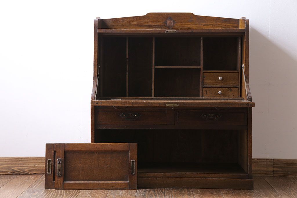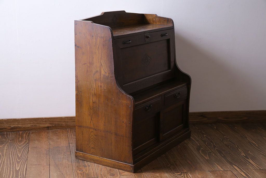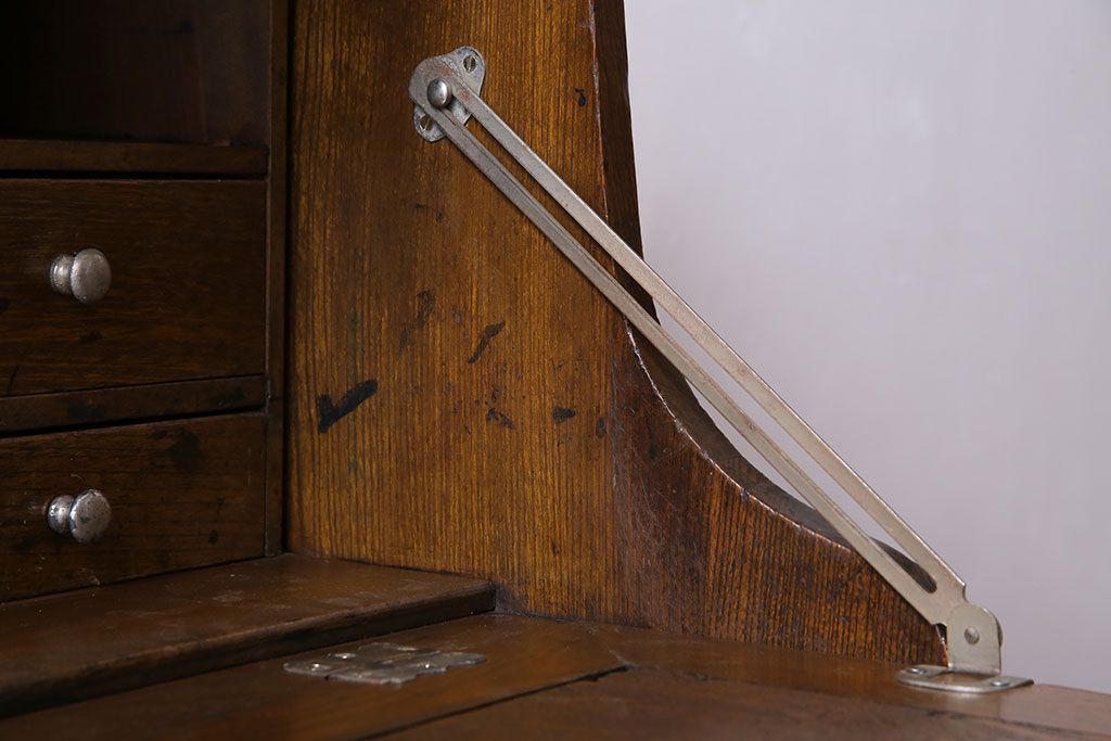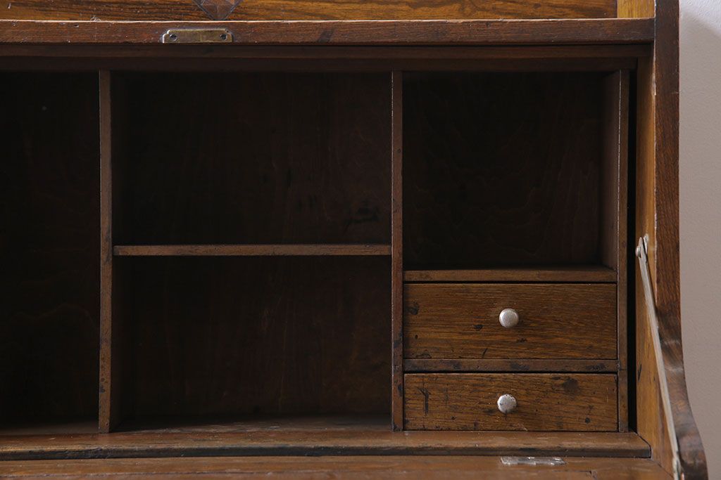 ラフジュ工房> デスク> 子供机 > アンティーク家具 大正ロマン 象嵌入り ナラ材のライティングビューロー(ワークデスク、在宅ワーク、在宅用、学習机)