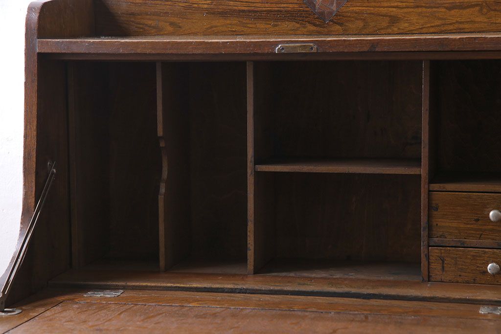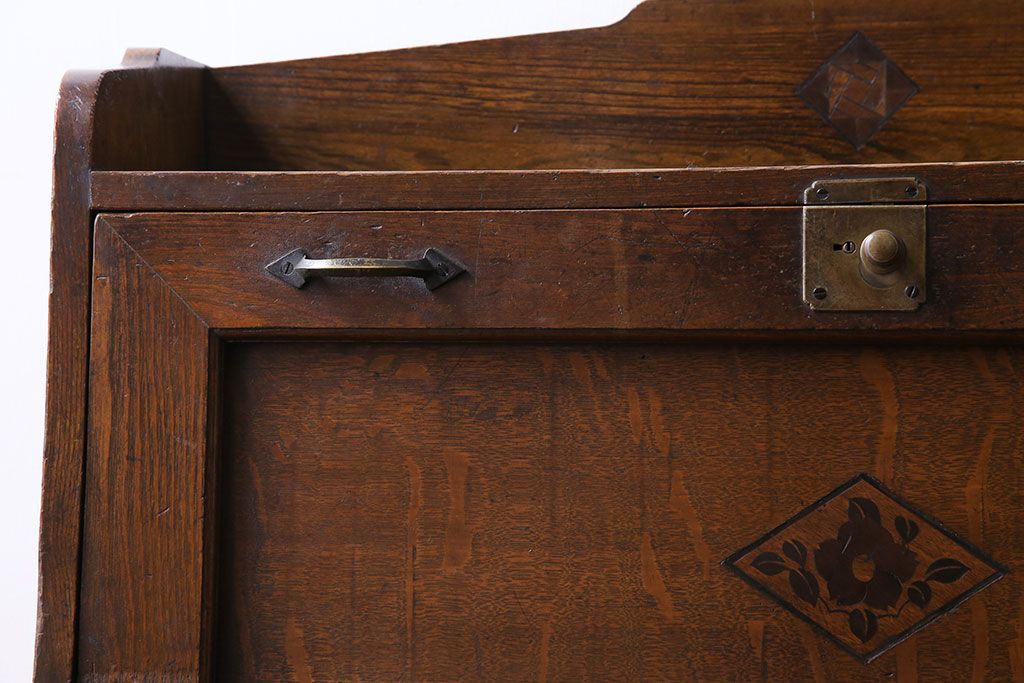 ラフジュ工房> デスク> ワークデスク > アンティーク家具 大正ロマン 象嵌入り ナラ材のライティングビューロー(ワークデスク、在宅ワーク、在宅用、学習机)