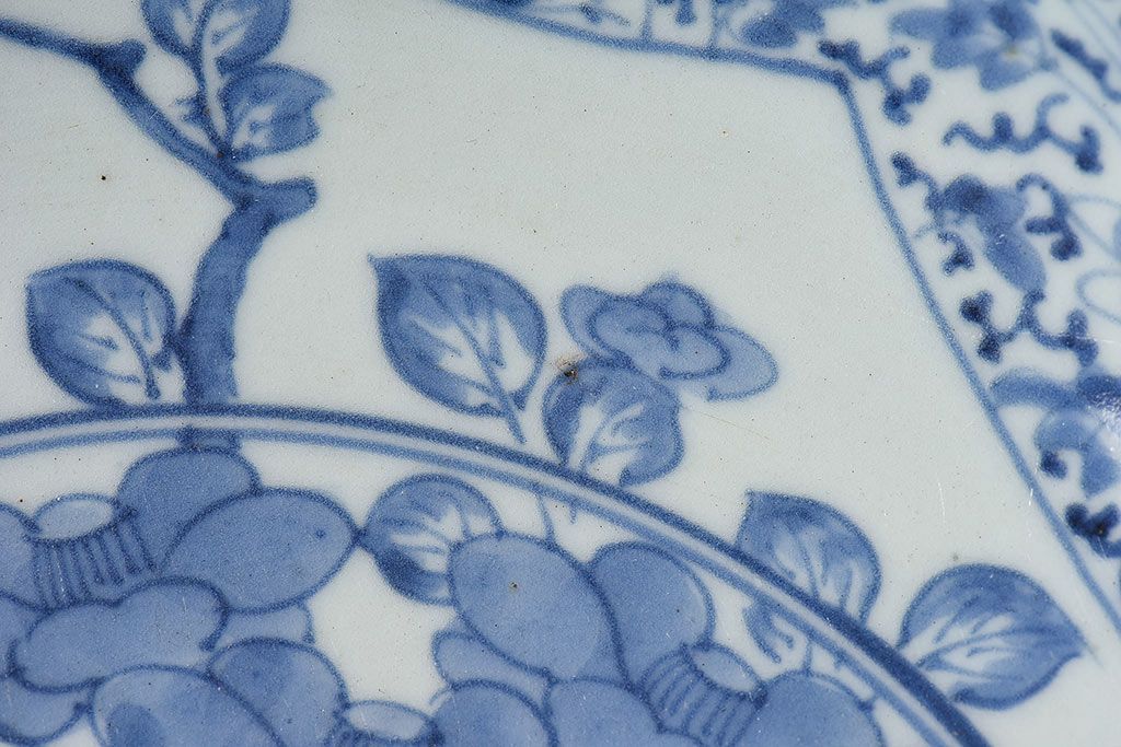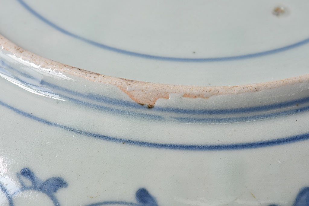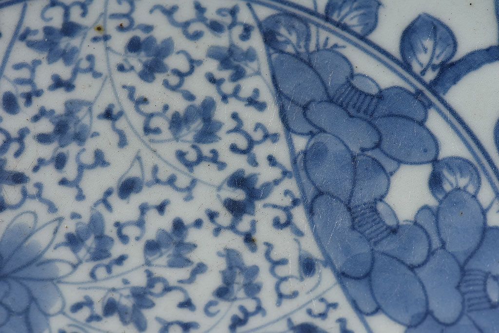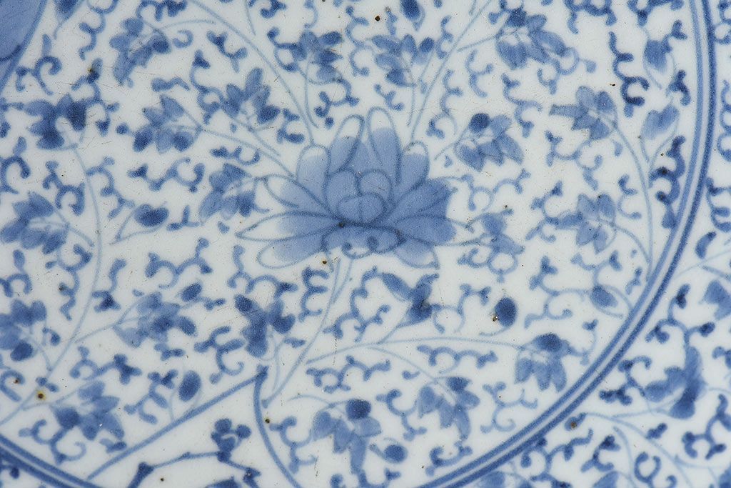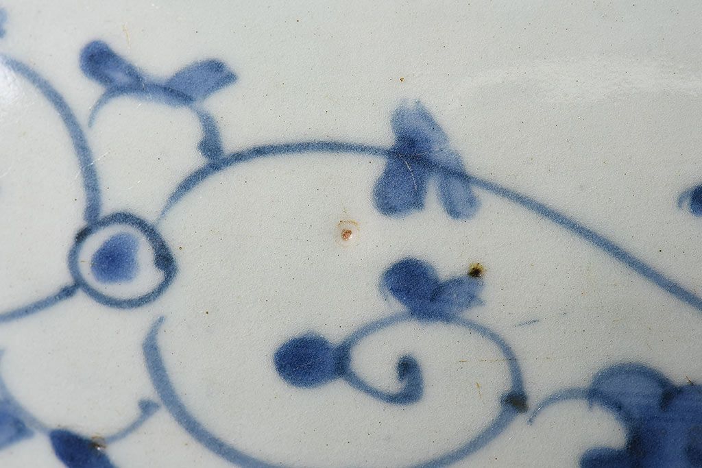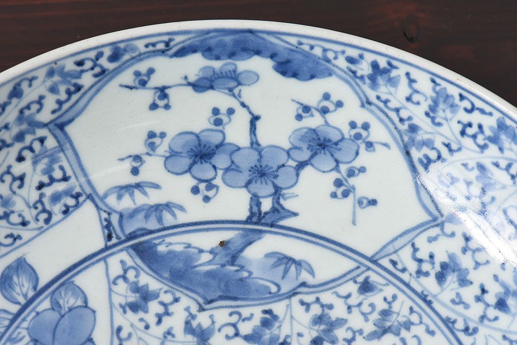 ラフジュ工房> 骨董・美術品> 骨董-陶磁器 > アンティーク雑貨 江戸期 古伊万里 花唐草文 染付 九寸深皿(渦福)