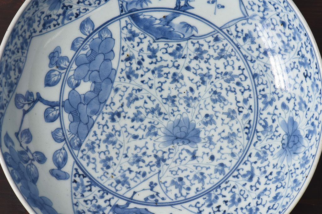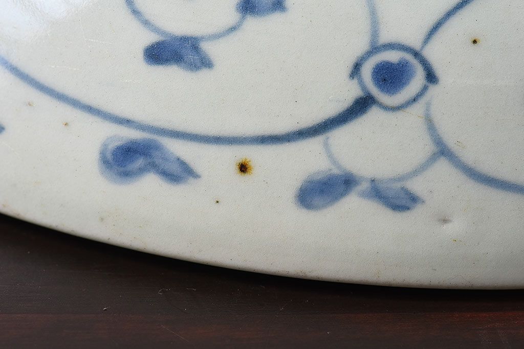 ラフジュ工房> 和食器・茶道具> 皿 > アンティーク雑貨 江戸期 古伊万里 花唐草文 染付 九寸深皿(渦福)