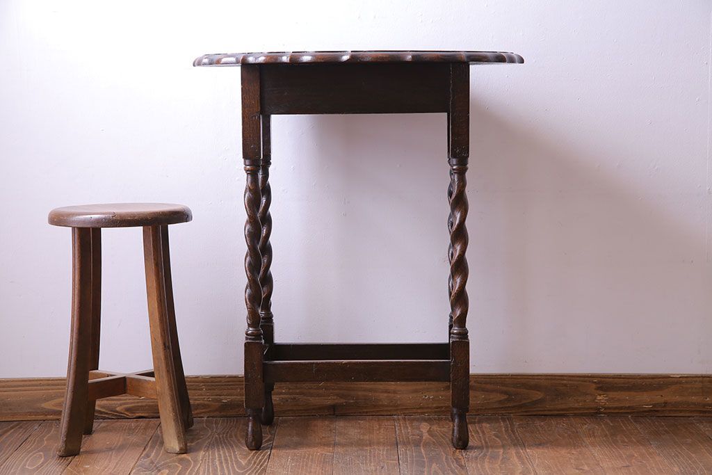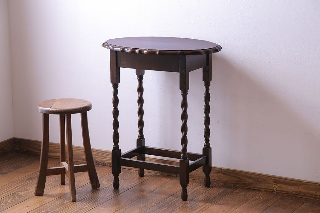 ラフジュ工房> 花台・飾り台 > アンティーク雑貨 イギリスアンティーク ツイストレッグが魅力のサイドテーブル(コーヒーテーブル、オケージョナルテーブル)