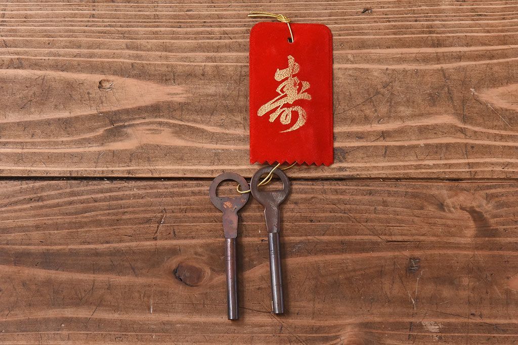 鍵は付属します。画像にありますように、袋に入れお付けします。スムーズに動くように調整していますが、あくまでも古いものや中古品ですので、長期の使用保証は出来かねます。ご購入後不具合が発生した場合は、当店でサポートさせていただきますので、お気軽にご相談くださいませ。