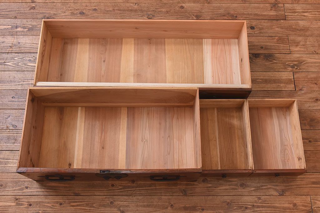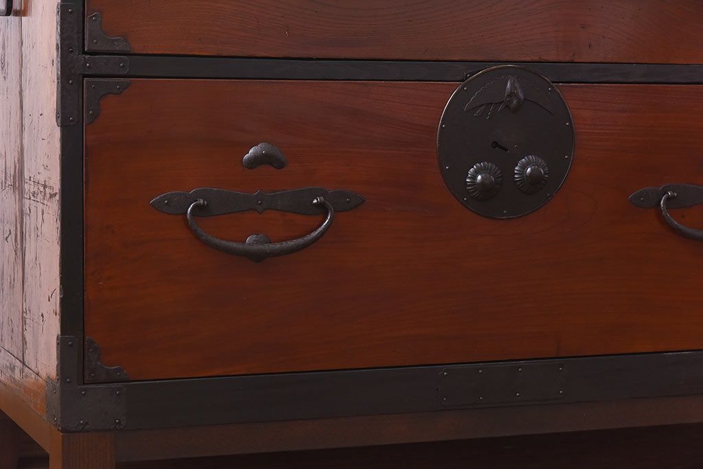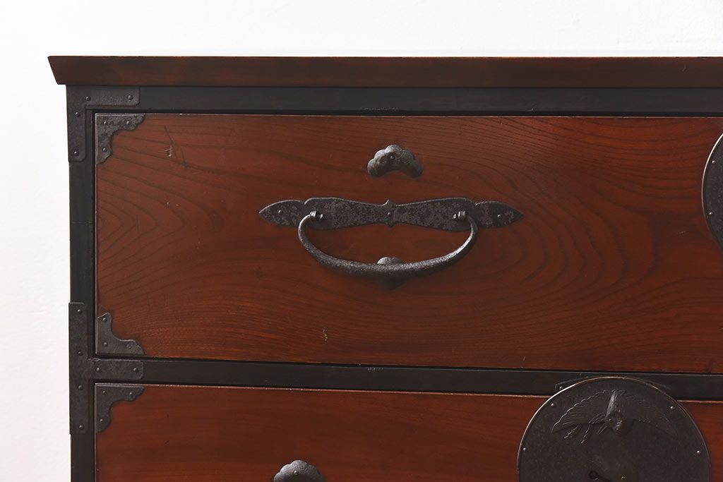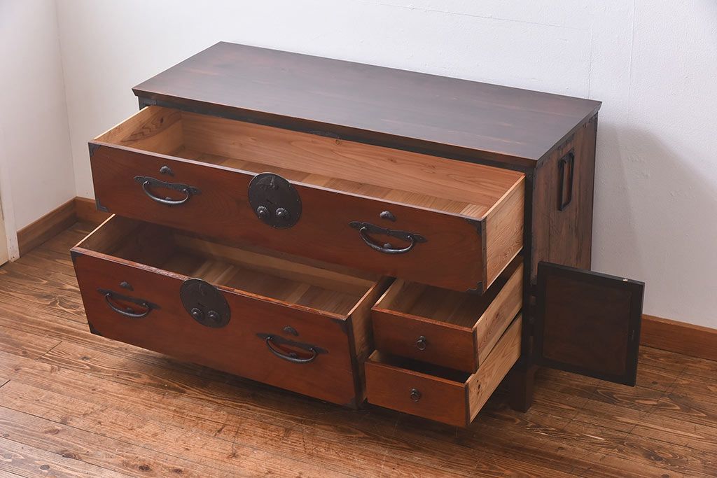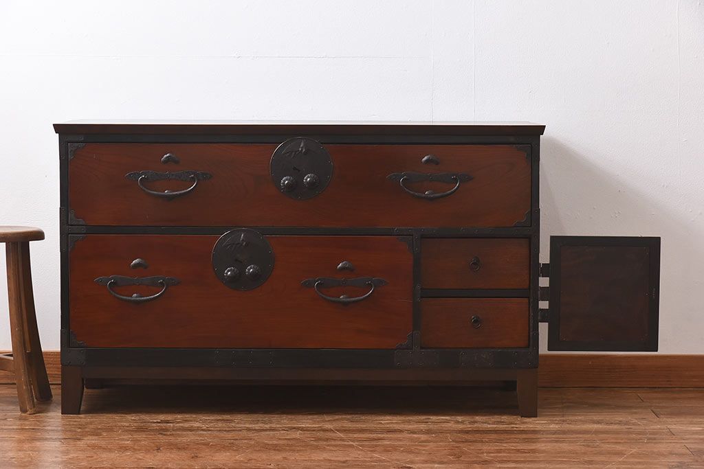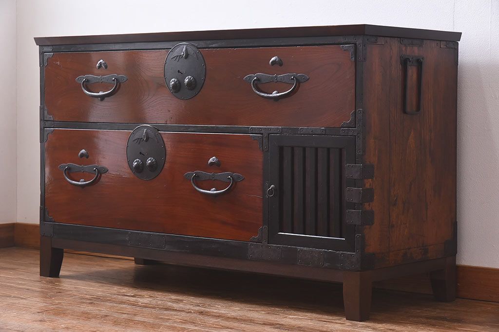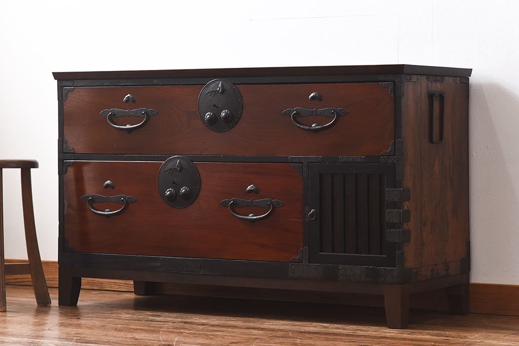 ラフジュ工房> 和箪笥 > アンティーク家具 和製アンティーク リメイク 前面ケヤキ材の脚付き二本松箪笥ローボード(和タンス、衣装箪笥)