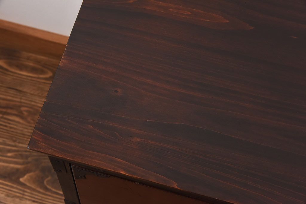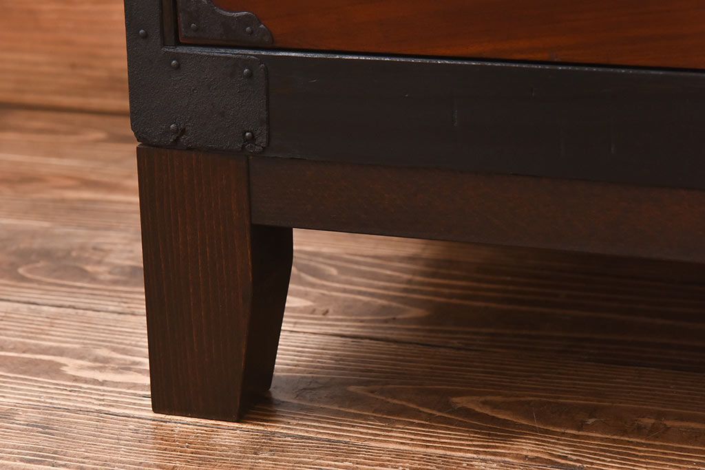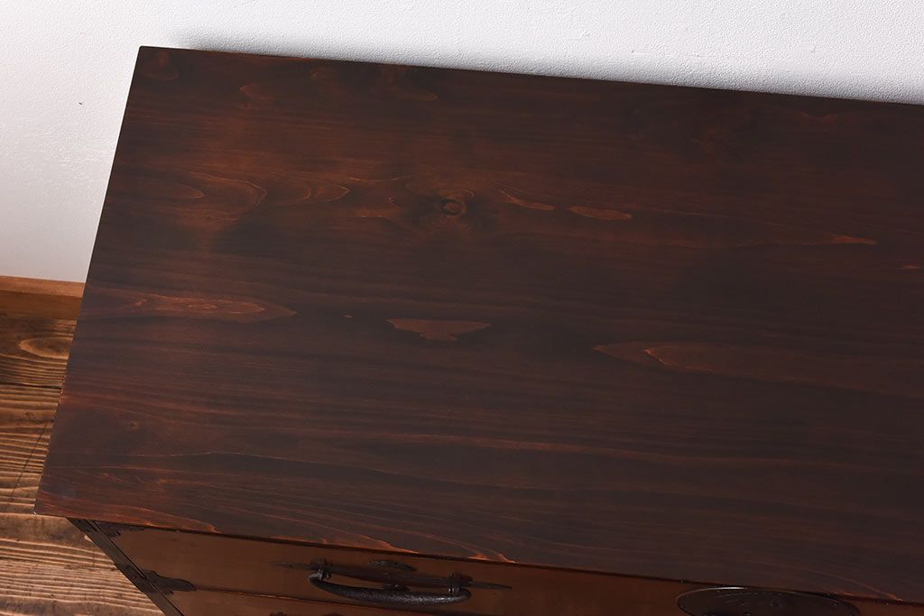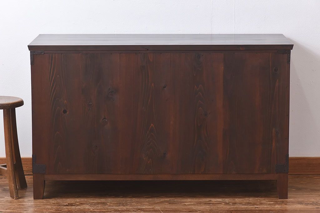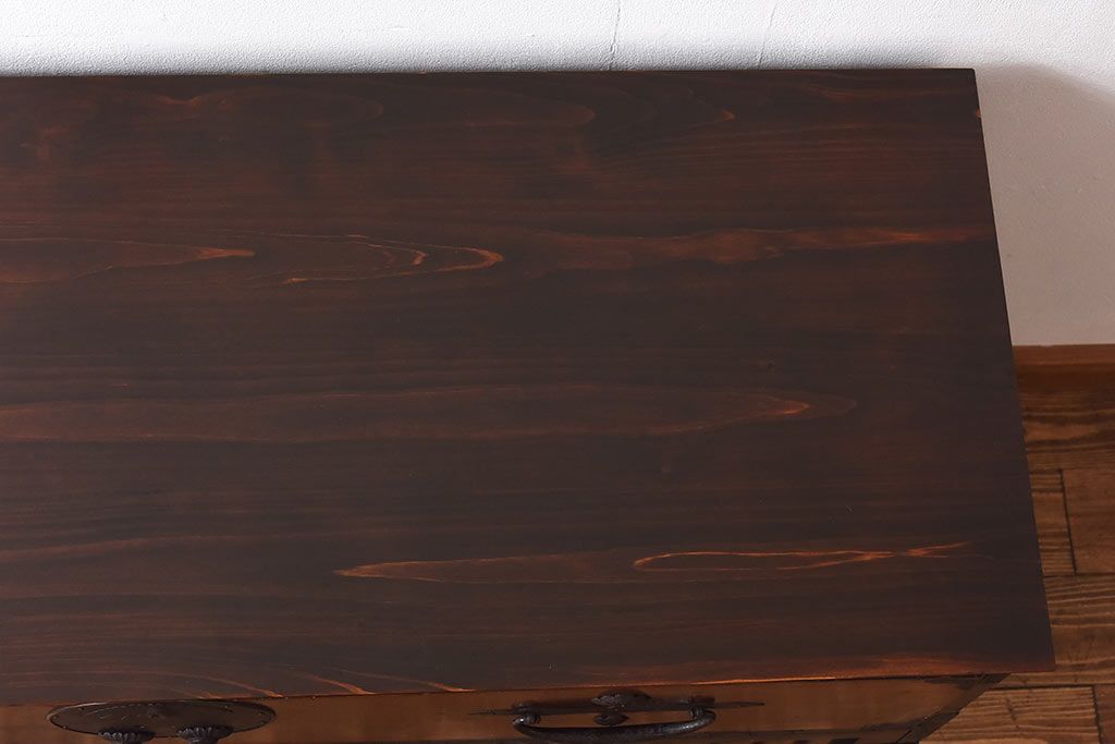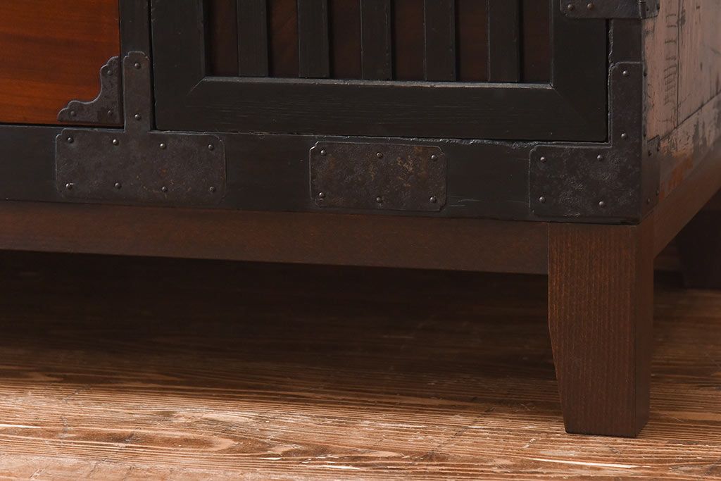 ラフジュ工房> キャビネット・戸棚> テレビ台・ローボード > アンティーク家具 和製アンティーク リメイク 前面ケヤキ材の脚付き二本松箪笥ローボード(和タンス、衣装箪笥)