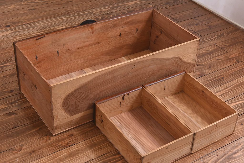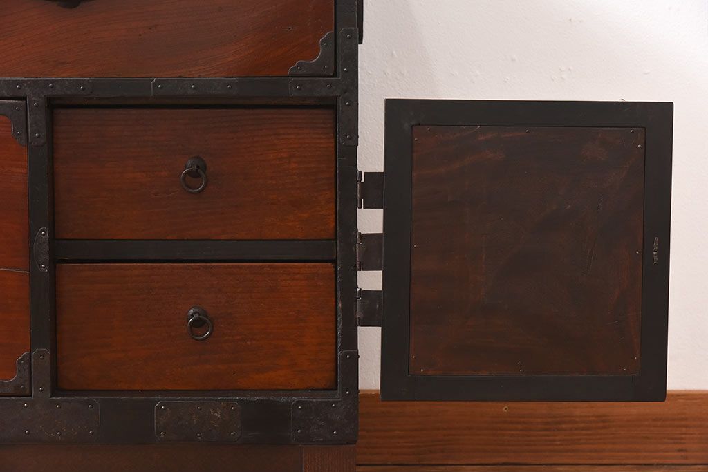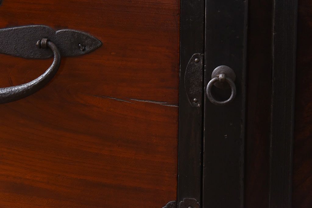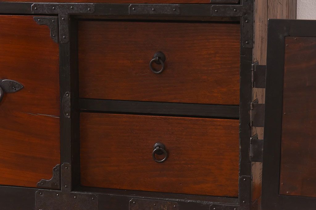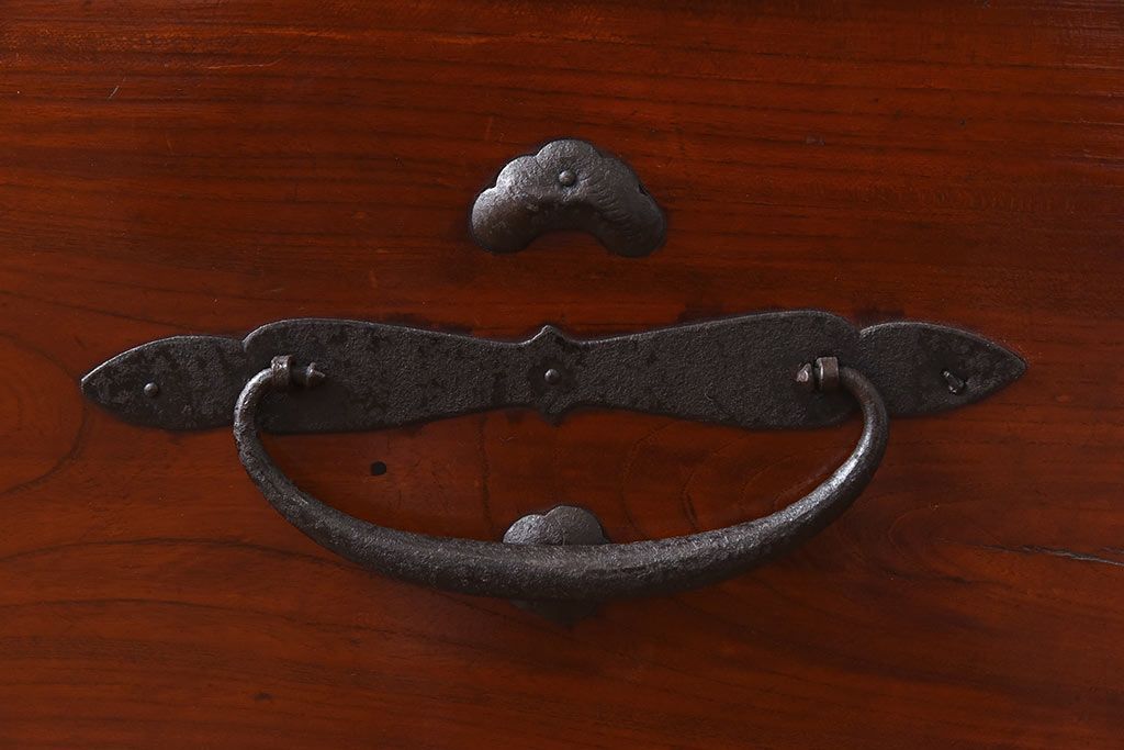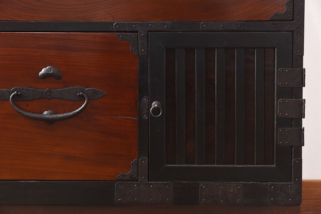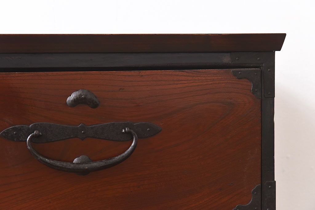 ラフジュ工房> キャビネット・戸棚> テレビ台・ローボード > アンティーク家具 和製アンティーク リメイク 前面ケヤキ材の脚付き二本松箪笥ローボード(和タンス、衣装箪笥)