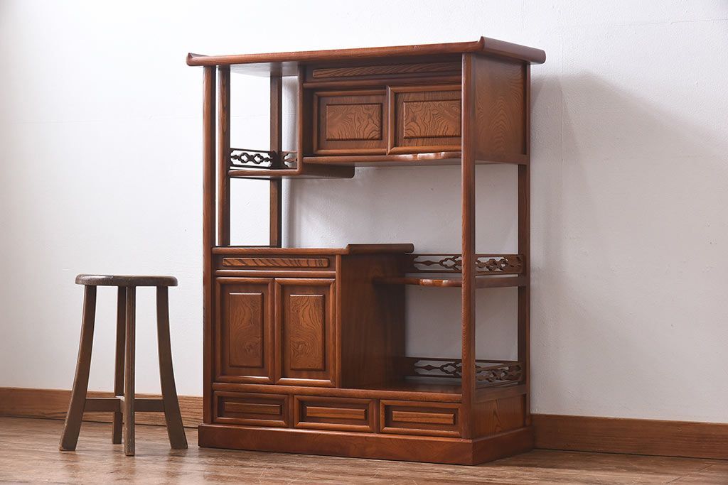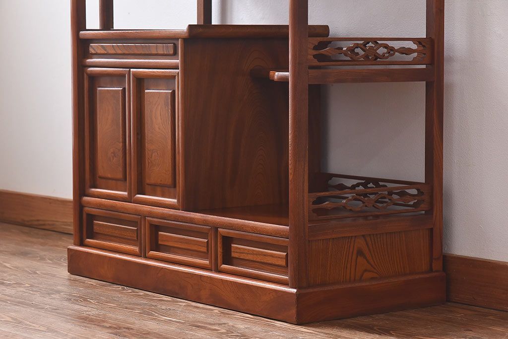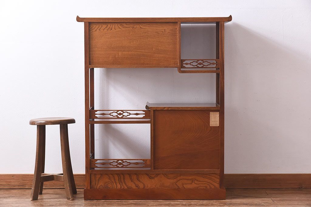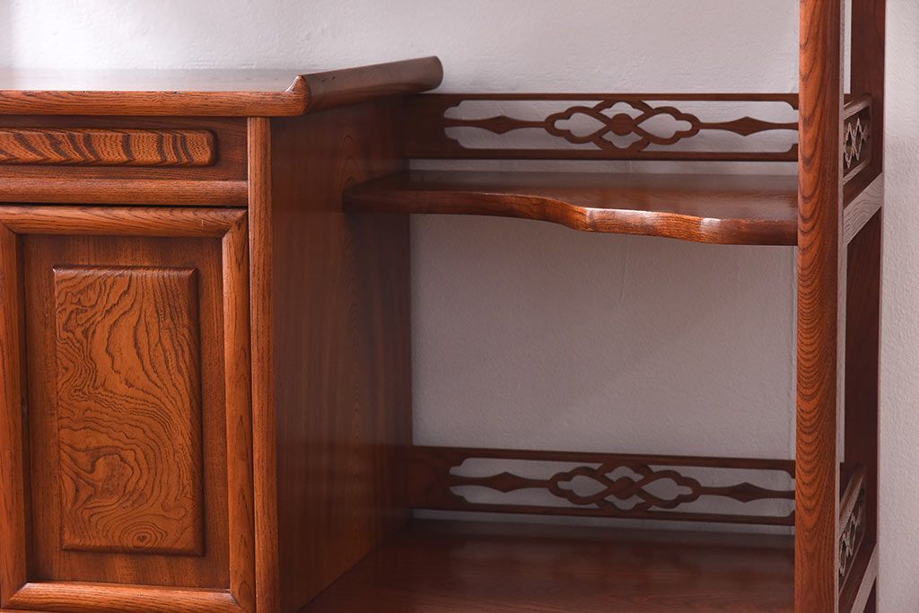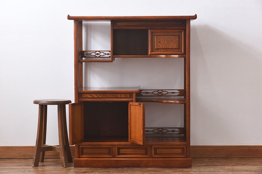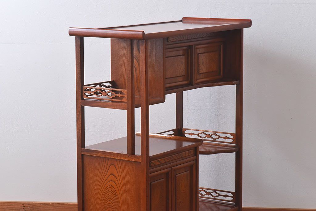 中古 ケヤキ材製 和の雰囲気を高める飾り棚(茶棚)(一部合板使用)