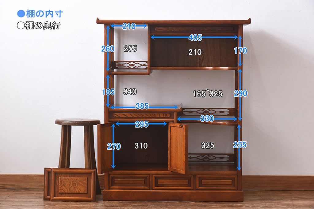 中古 ケヤキ材製 和の雰囲気を高める飾り棚(茶棚)(一部合板使用)です。