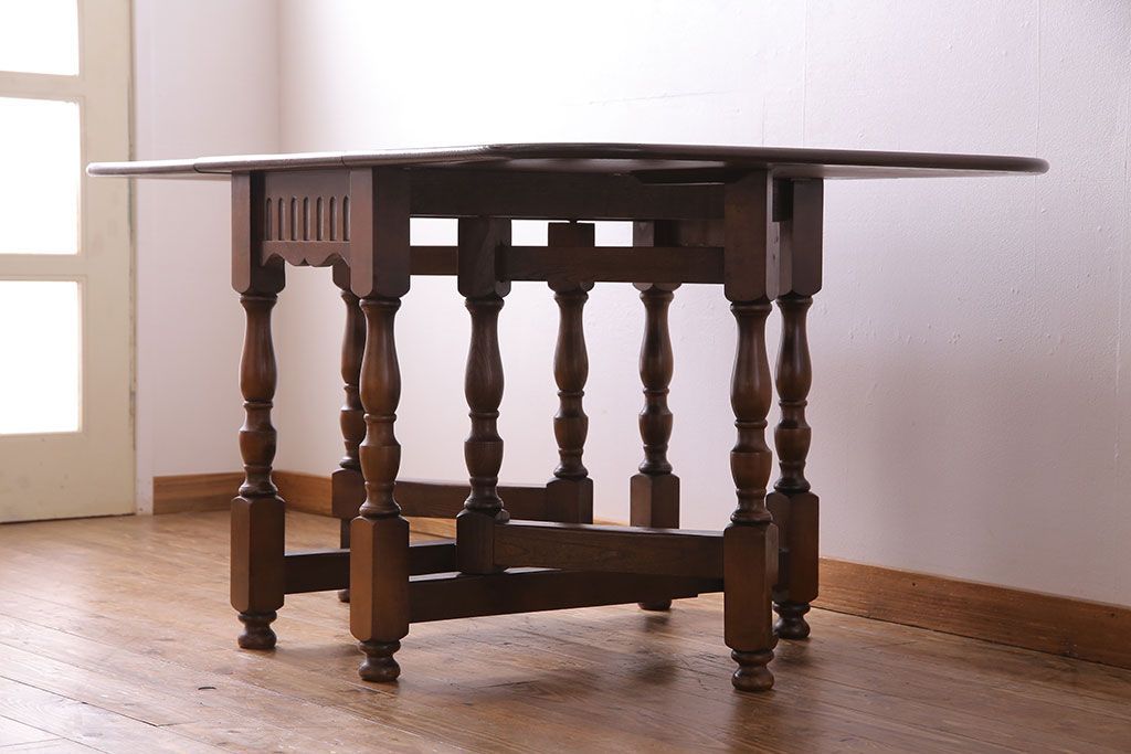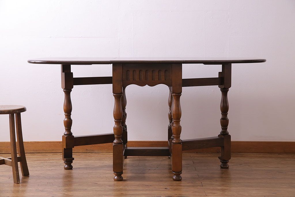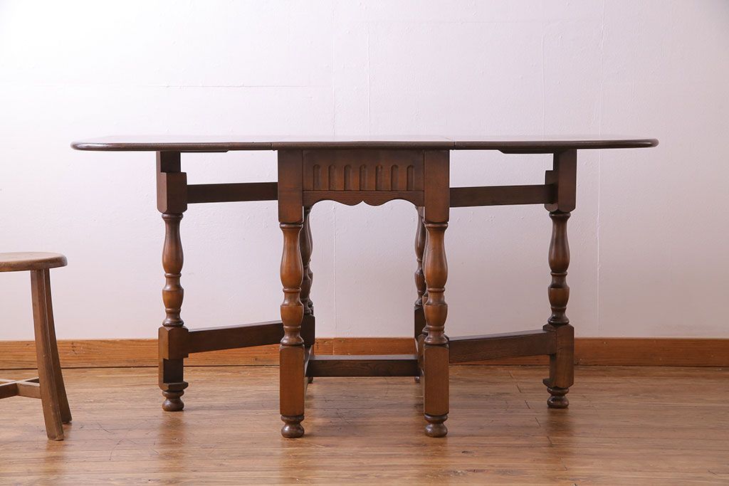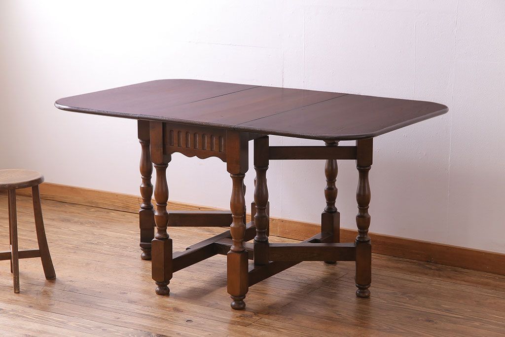 ラフジュ工房> テーブル> エクステンションテーブル > ヴィンテージ家具 ビンテージ オーク材 挽き物の脚が美しいゲートレッグテーブル(バタフライテーブル、エクステンションテーブル)