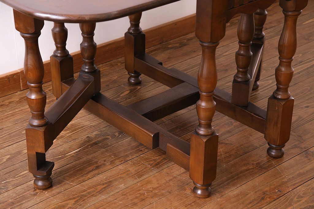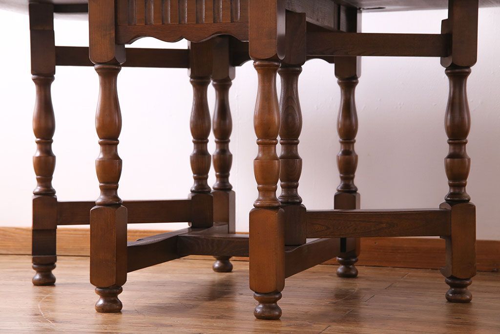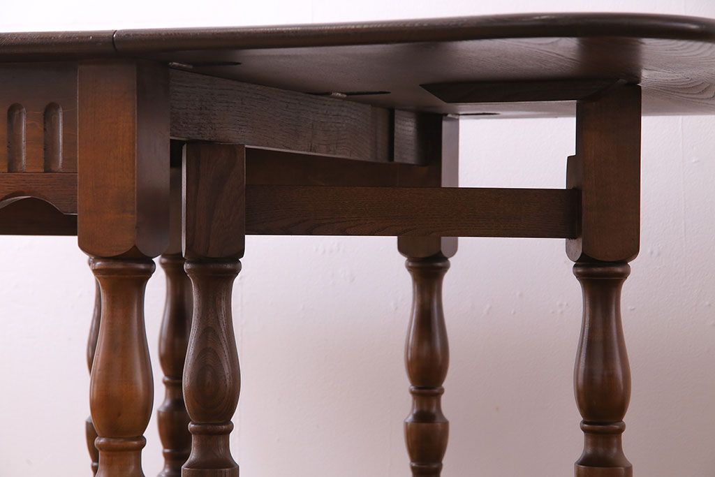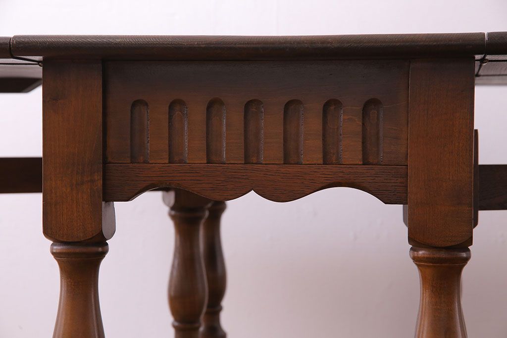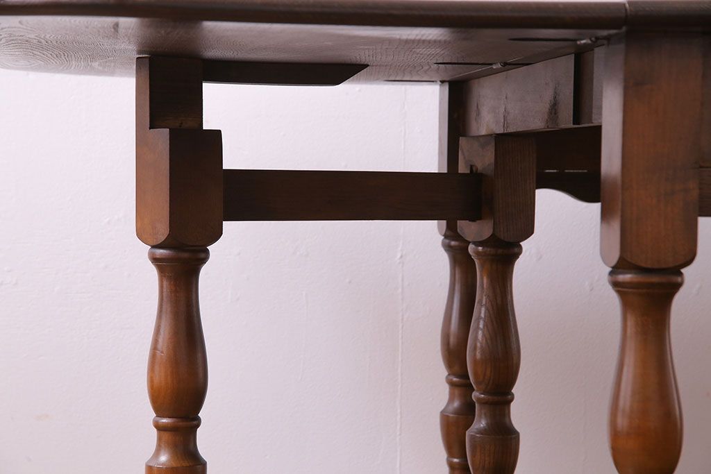 ラフジュ工房> テーブル> エクステンションテーブル > ヴィンテージ家具 ビンテージ オーク材 挽き物の脚が美しいゲートレッグテーブル(バタフライテーブル、エクステンションテーブル)