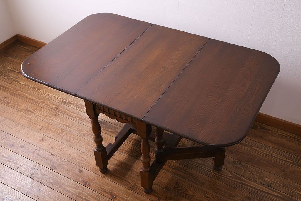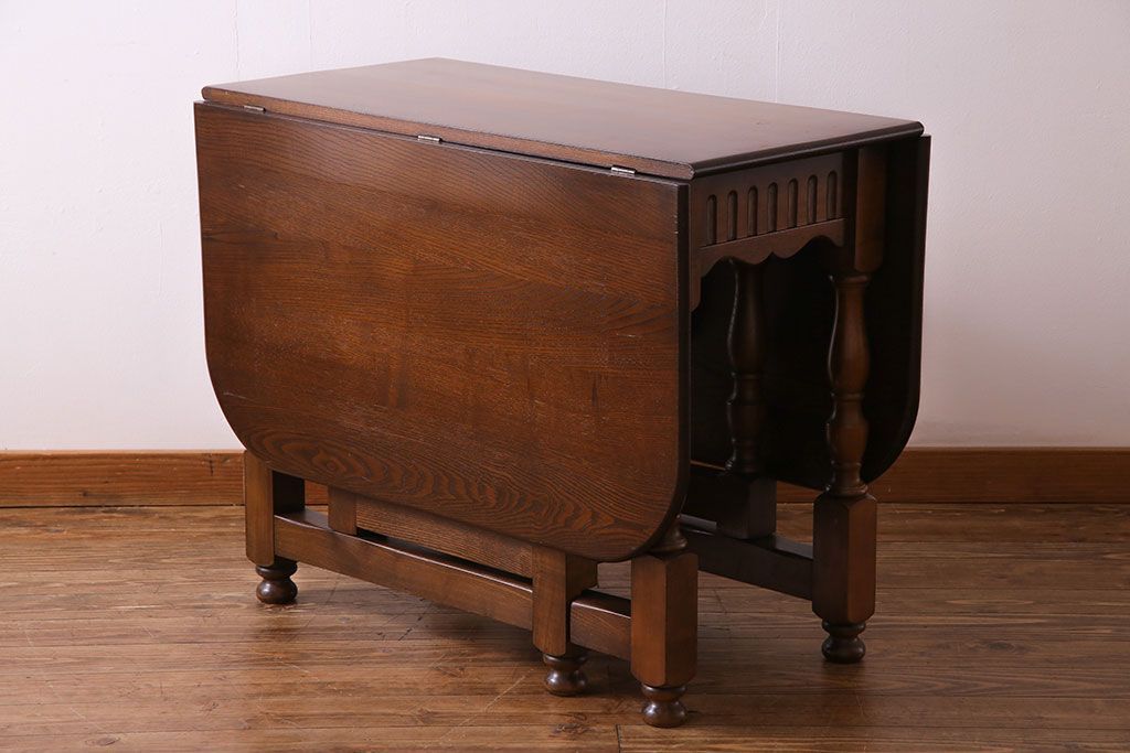 ヴィンテージ家具 ビンテージ オーク材 挽き物の脚が美しいゲートレッグテーブル(バタフライテーブル、エクステンションテーブル)