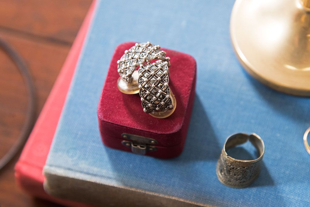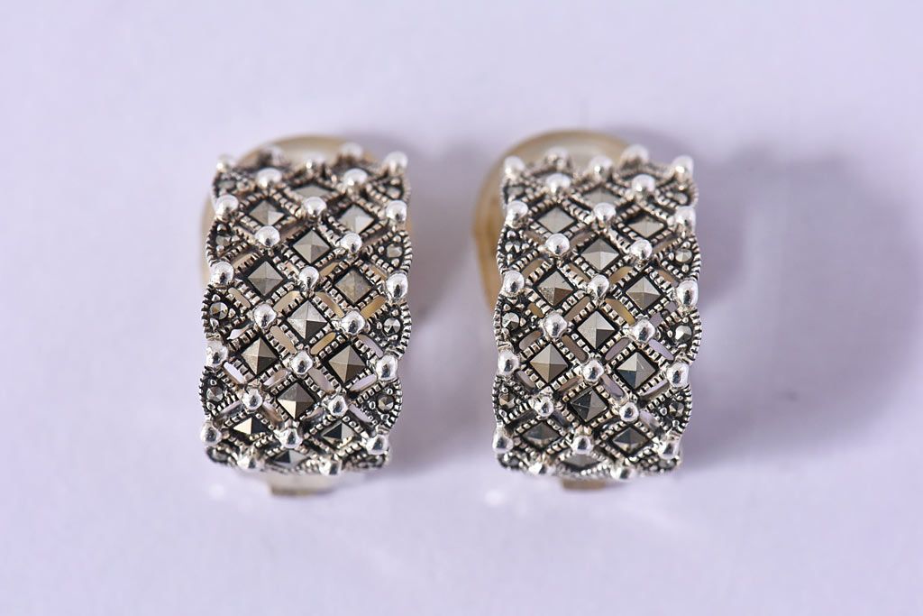 アンティーク雑貨 ビンテージ マーカサイト エレガントなシルバーイヤリング