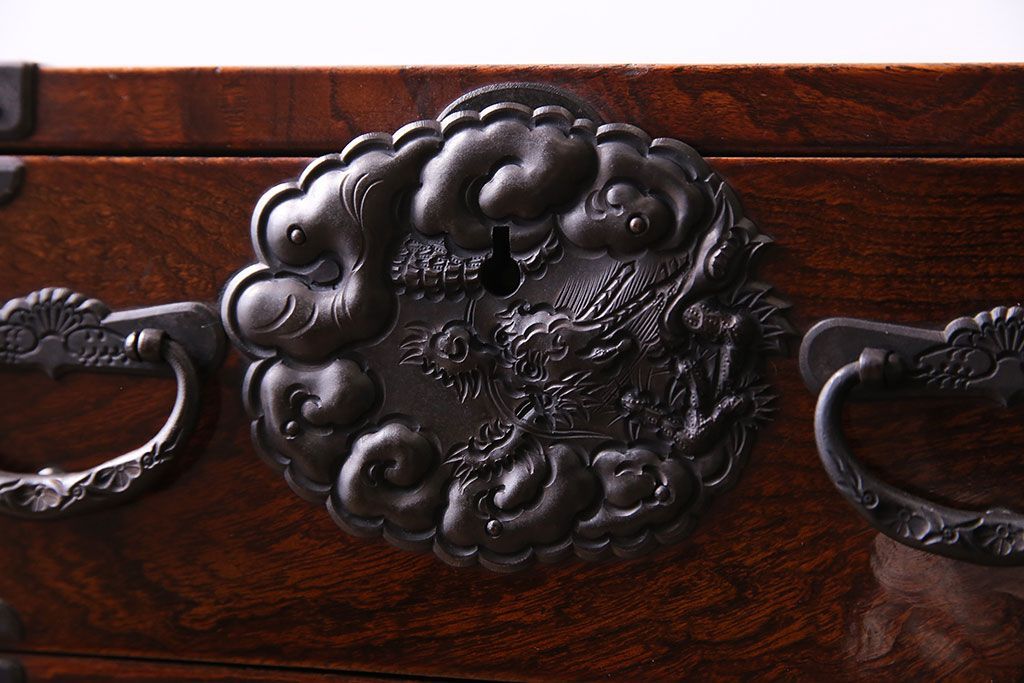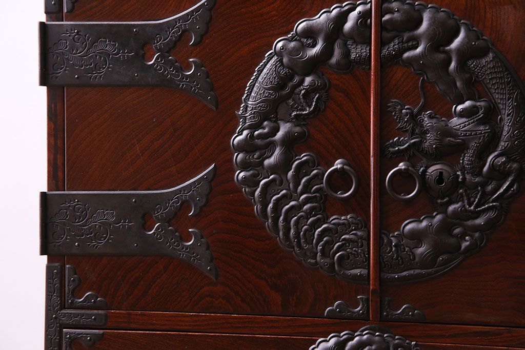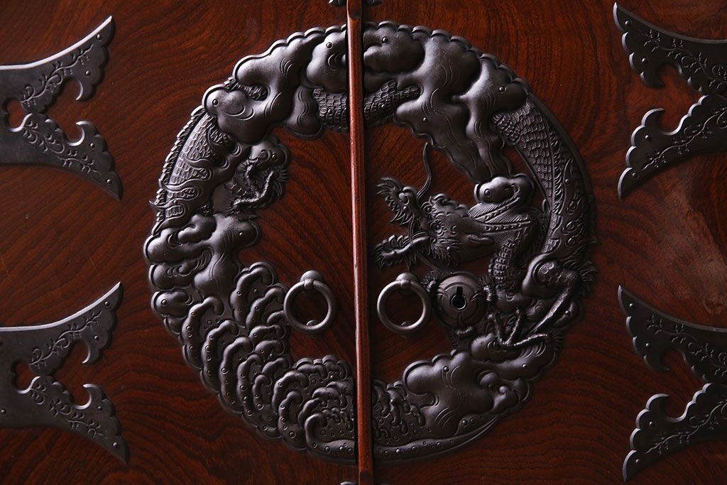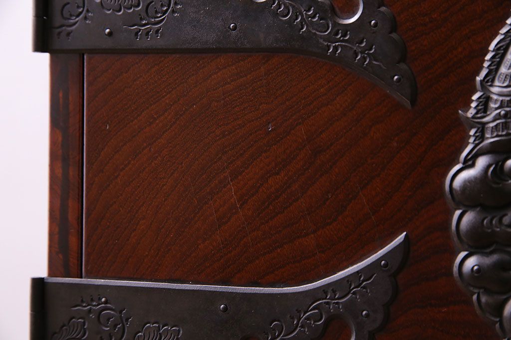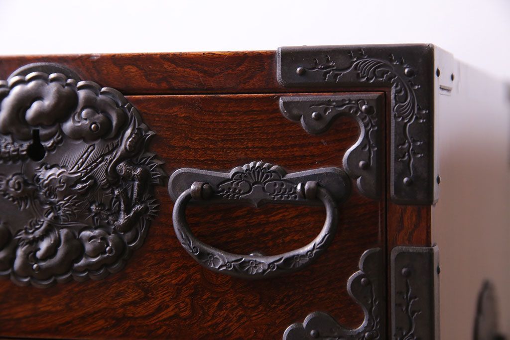 手打ちの金具には龍や植物があしらわれており、力強い印象です。