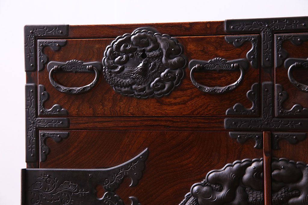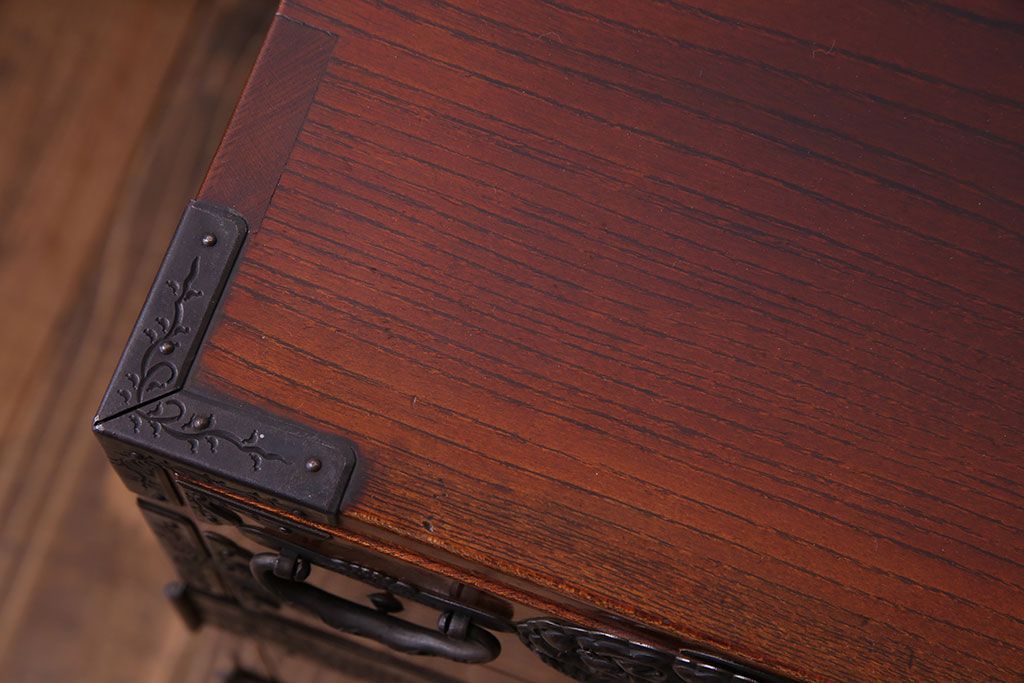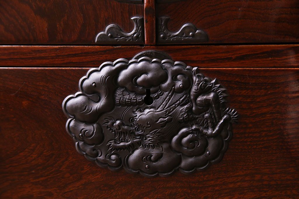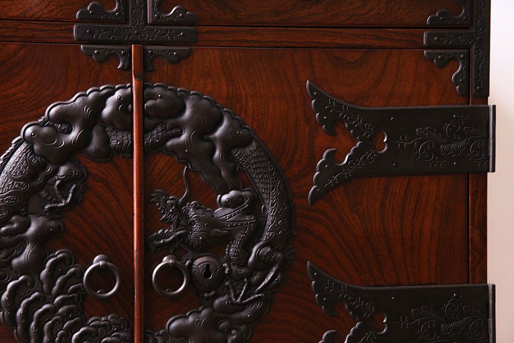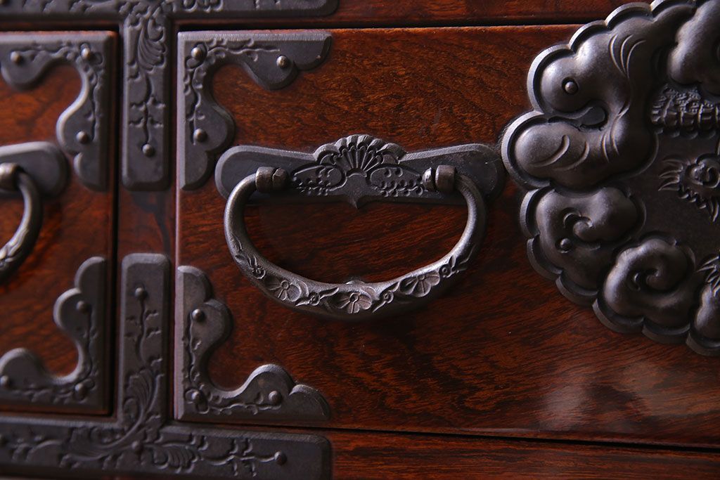 手打ちの金具には龍や植物があしらわれており、力強い印象です。