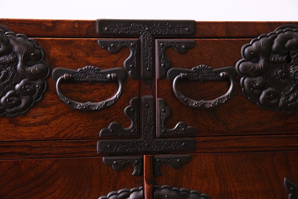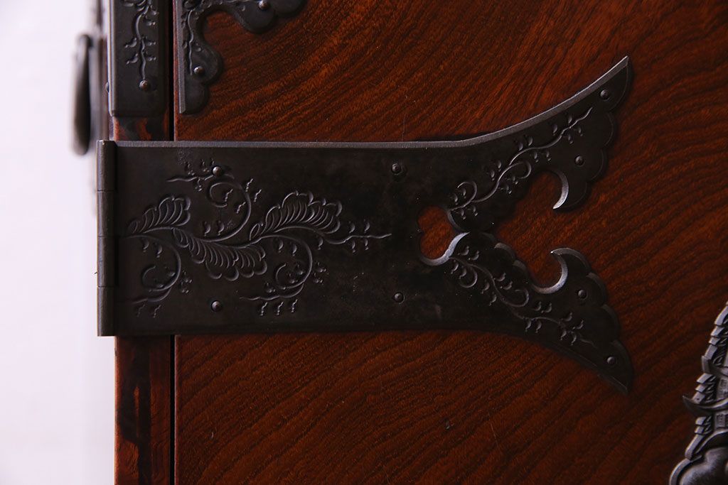和箪笥 > ビンテージ 門間箪笥店 三方ケヤキ材 二尺猫脚両開き中型箪笥(仙台箪笥、キャビネット)(定価約70万円)