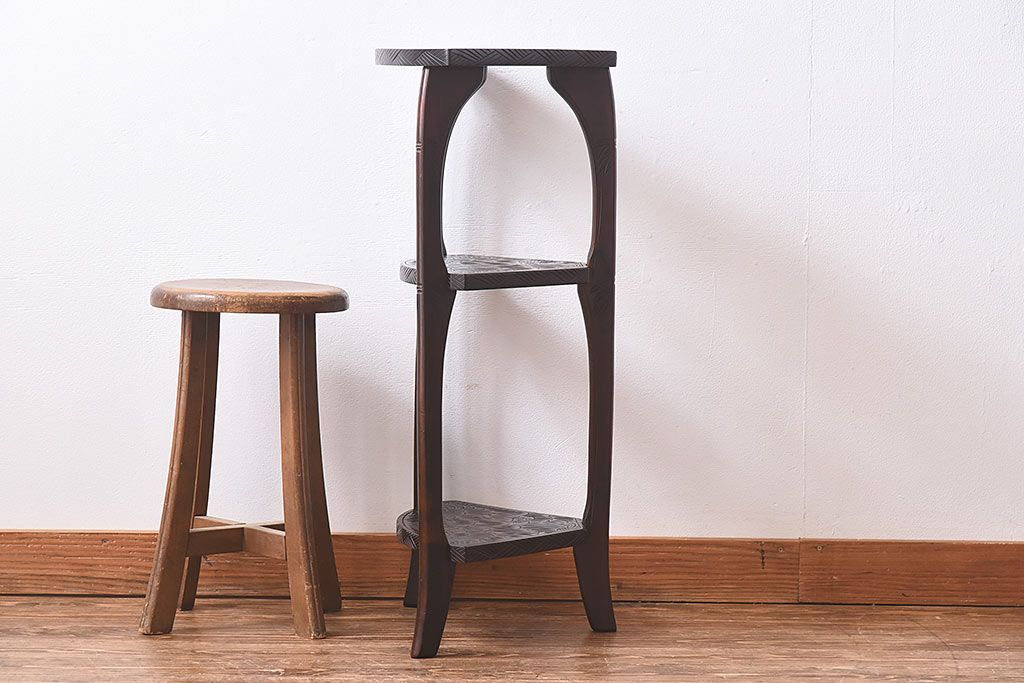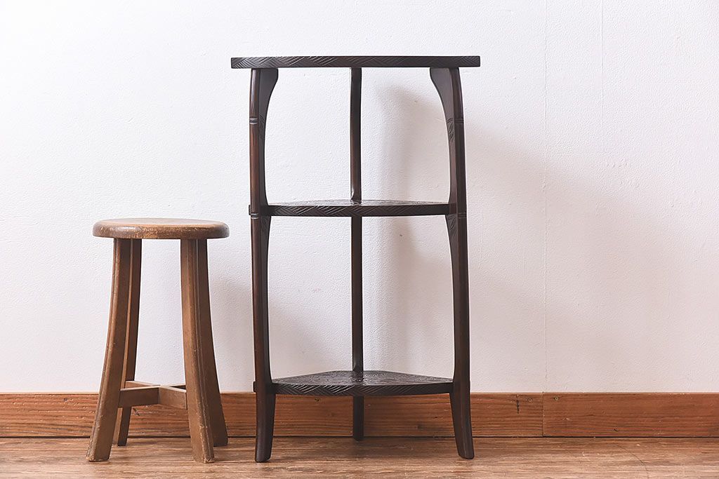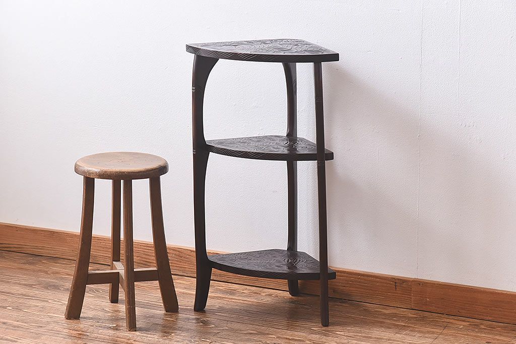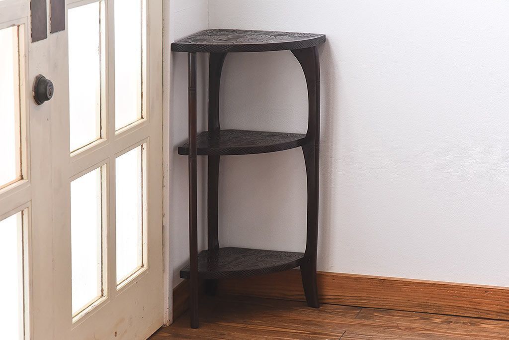 ラフジュ工房> 民芸家具 > アンティーク雑貨 中古 伝統工芸 日光彫り 花の意匠が美しいコーナーラック(飾り台、花台)(1)