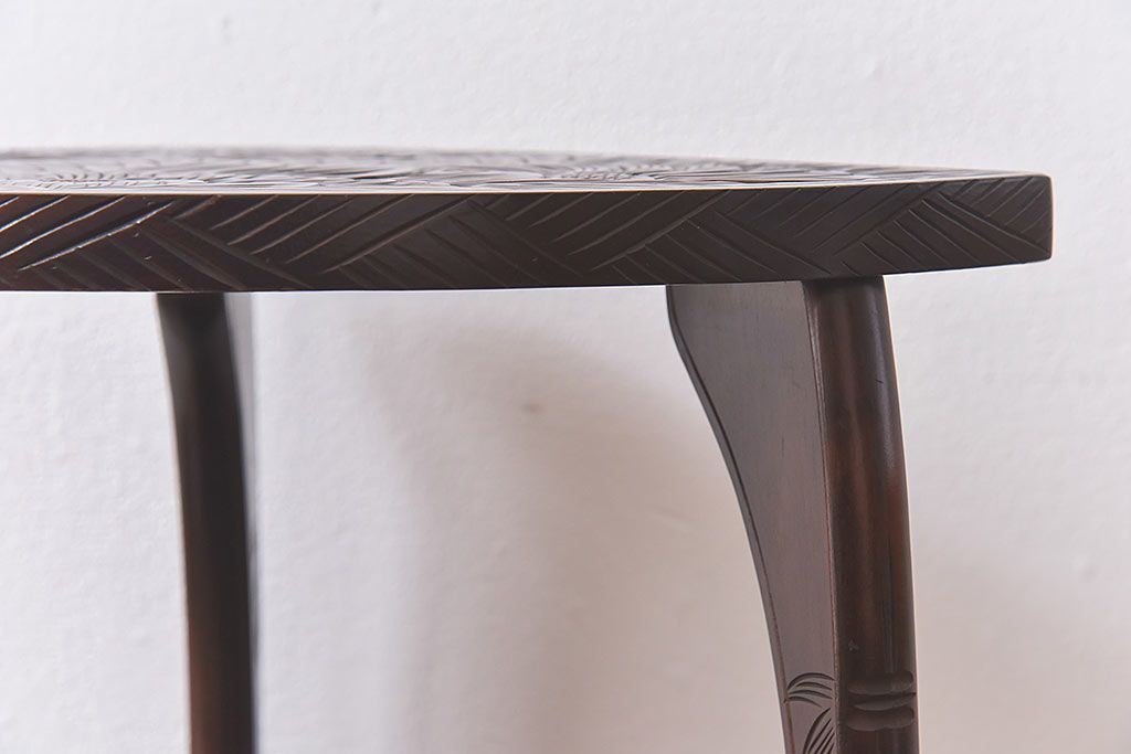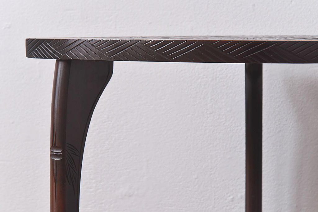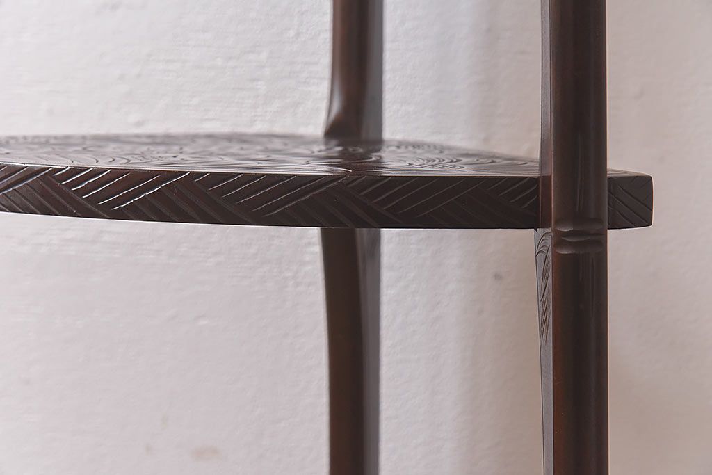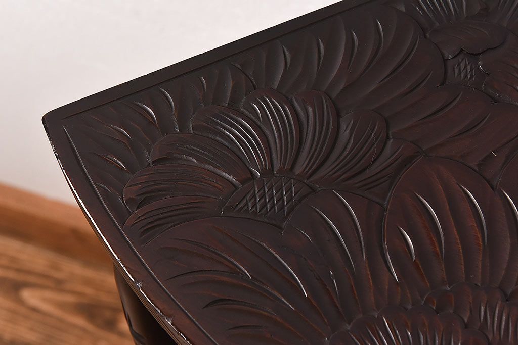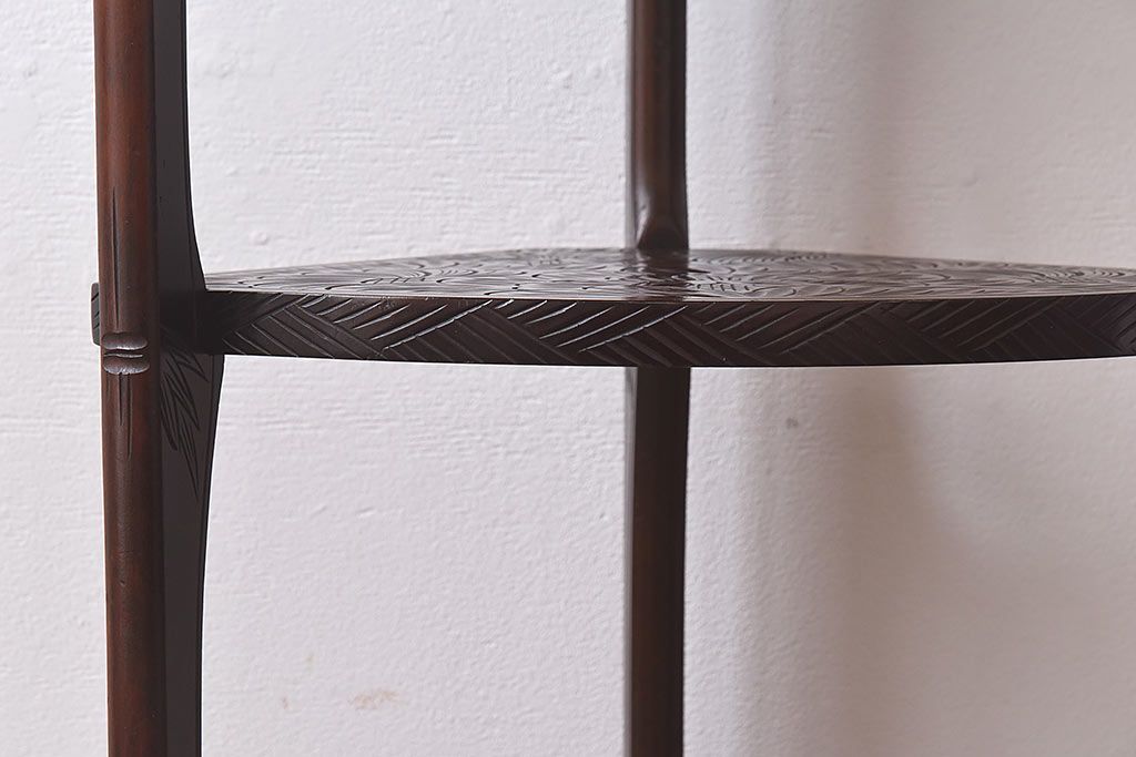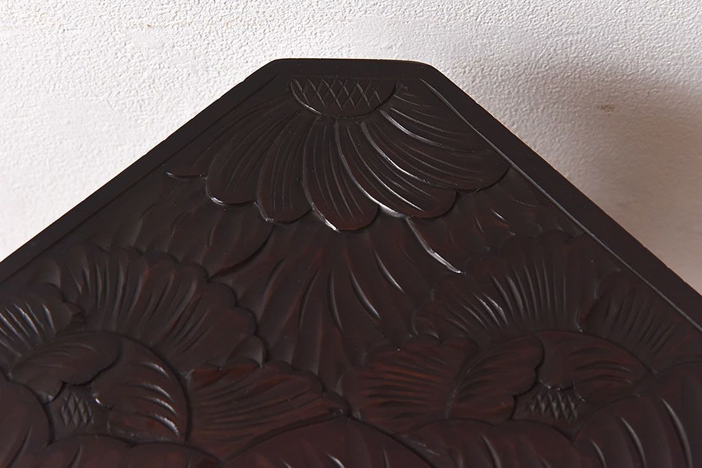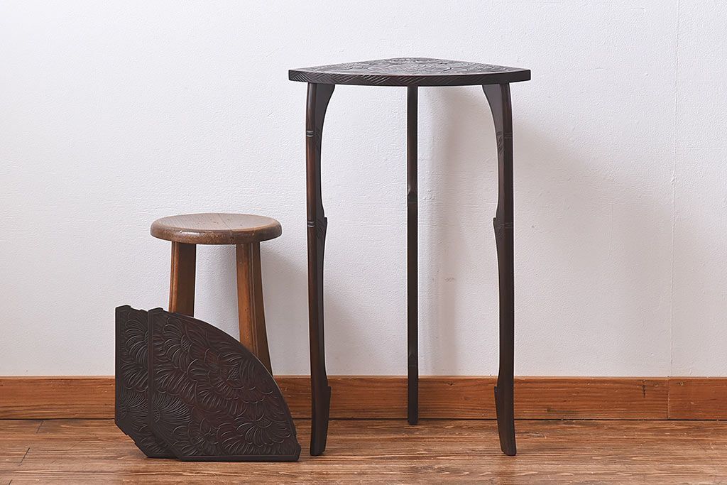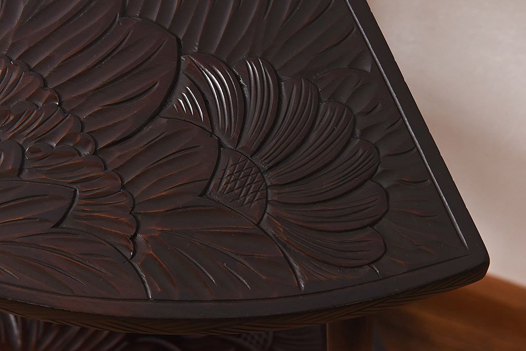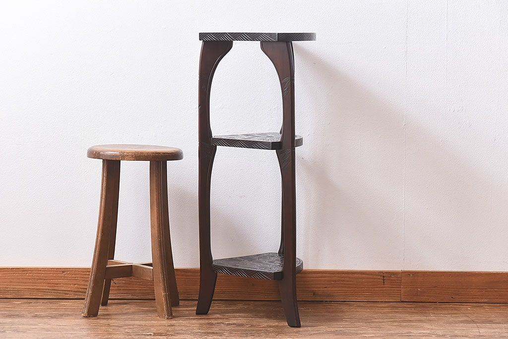 ラフジュ工房> テーブル> サイドテーブル > アンティーク雑貨 中古 伝統工芸 日光彫り 花の意匠が美しいコーナーラック(飾り台、花台)(1)