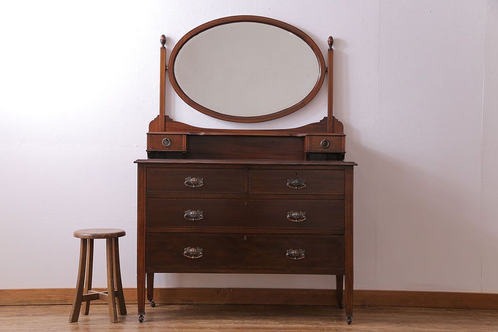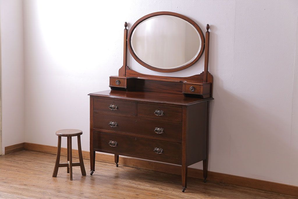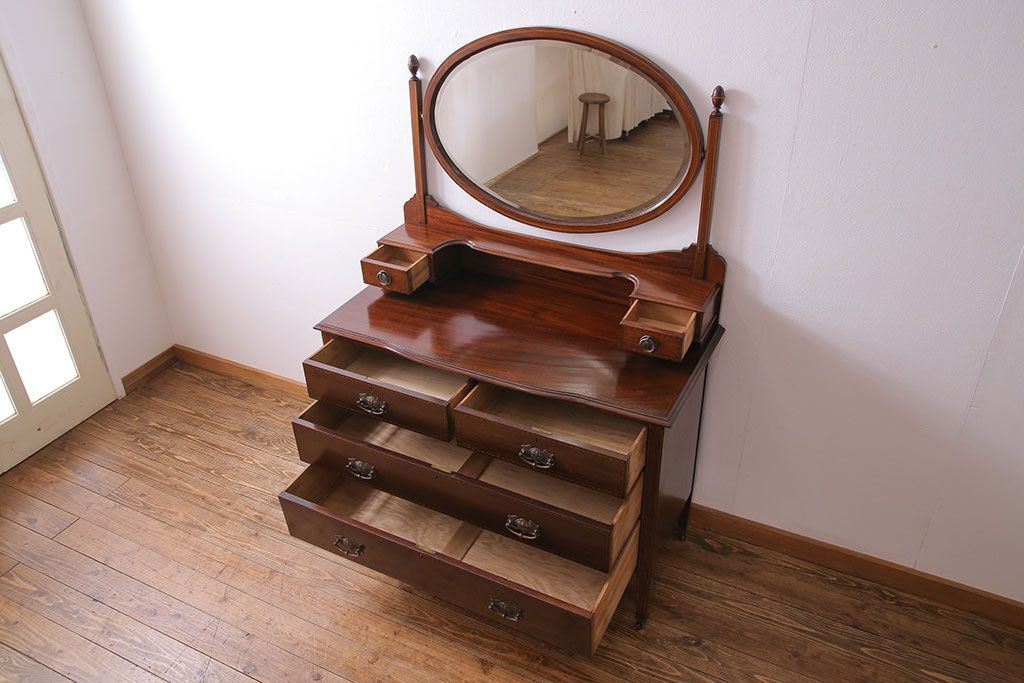 アンティーク家具 イギリスアンティーク マホガニー材 優雅な佇まいが魅力のドレッサー(鏡台、化粧台、チェスト、引き出し)