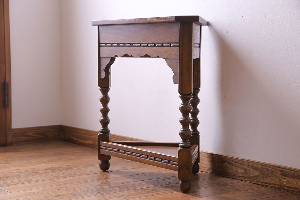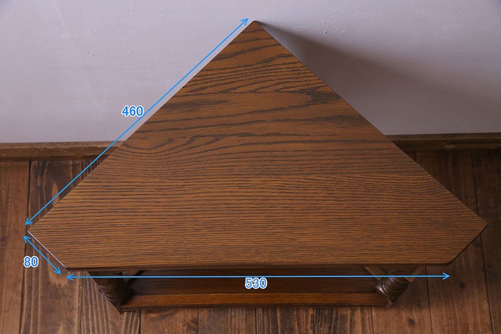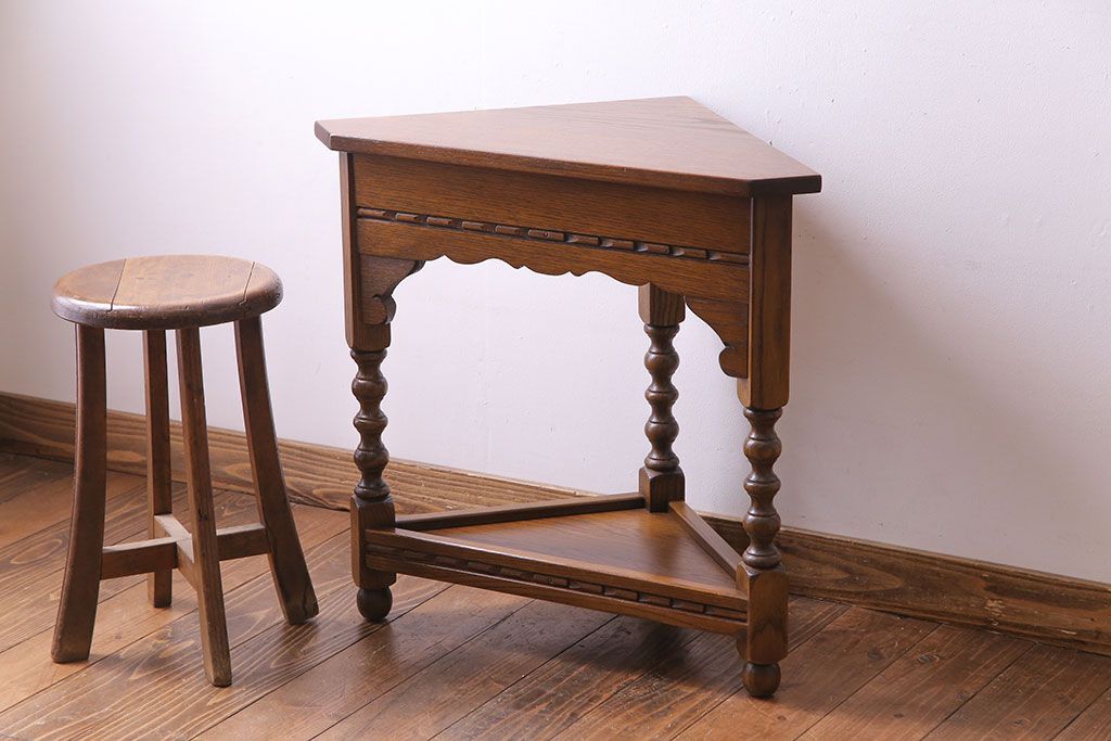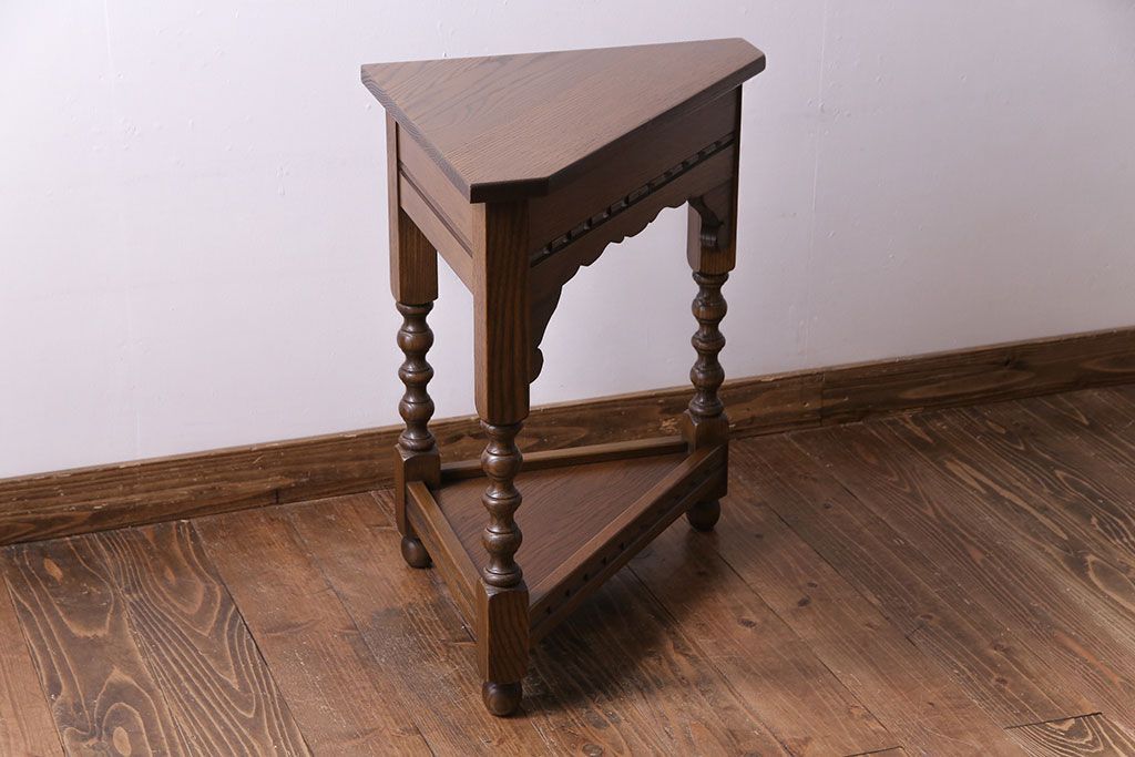ラフジュ工房> 花台・飾り台 > アンティーク雑貨 中古 old charm(オールドチャーム) オーク材 三角の木製コーナーテーブル(コーナーラック、花台)