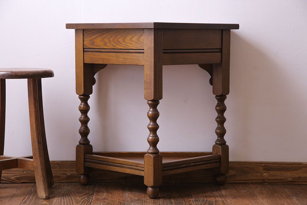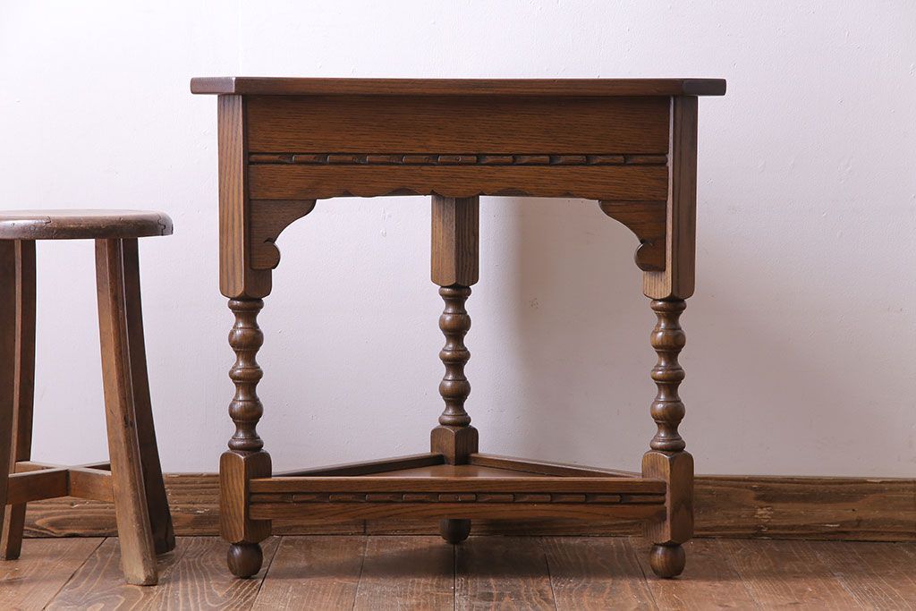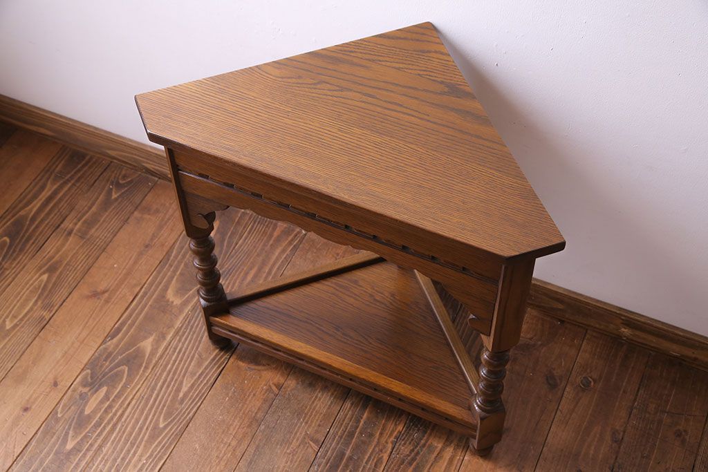 ラフジュ工房> テーブル> サイドテーブル > アンティーク雑貨 中古 old charm(オールドチャーム) オーク材 三角の木製コーナーテーブル(コーナーラック、花台)