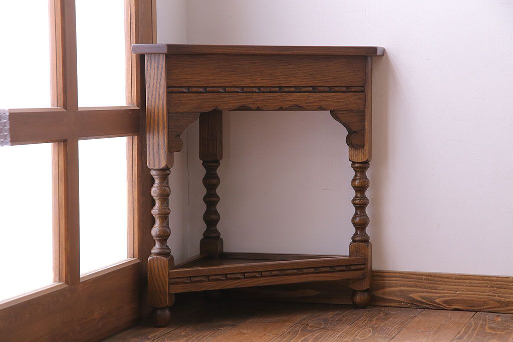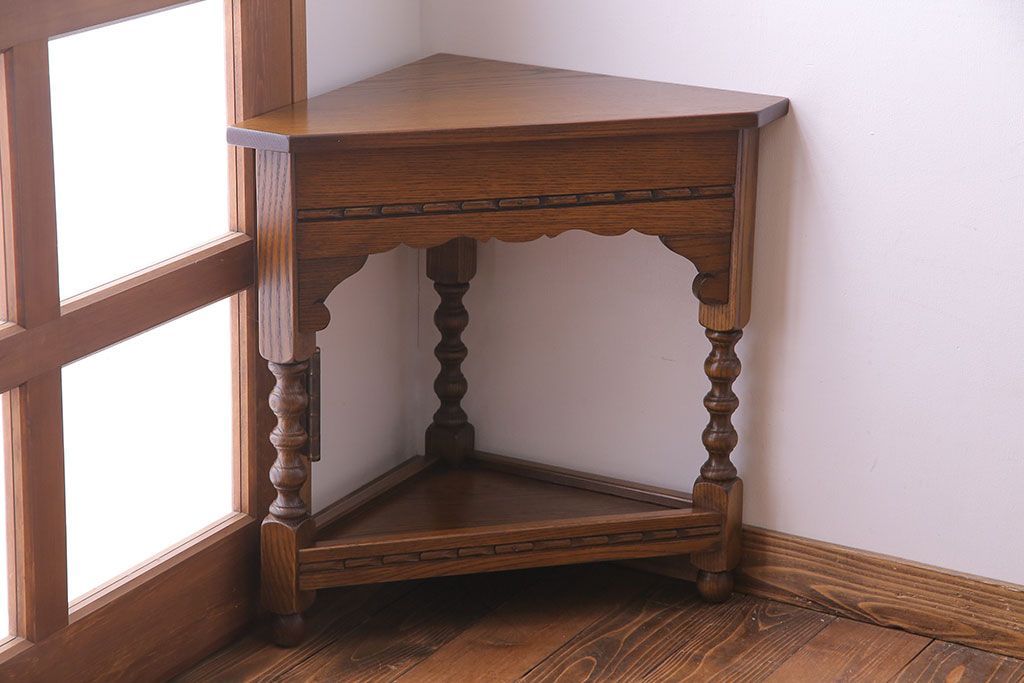 アンティーク雑貨 中古 old charm(オールドチャーム) オーク材 三角の木製コーナーテーブル(コーナーラック、花台)