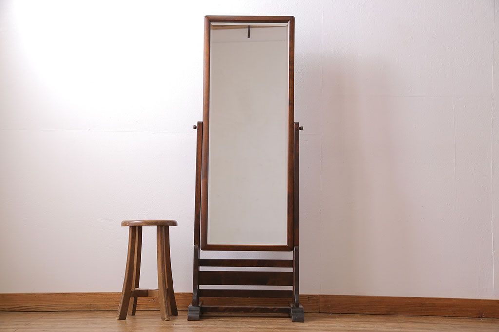 ラフジュ工房> 鏡> 姿見 > アンティーク雑貨 中古 北海道民芸家具 HM350 シックな大型ミラー(鏡・姿見)(1)
