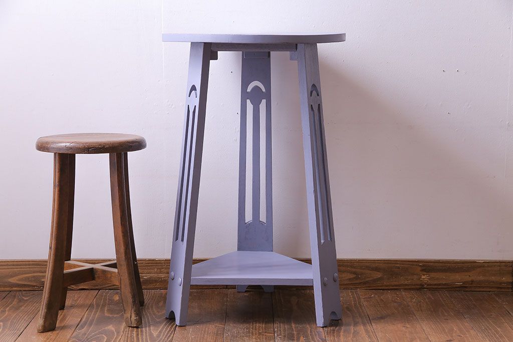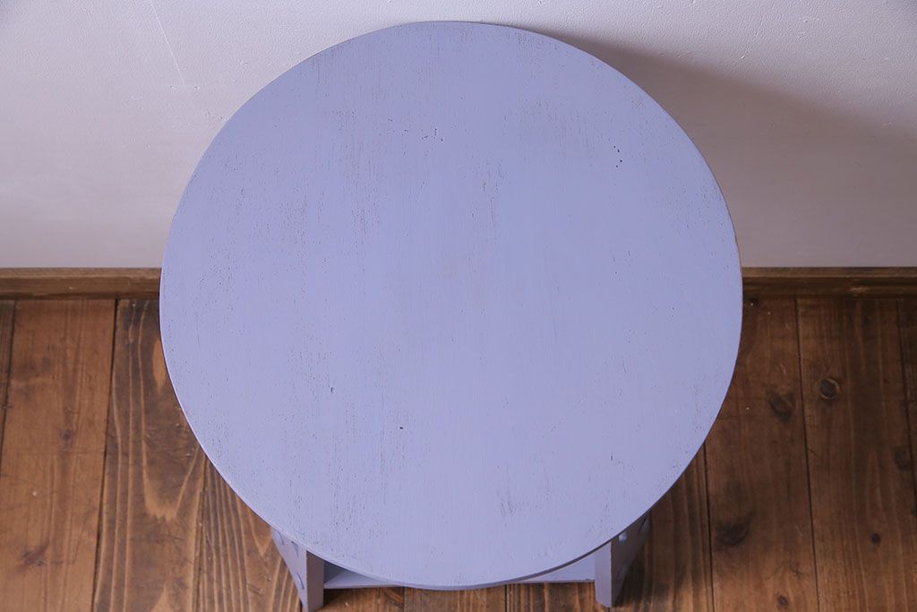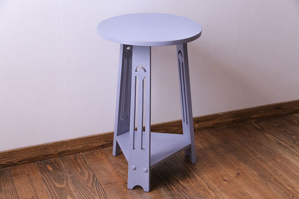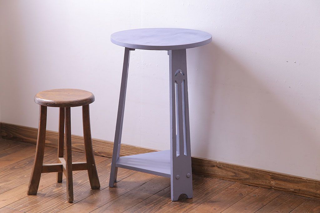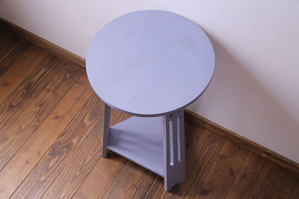 ペイント家具 淡い色合いが可愛いサイドテーブル(カフェテーブル、ラウンドテーブル、飾り台)