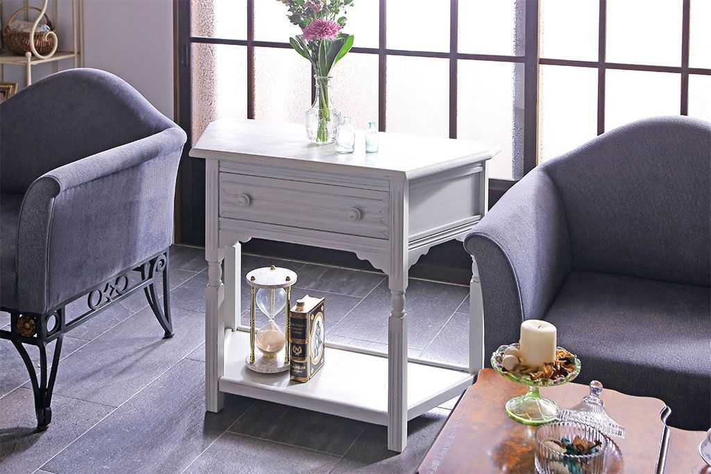 ラフジュ工房> テーブル> サイドテーブル > アンティーク雑貨 イギリスビンテージ 可愛らしい魅力あふれるペイントコンソールテーブル(引き出し、飾り台、サイドテーブル)