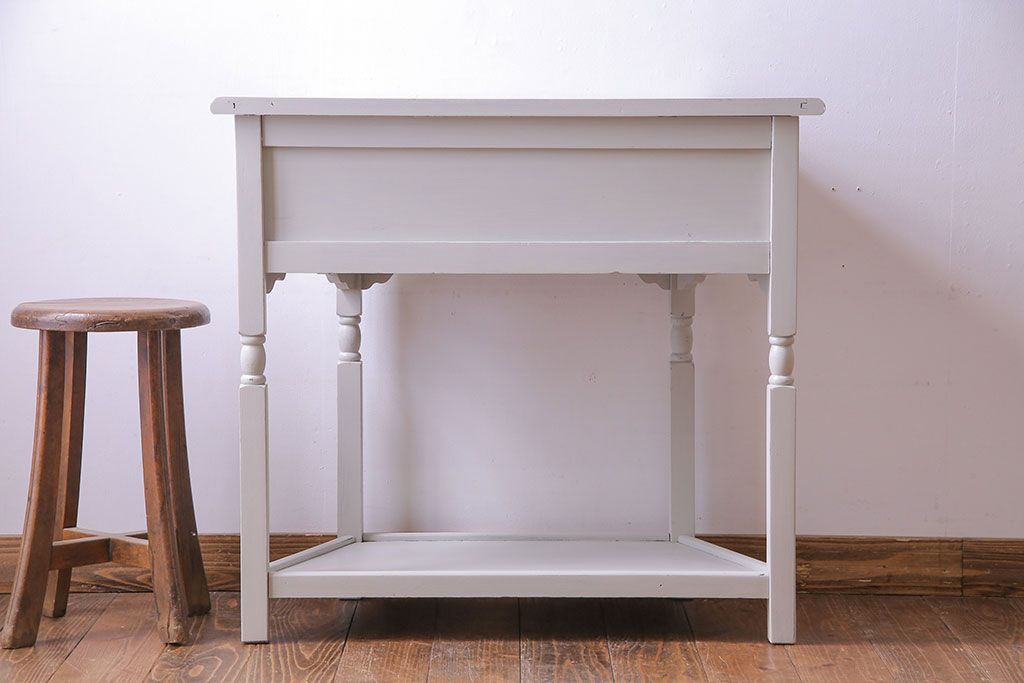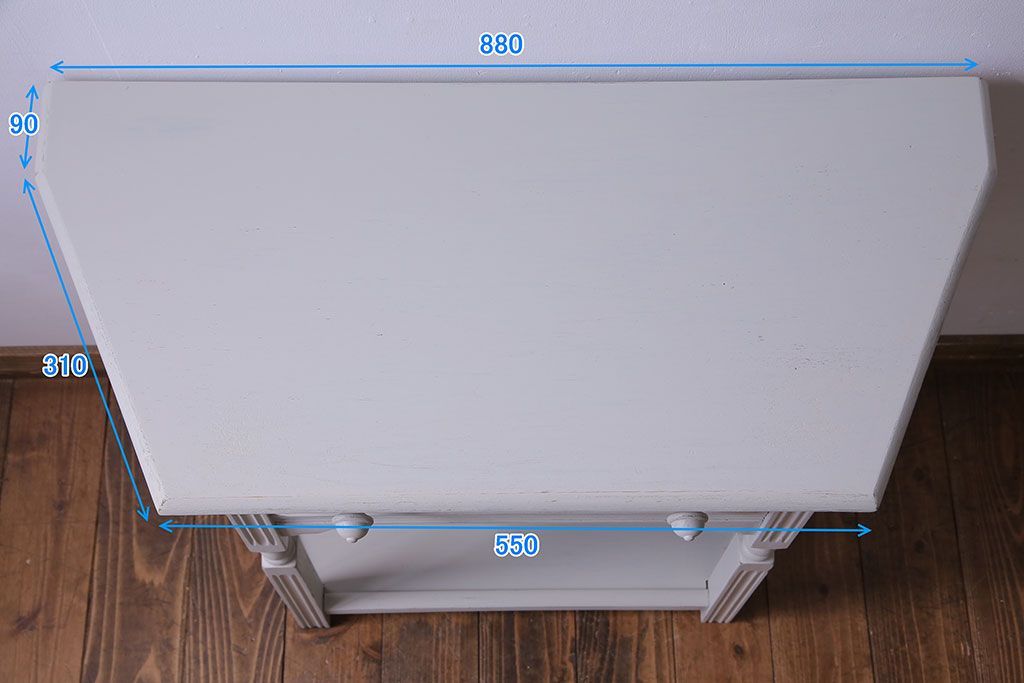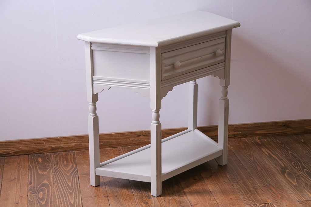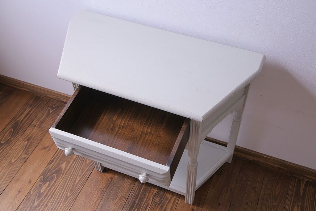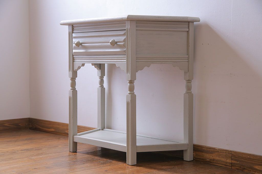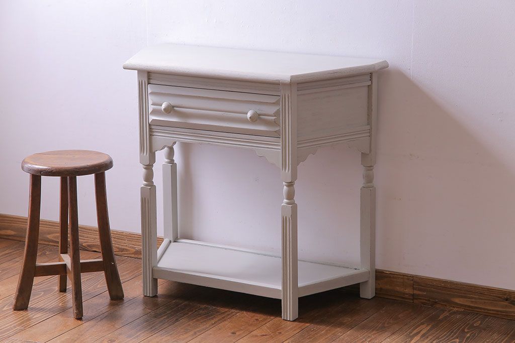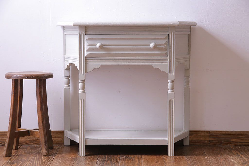 ラフジュ工房> 花台・飾り台 > アンティーク雑貨 イギリスビンテージ 可愛らしい魅力あふれるペイントコンソールテーブル(引き出し、飾り台、サイドテーブル)