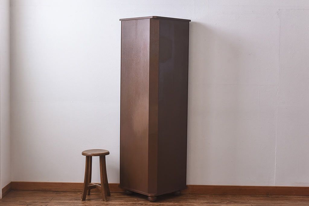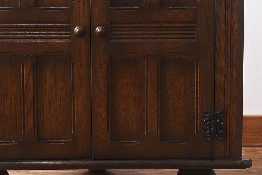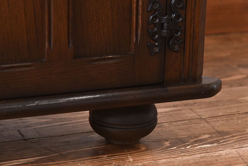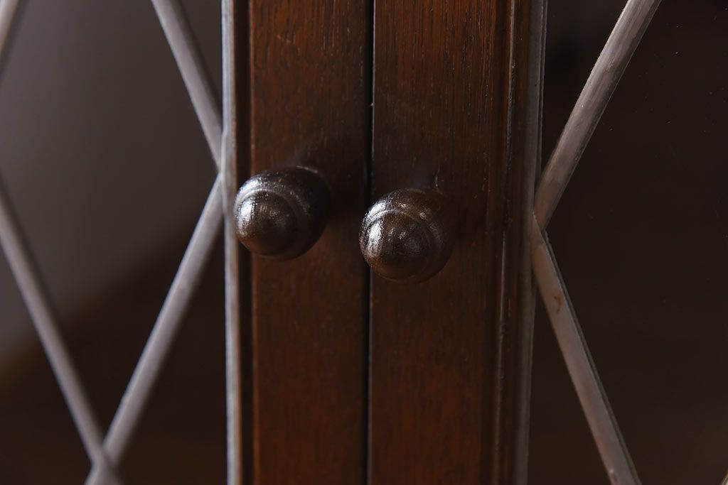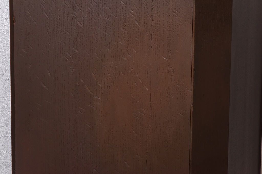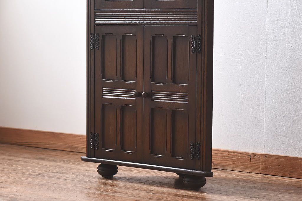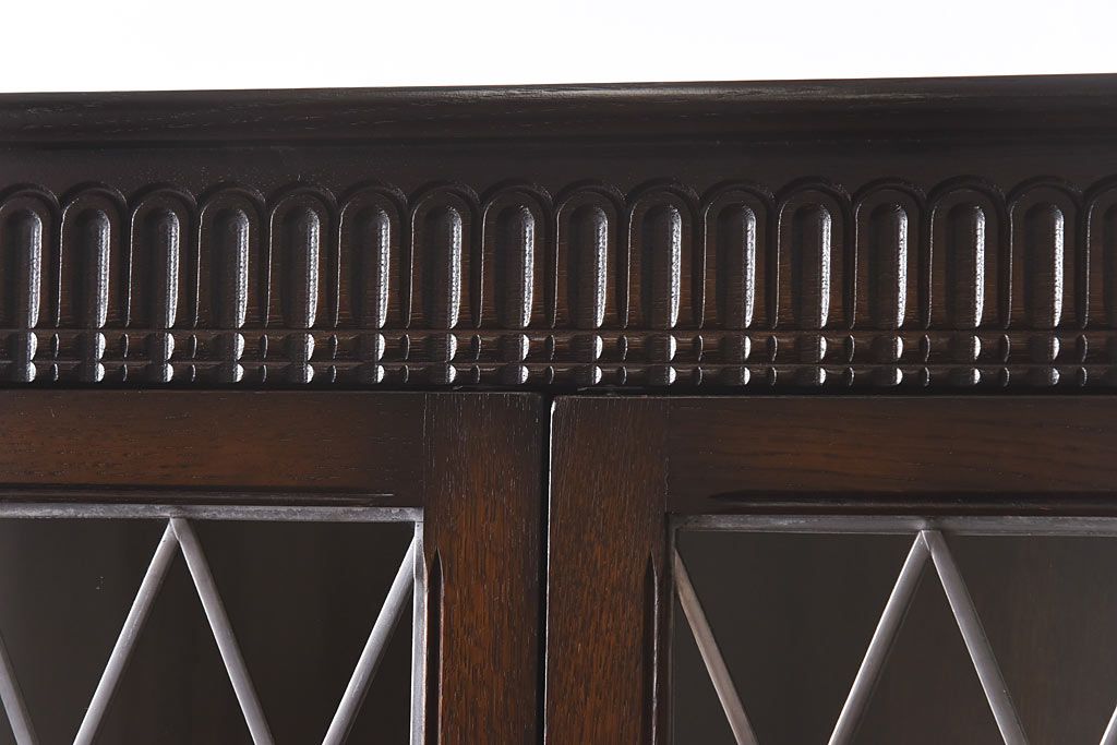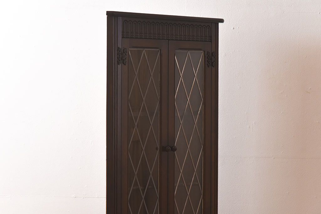 ヴィンテージ家具 イギリスビンテージ オーク材 ステンドグラスがシックなコーナーラック(飾り棚、収納棚)