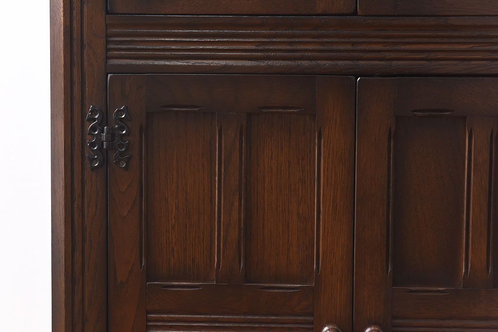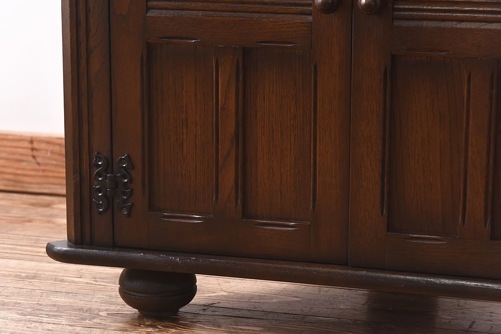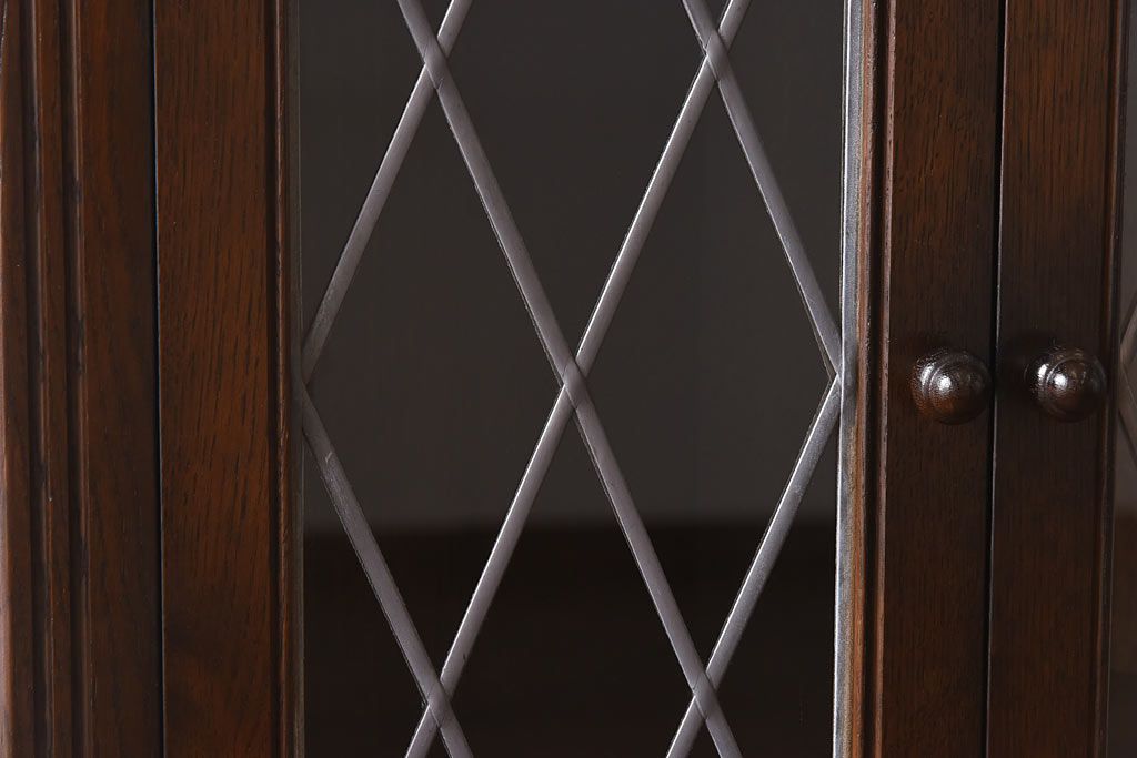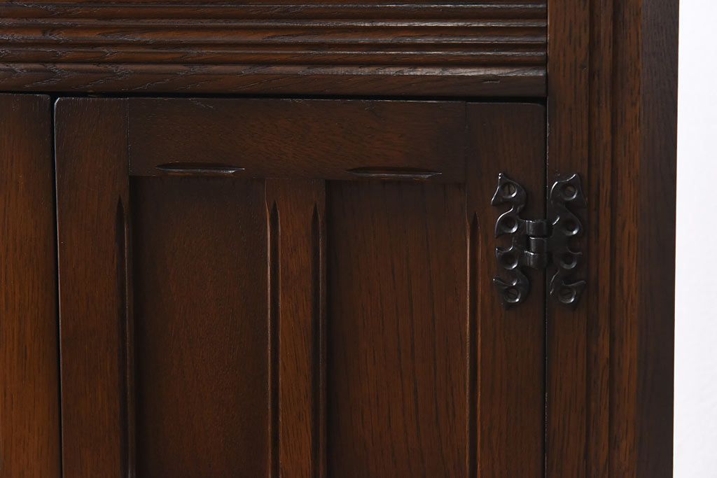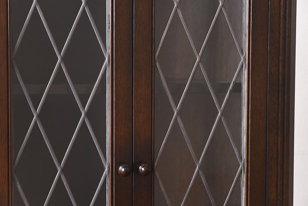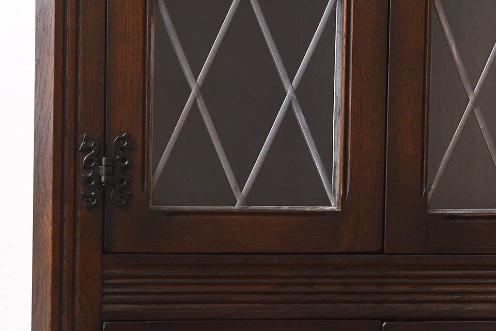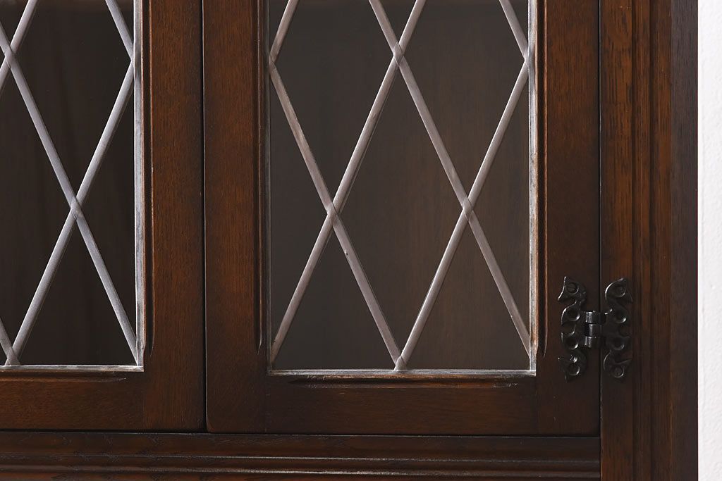 ラフジュ工房> オープンラック・シェルフ> コーナーラック > ヴィンテージ家具 イギリスビンテージ オーク材 ステンドグラスがシックなコーナーラック(飾り棚、収納棚)