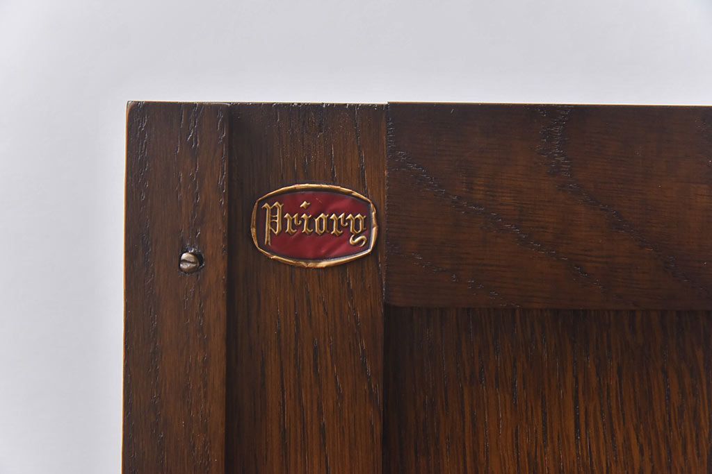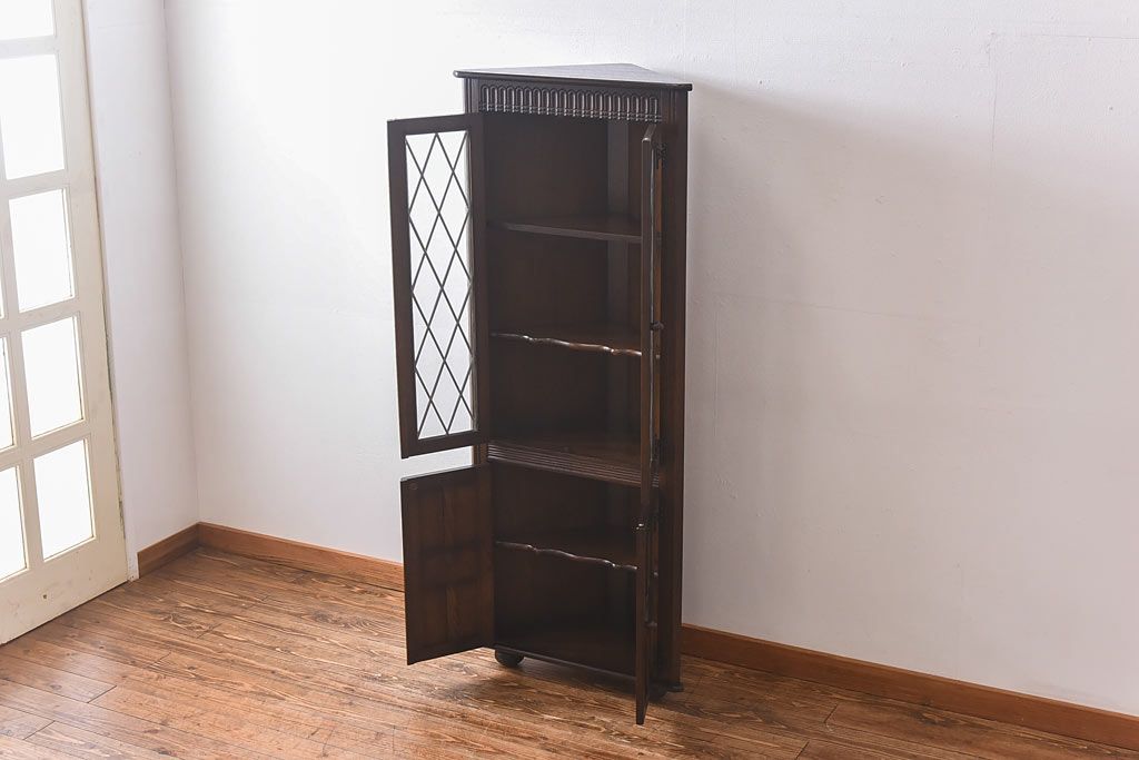 ラフジュ工房> オープンラック・シェルフ > ヴィンテージ家具 イギリスビンテージ オーク材 ステンドグラスがシックなコーナーラック(飾り棚、収納棚)