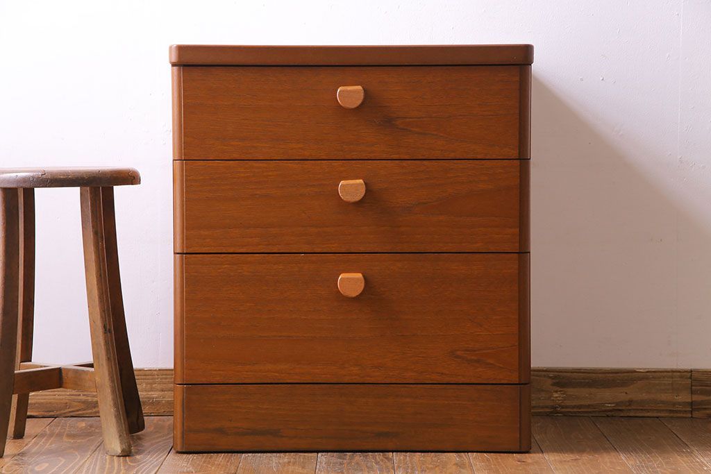 イギリスビンテージ STAG チーク材 シンプルなデザインのサイドチェスト(引き出し)です。