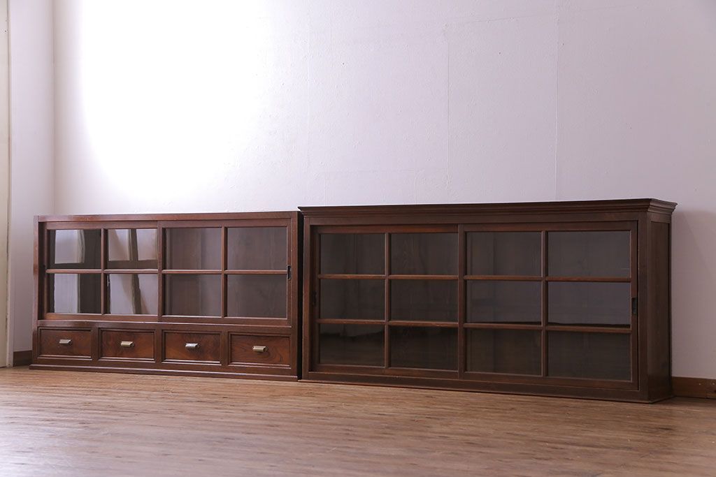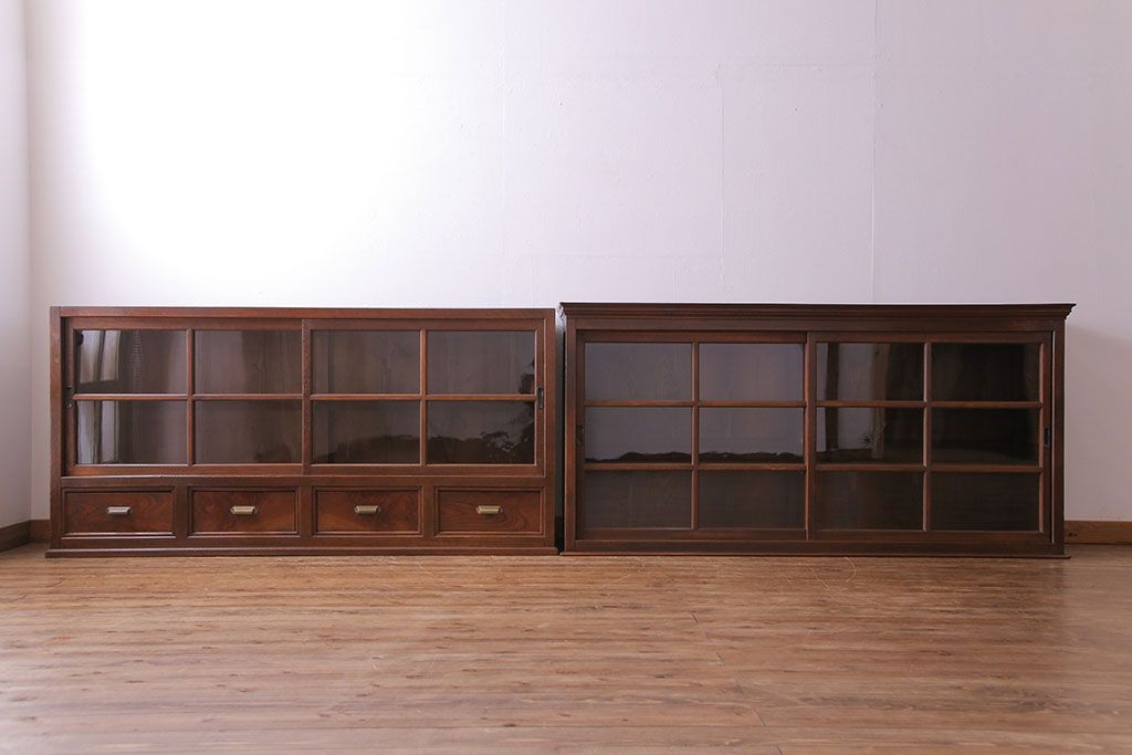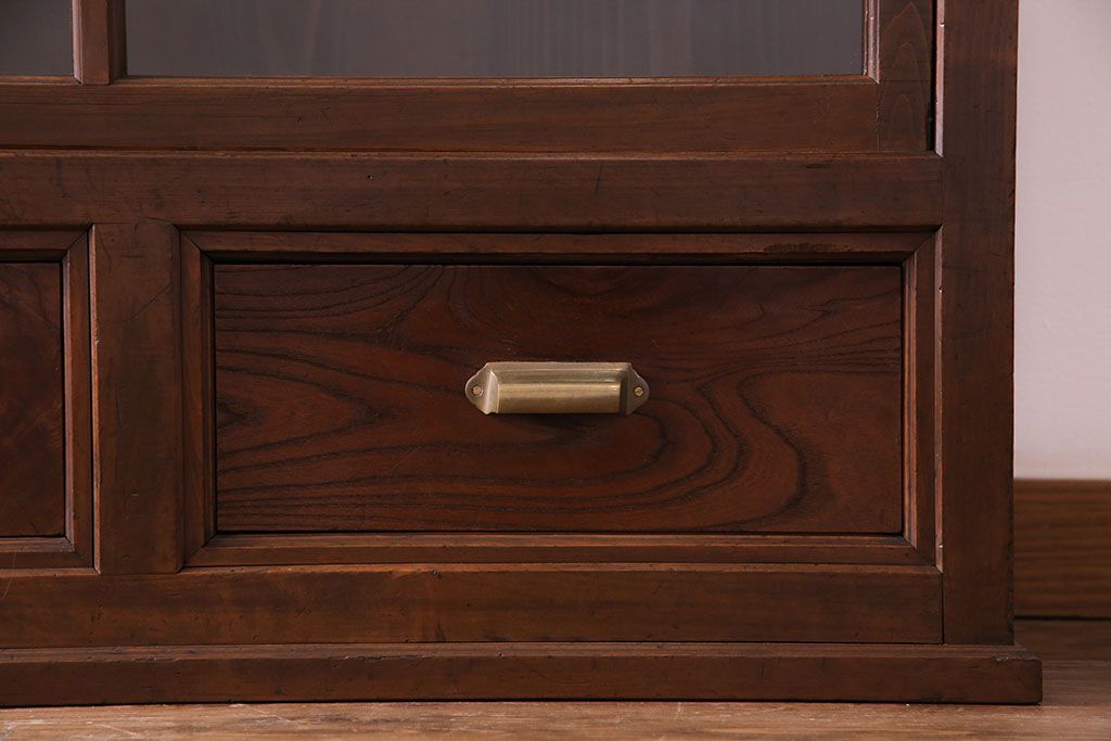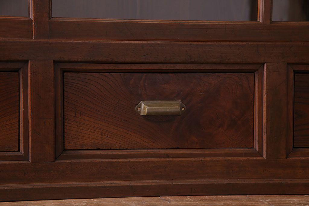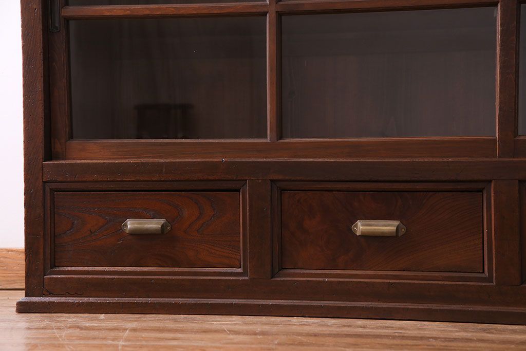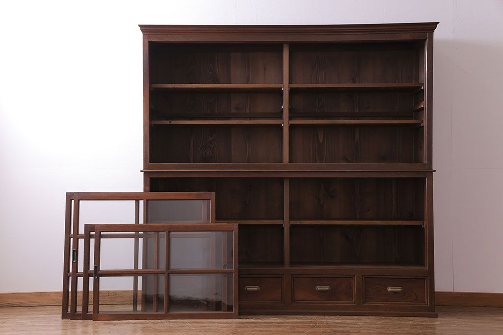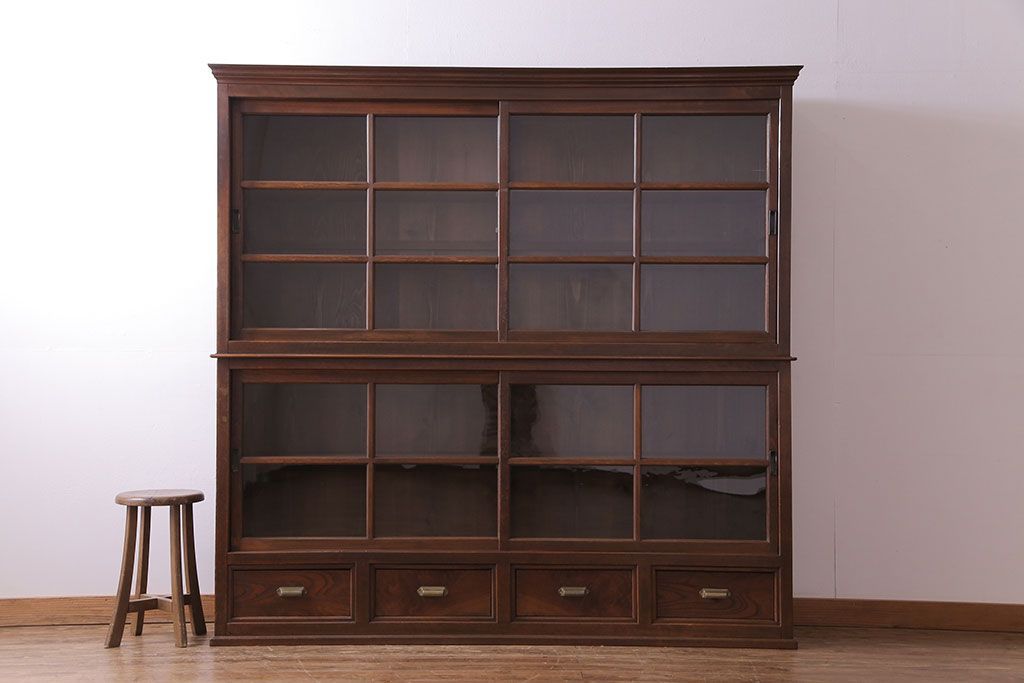 和製アンティーク 堂々とした佇まいの二段重ねガラス戸棚(収納棚、食器棚、飾り棚、ショーケース)です。