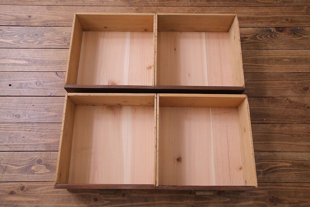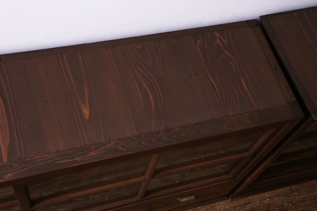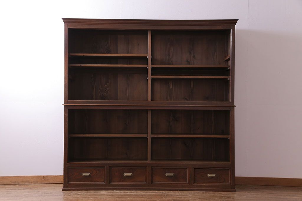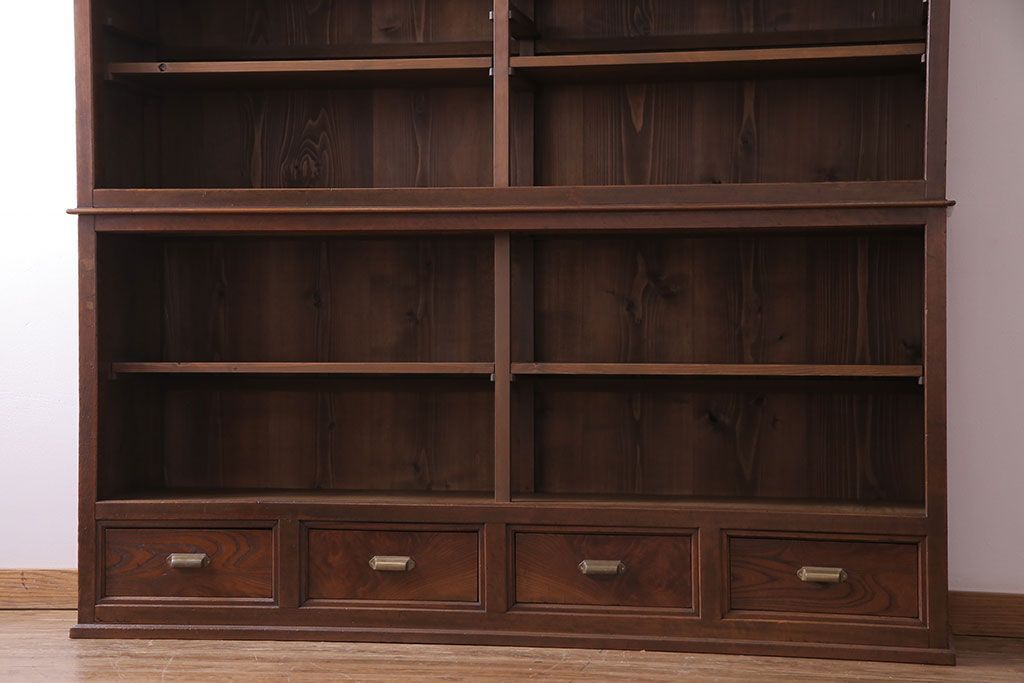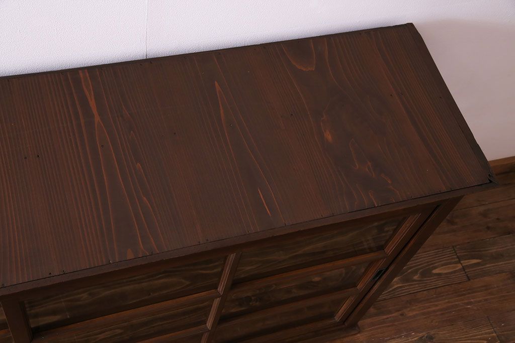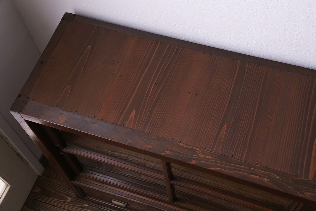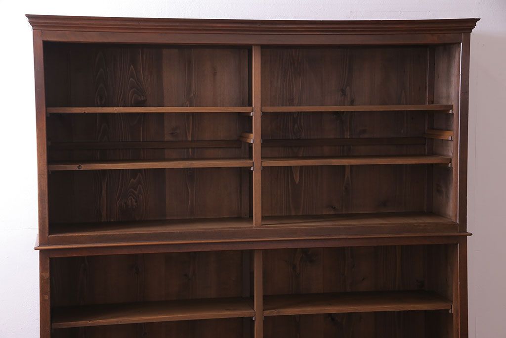 和製アンティーク 堂々とした佇まいの二段重ねガラス戸棚(収納棚、食器棚、飾り棚、ショーケース)です。