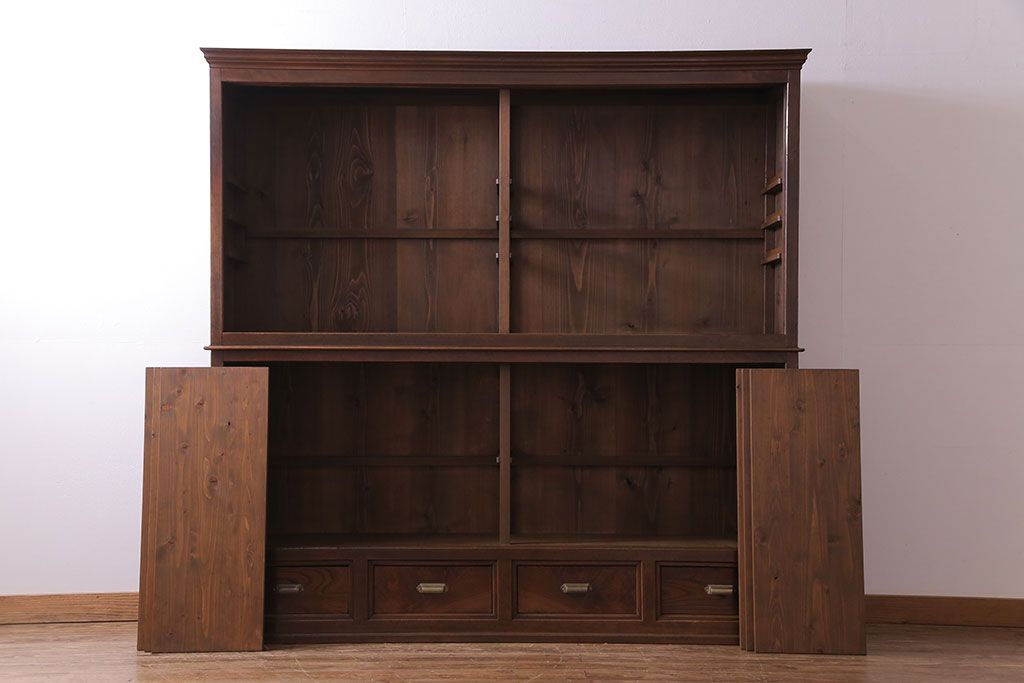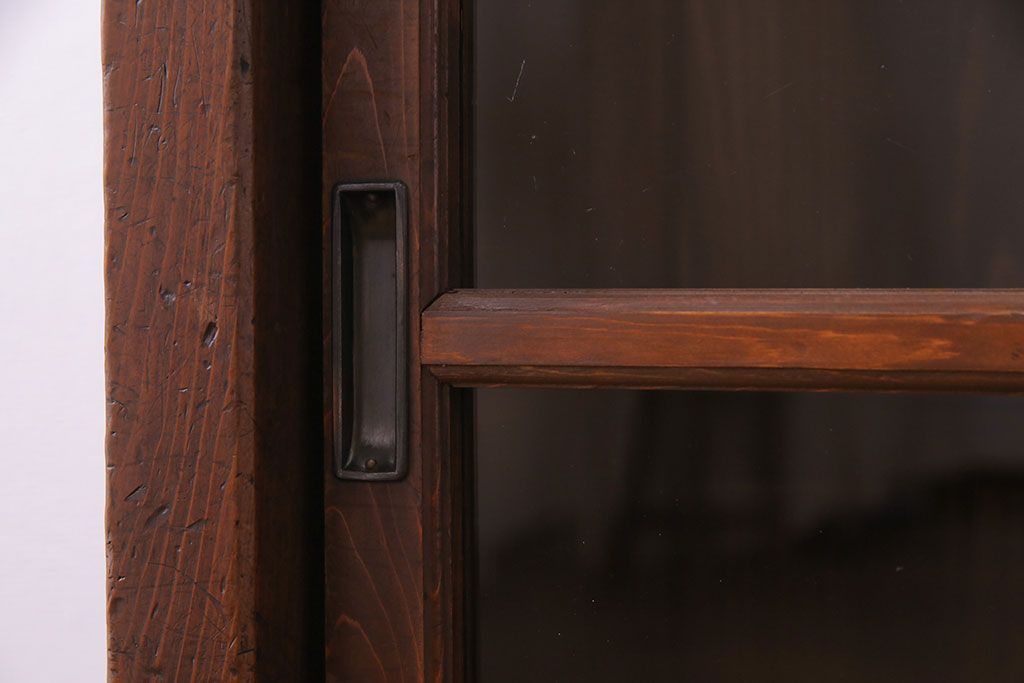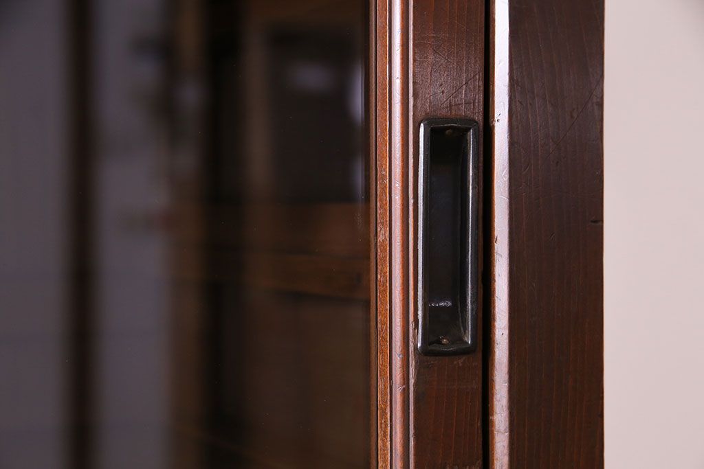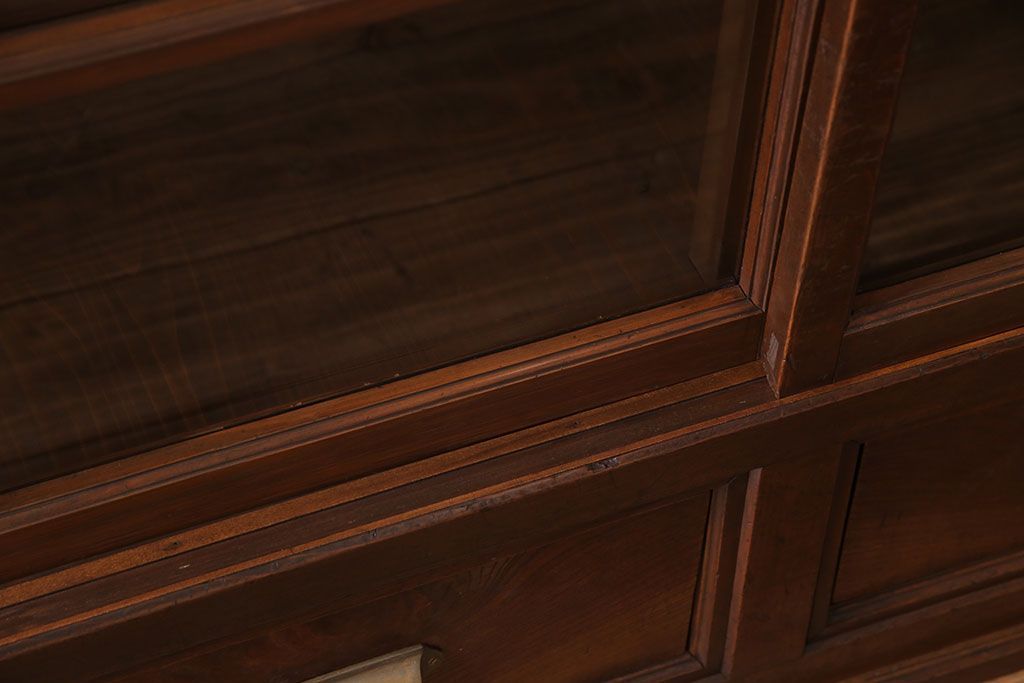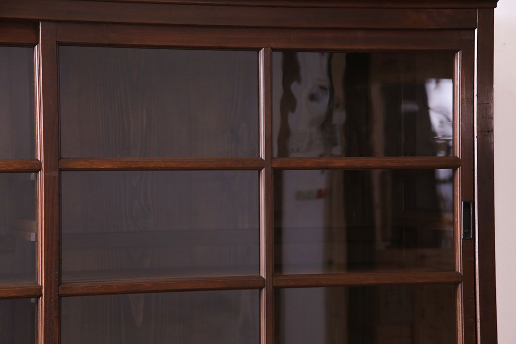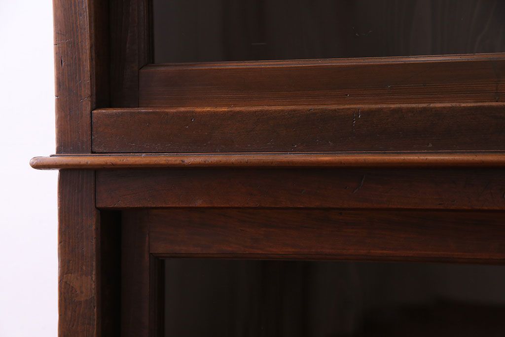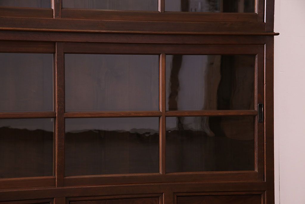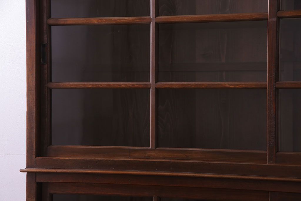 アンティーク家具 和製アンティーク 堂々とした佇まいの二段重ねガラス戸棚(収納棚、食器棚、飾り棚、ショーケース)