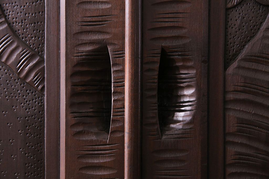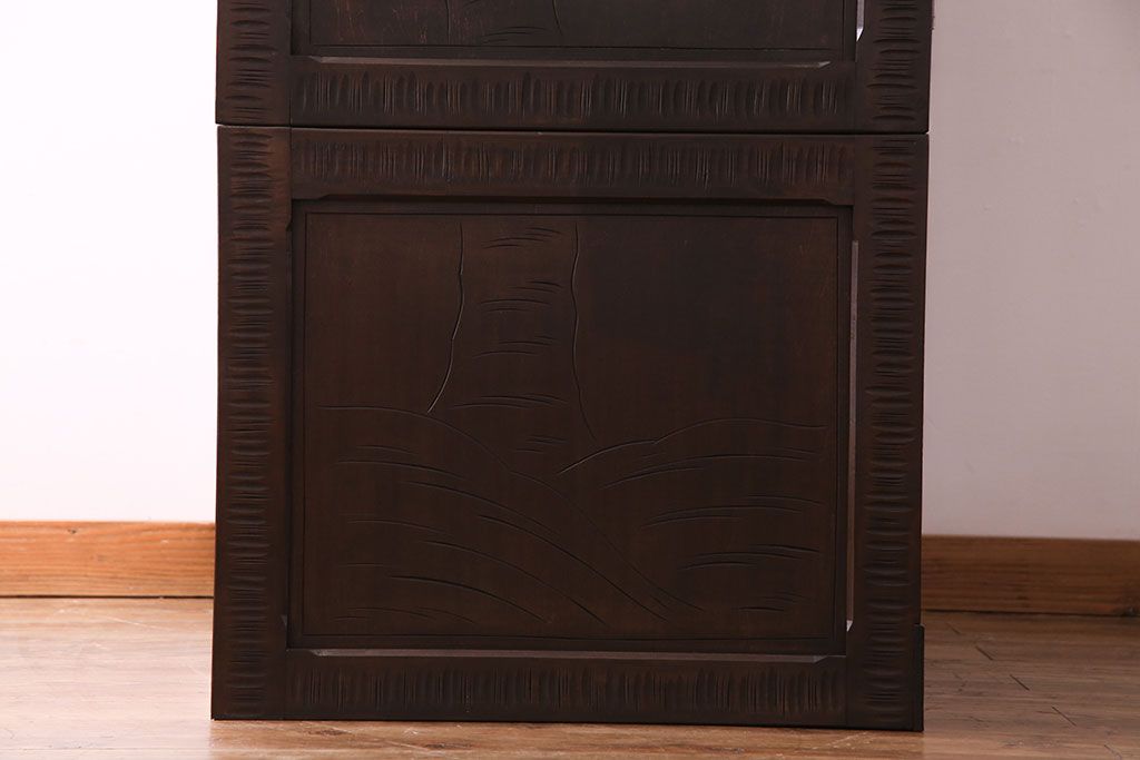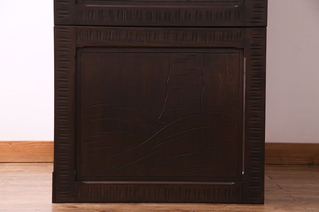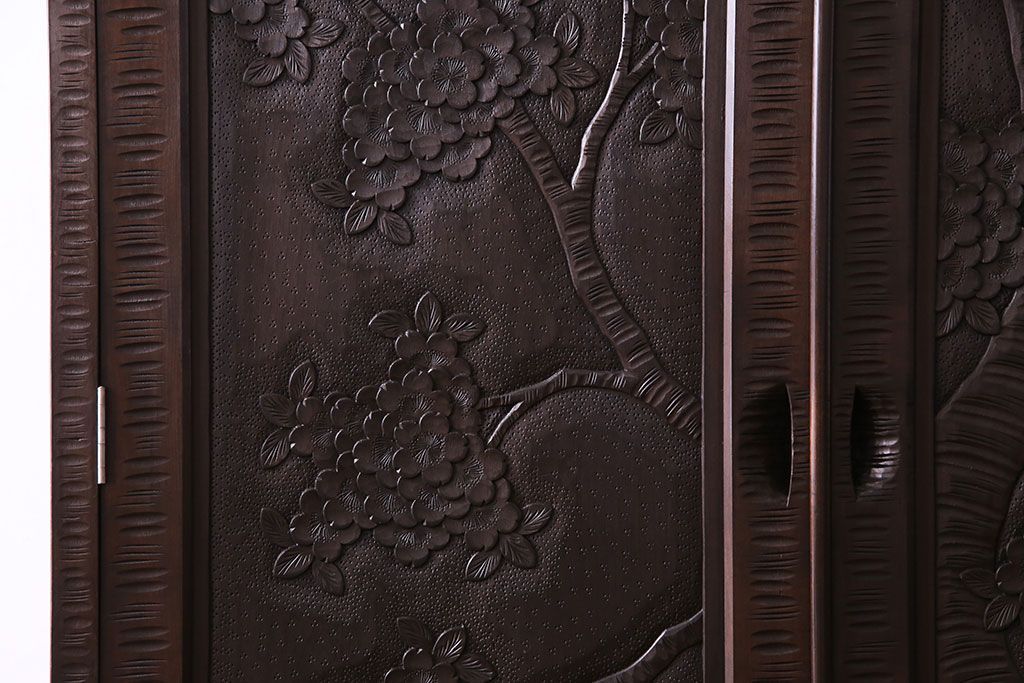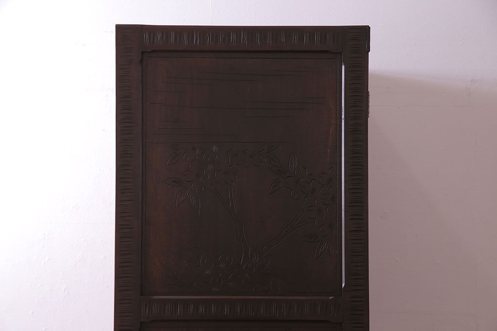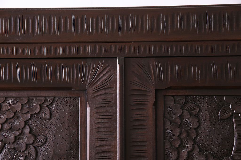 中古 伝統工芸 軽井沢彫り 迫力のある意匠が魅力のワードローブ(洋服タンス)