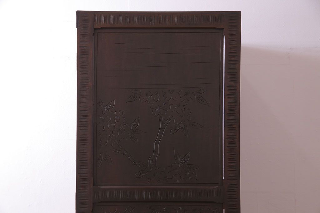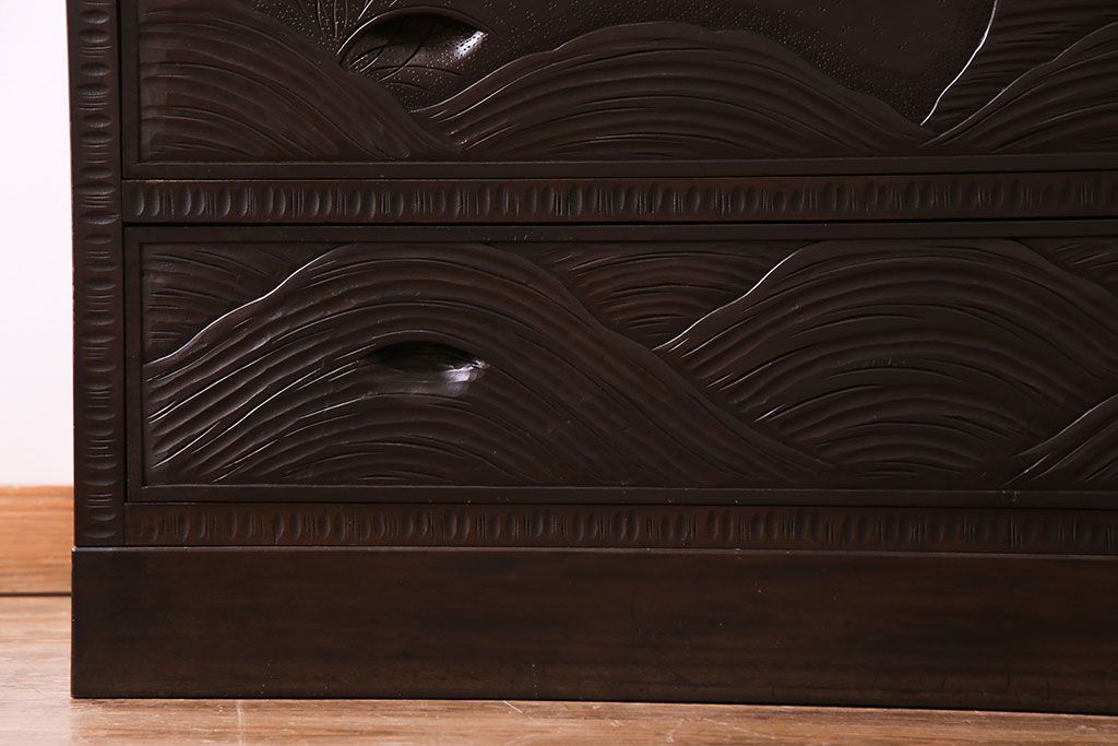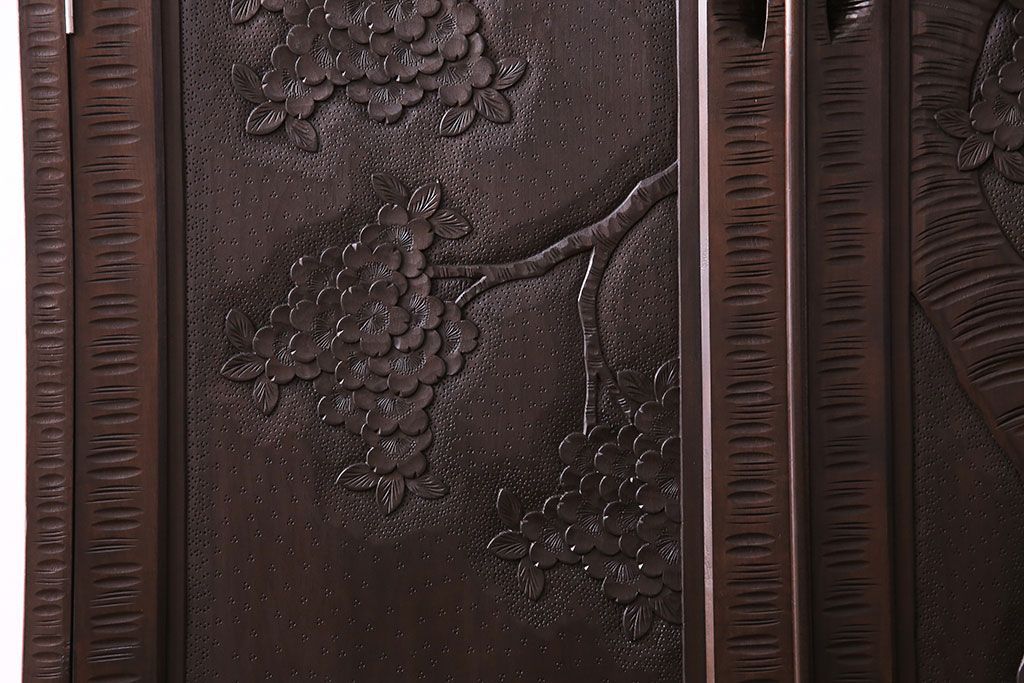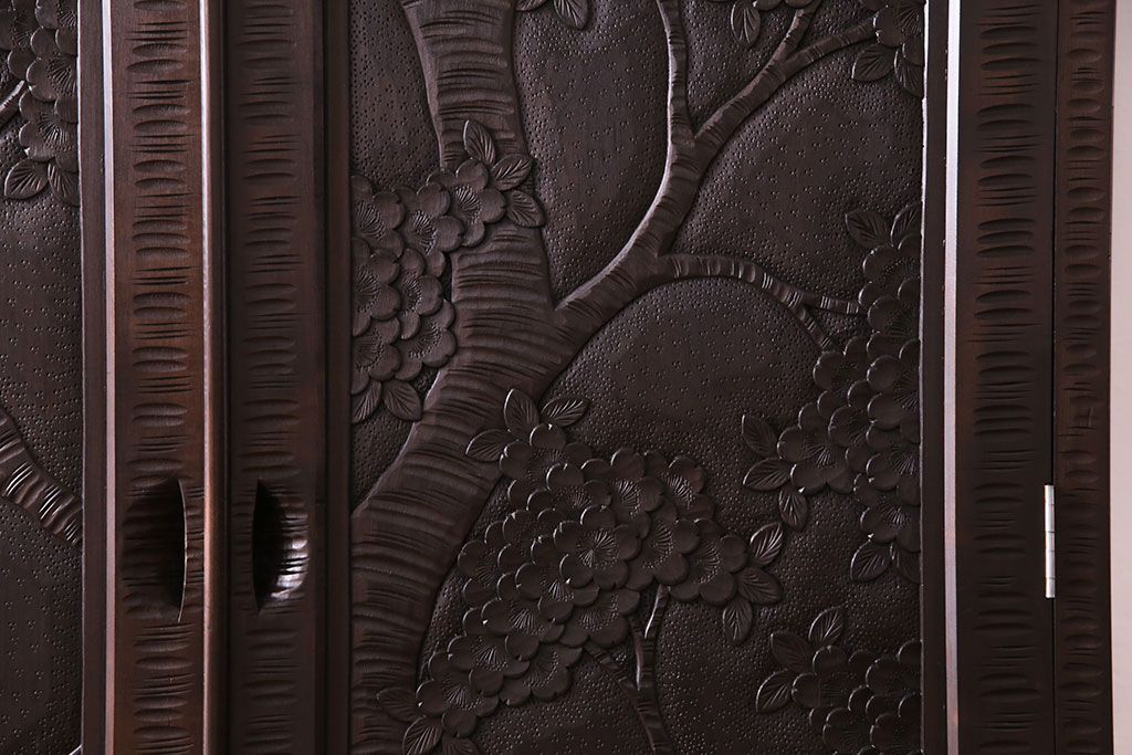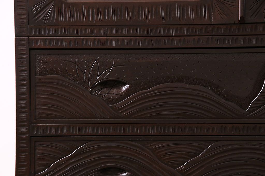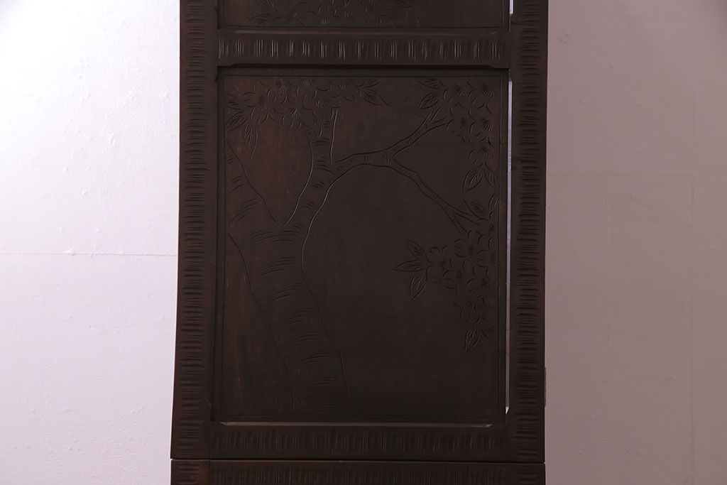 中古 伝統工芸 軽井沢彫り 迫力のある意匠が魅力のワードローブ(洋服タンス)